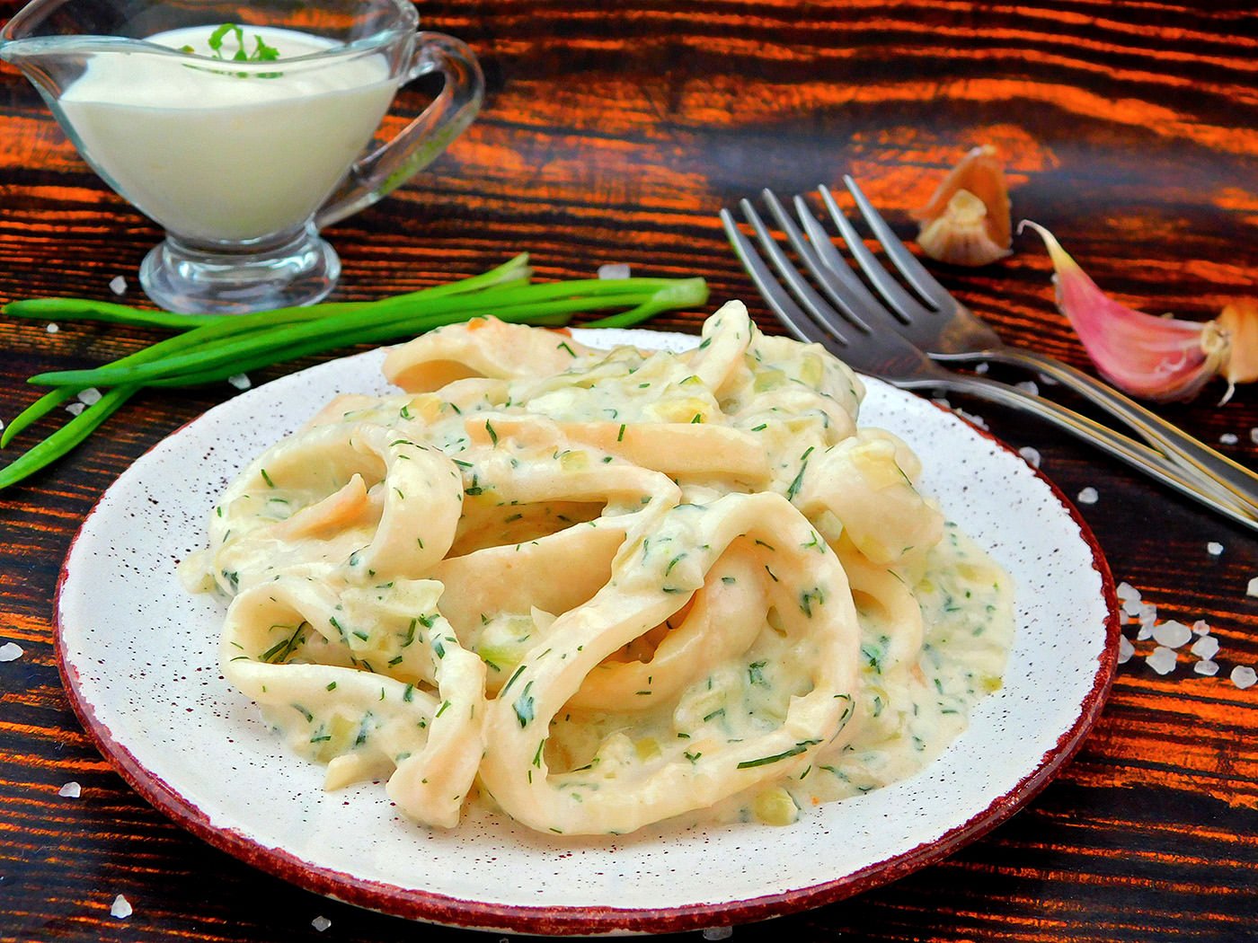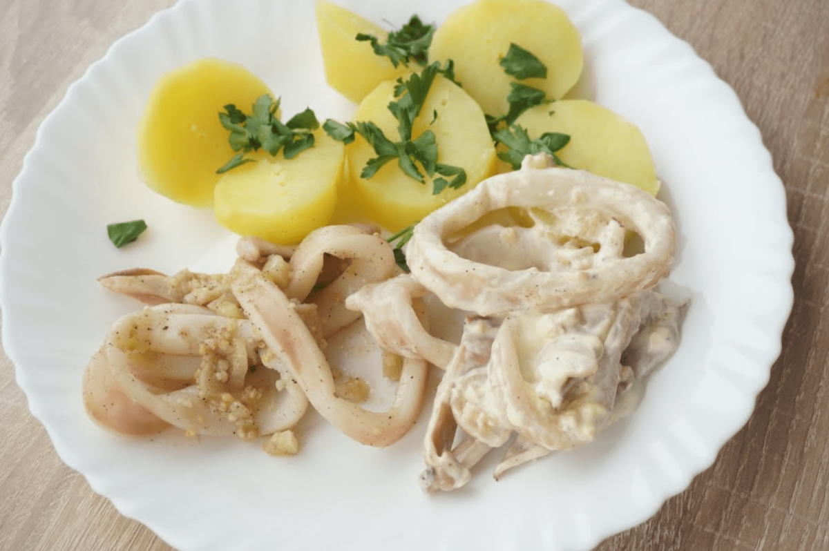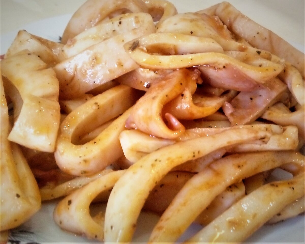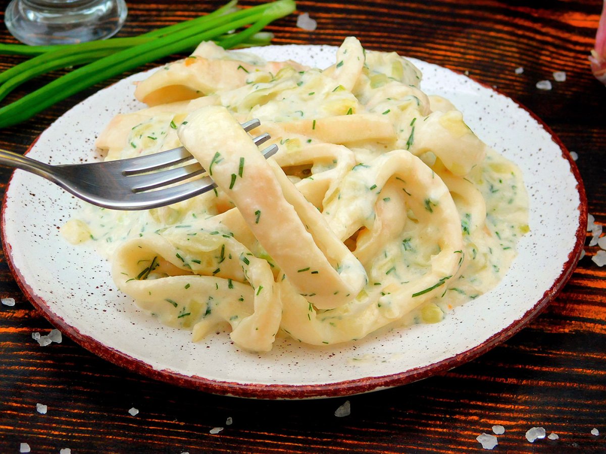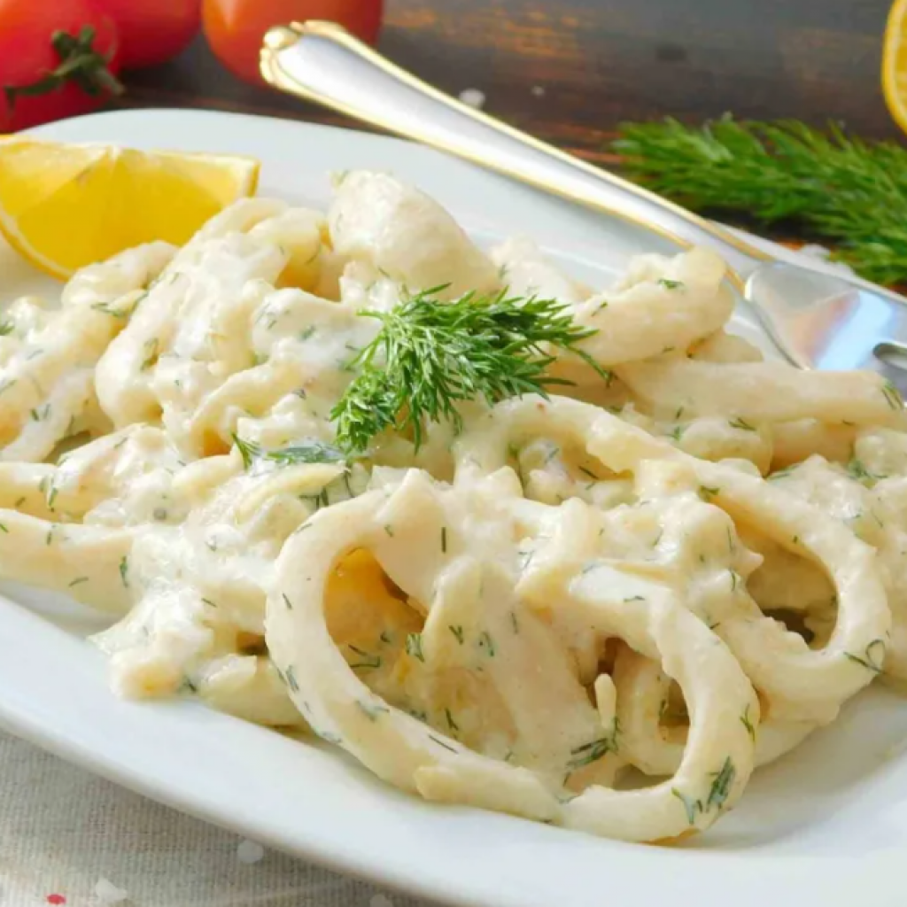 Вкусное море кальмар в сливочном соусе