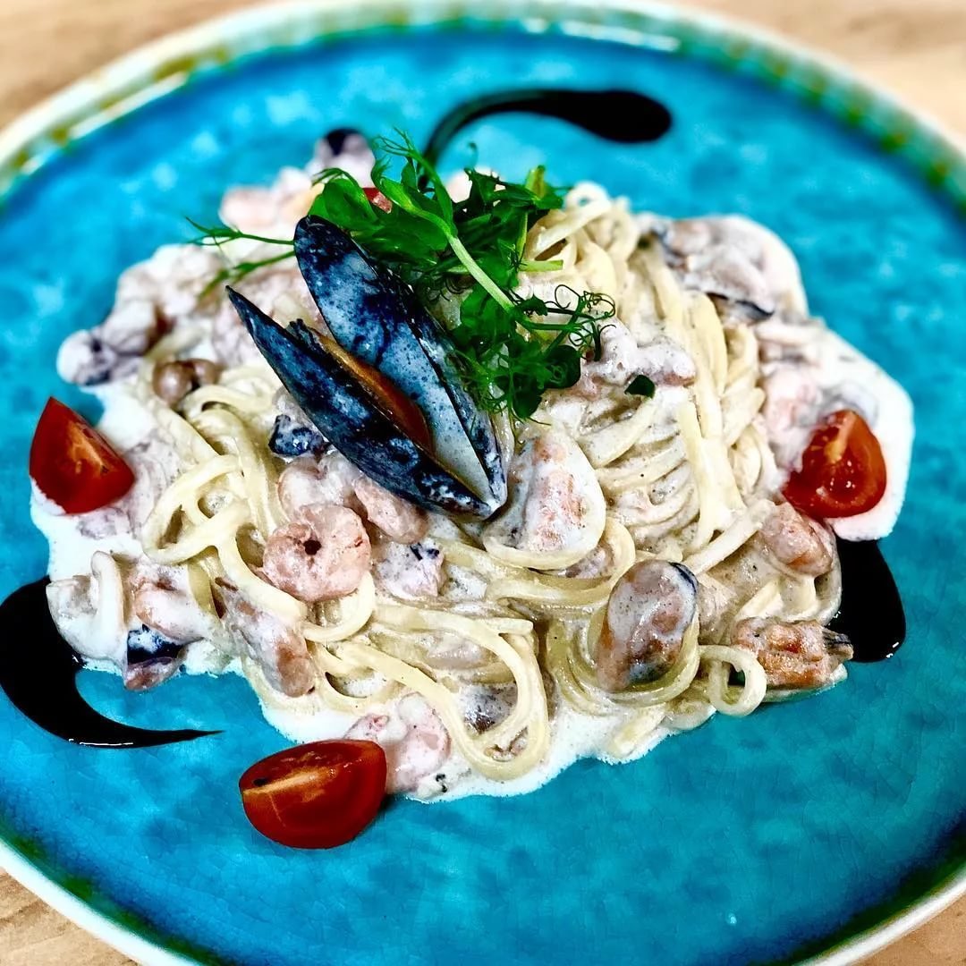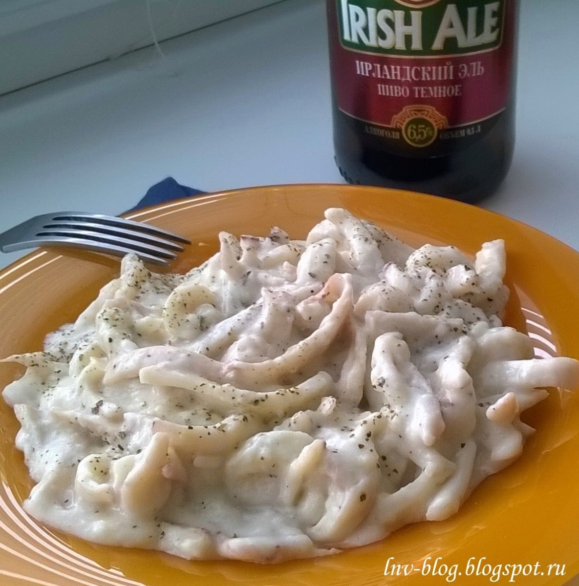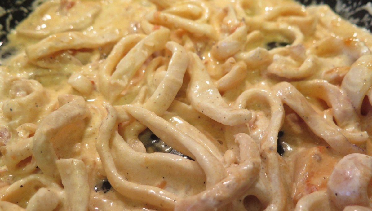 Карбонара с кальмарами в сливочном