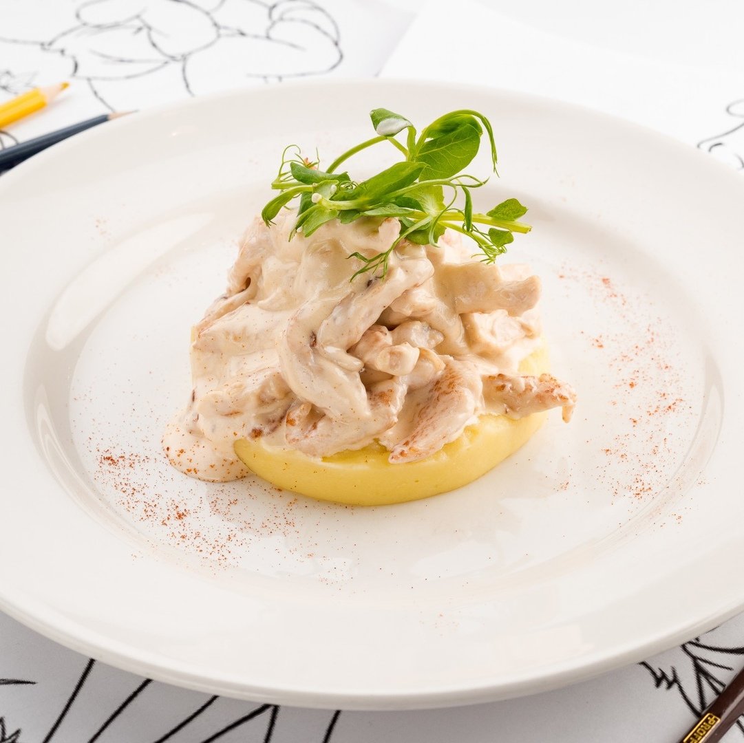 Кальмары в сметанном соусе с шампиньонами