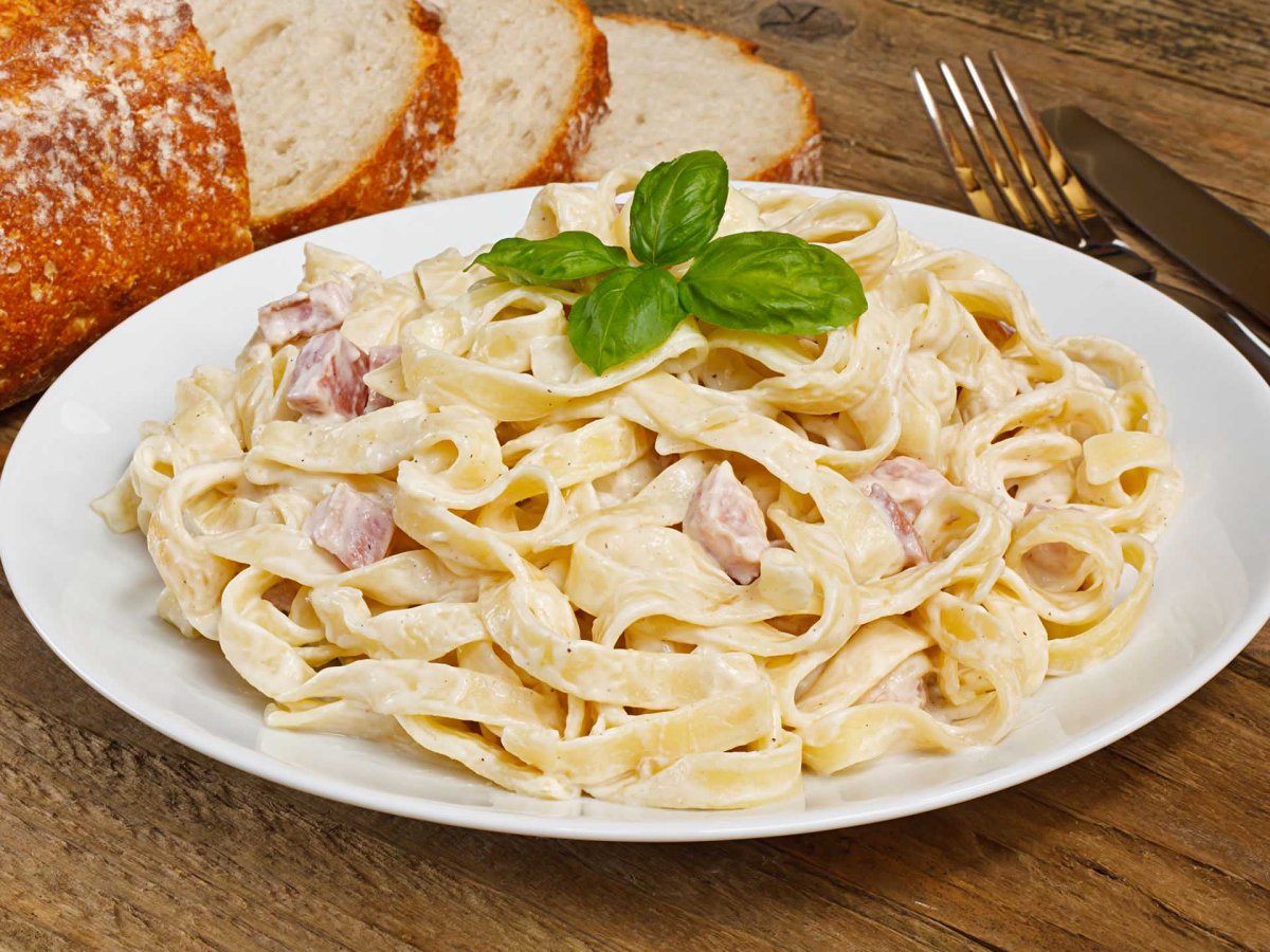 Паста карбонара с беконом и сливками