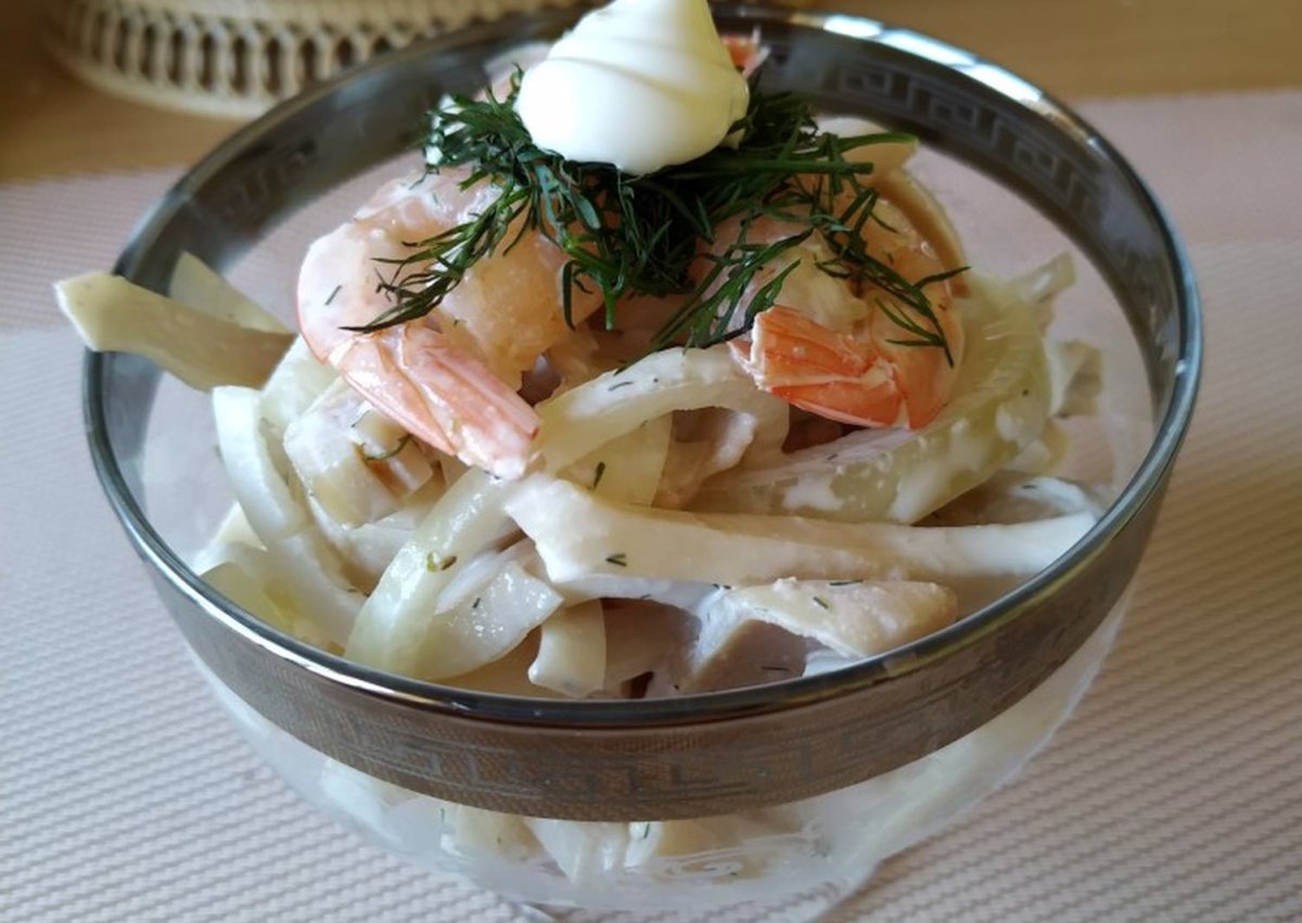 Салат с креветками и майонезом