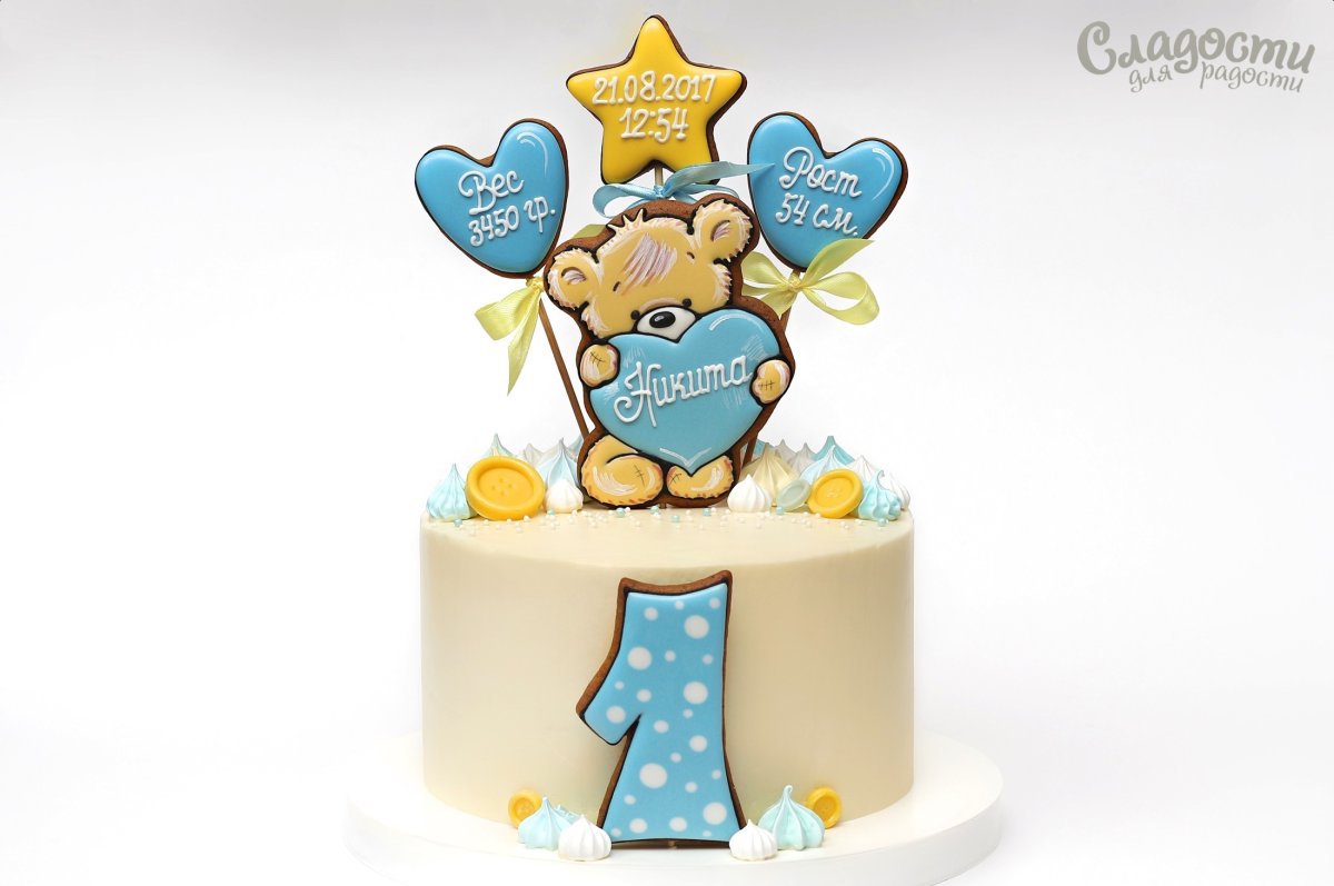 Торт на годик мальчику с пряниками