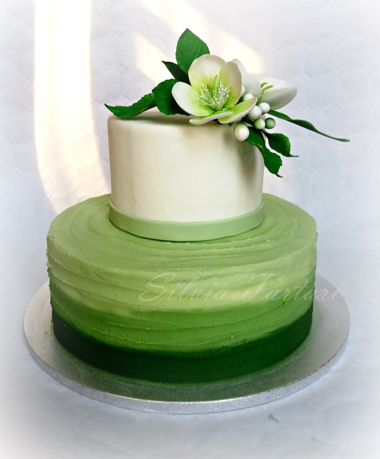 Свадебный торт в бело зеленых тонах