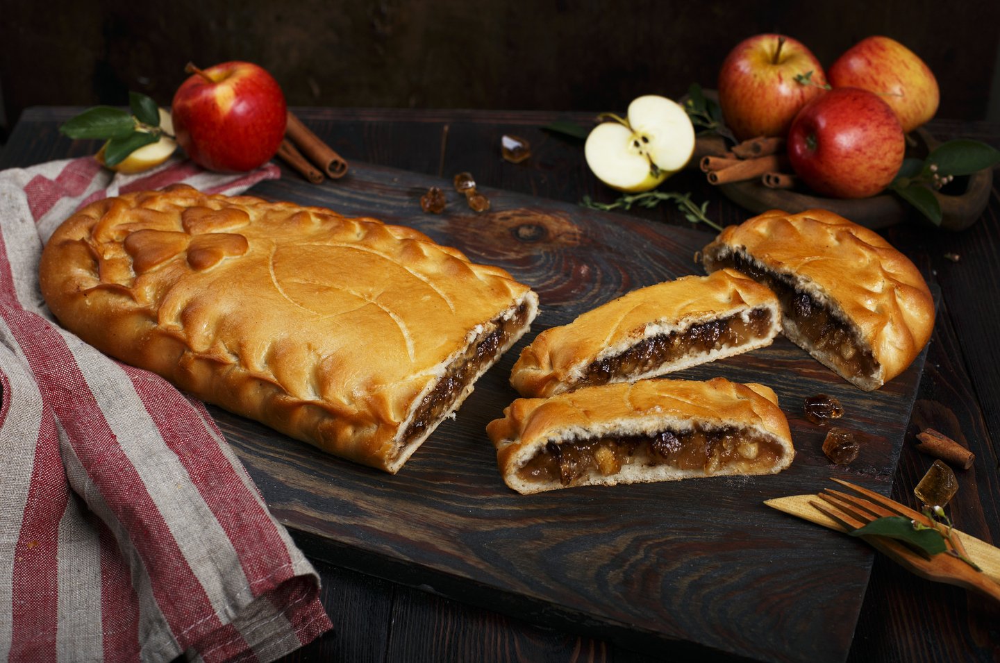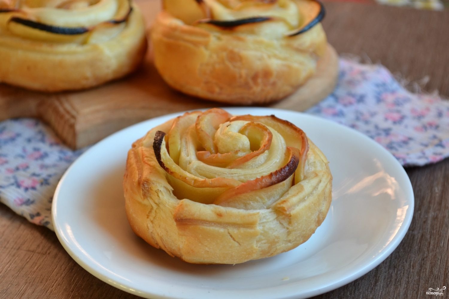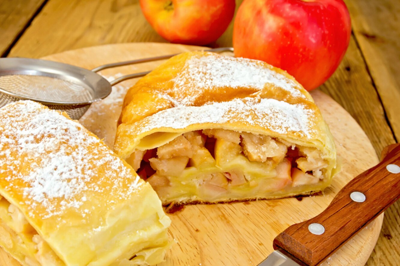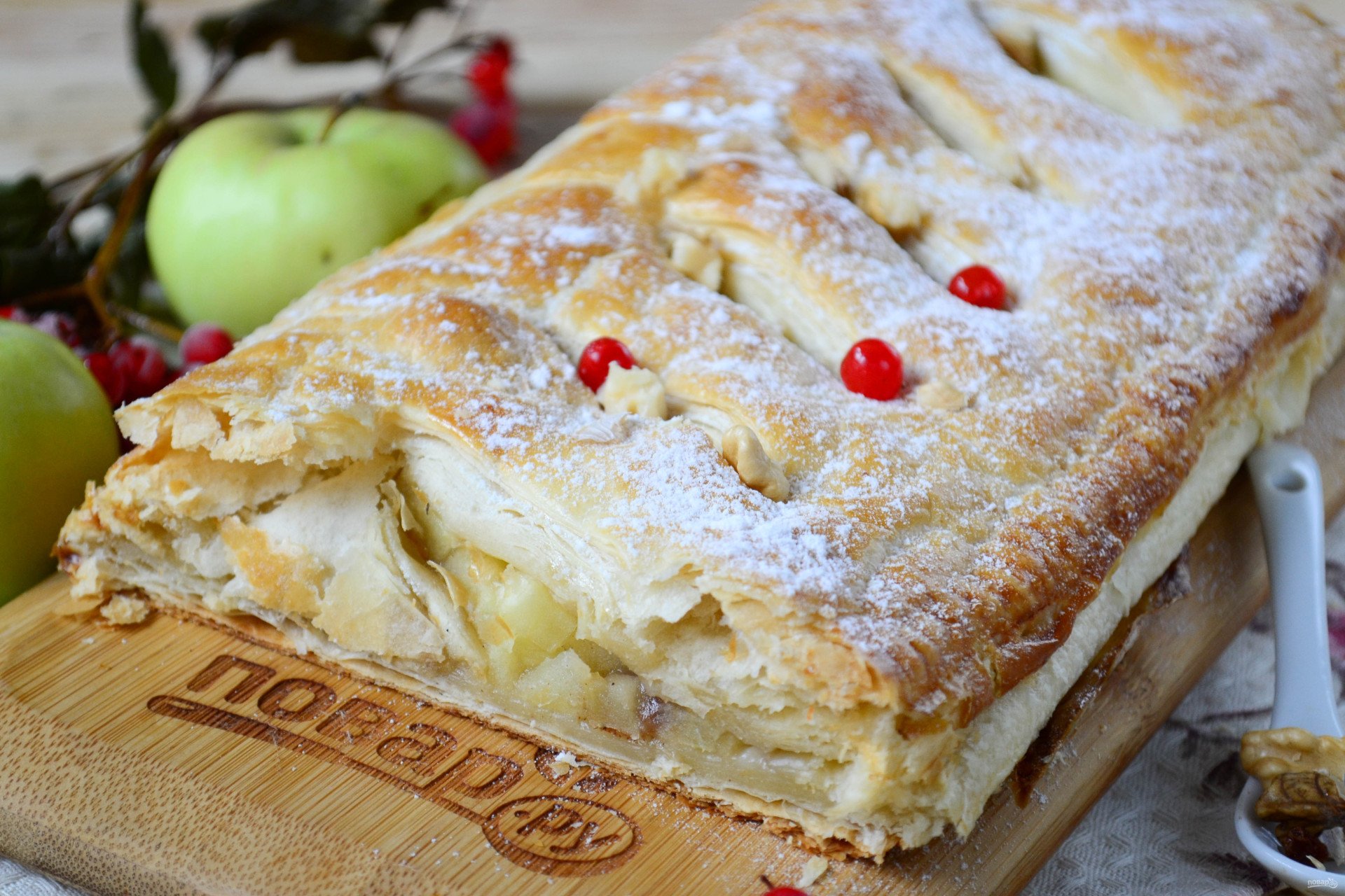 Пирог с яблоками из слоеного дрожжевого теста в духовке