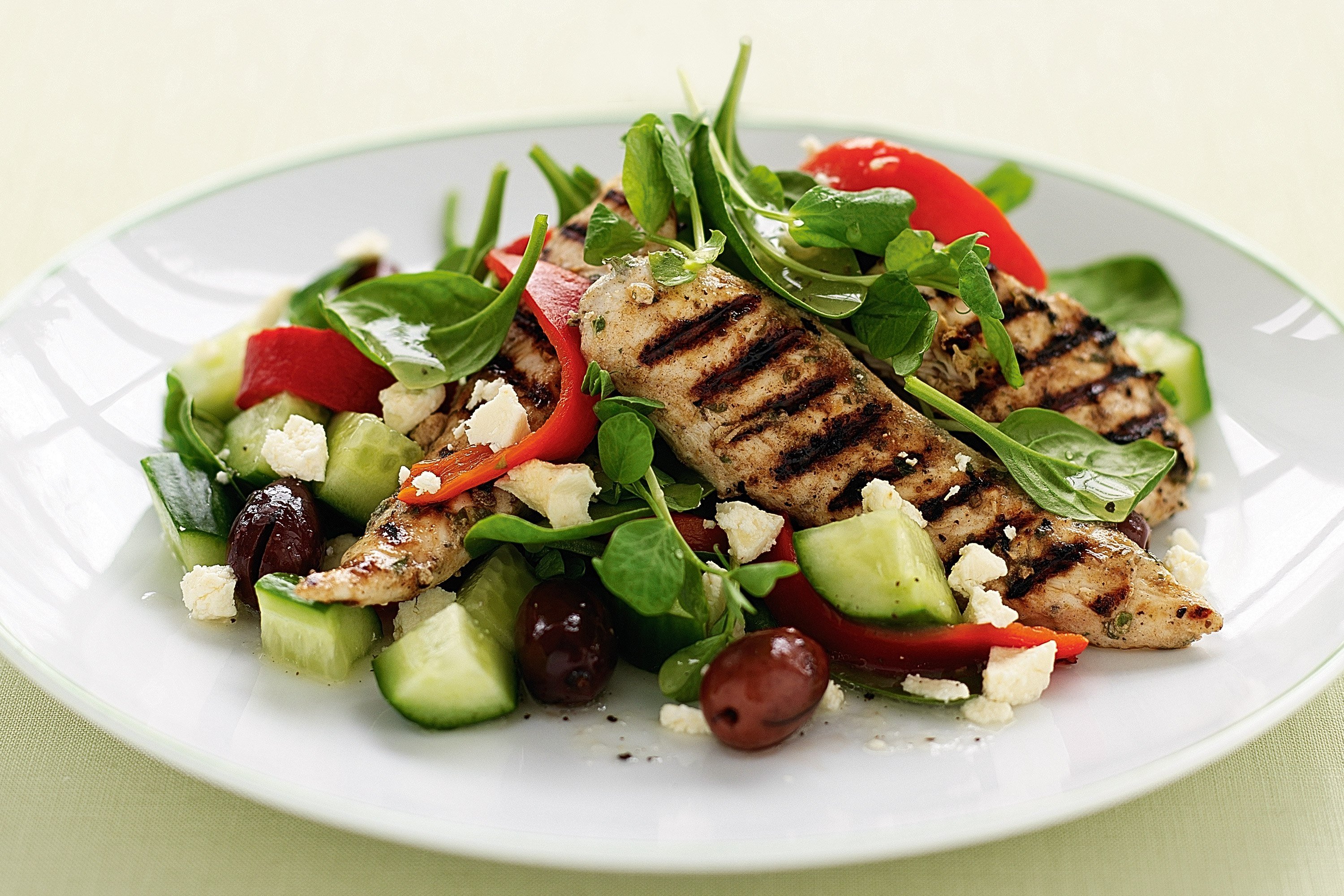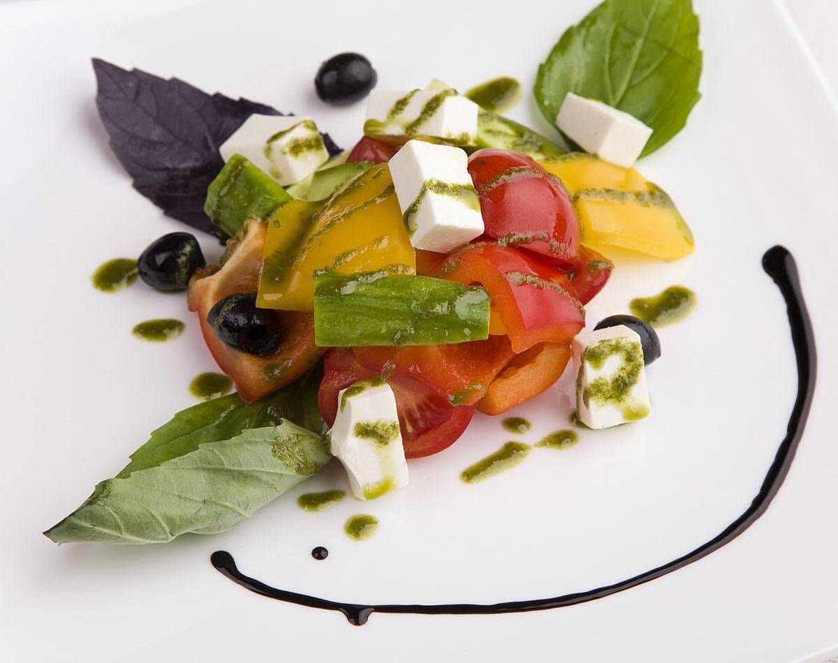 Греческий салат с соусом песто