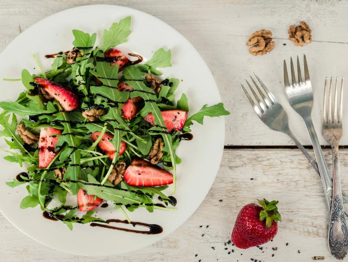 Салат из рукколы с клубникой