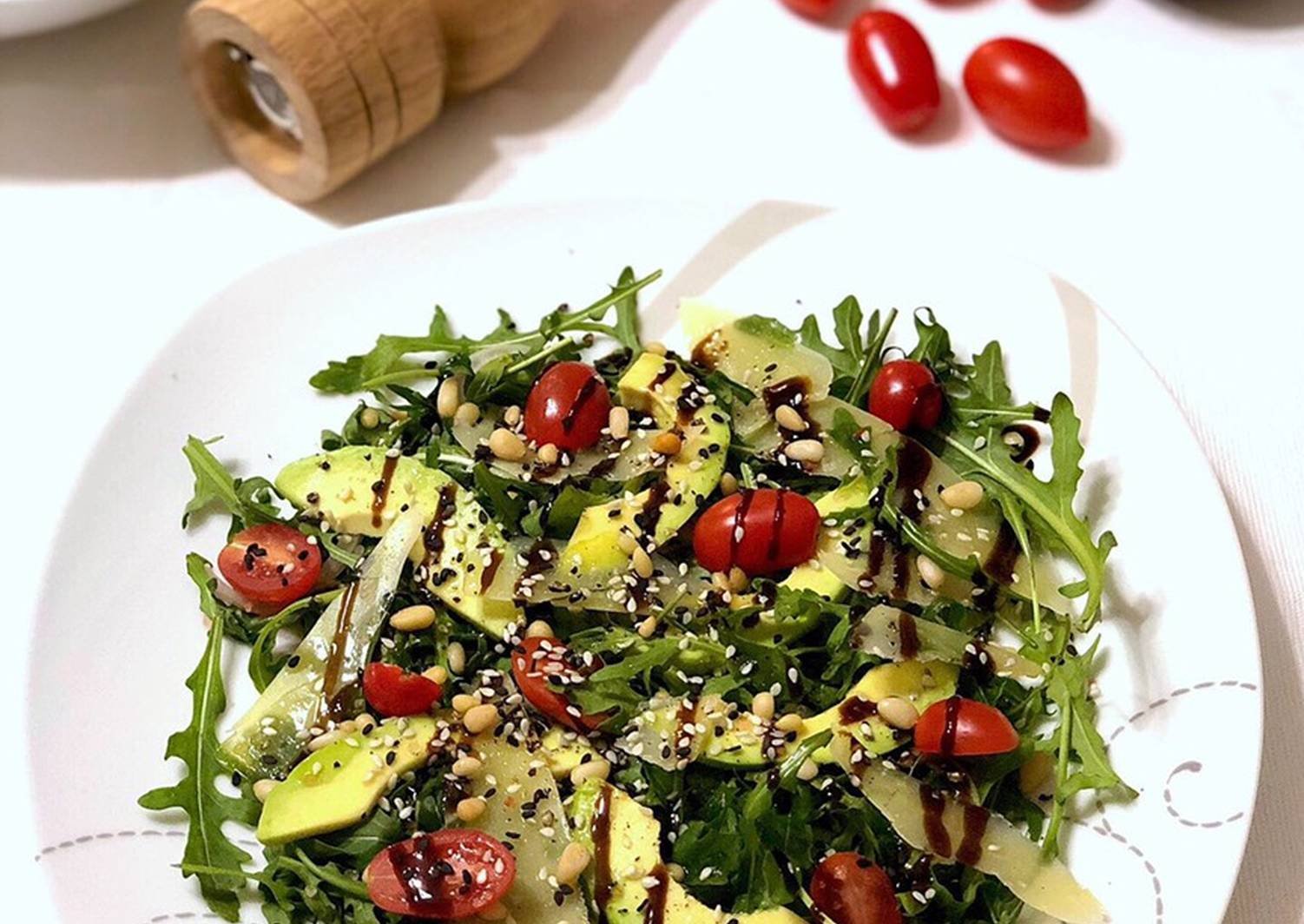 Салат бальзамический соус руккола