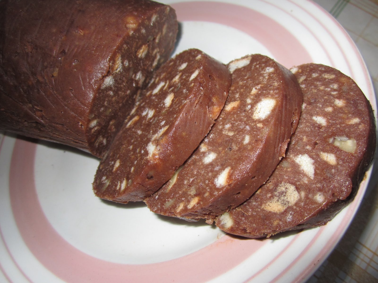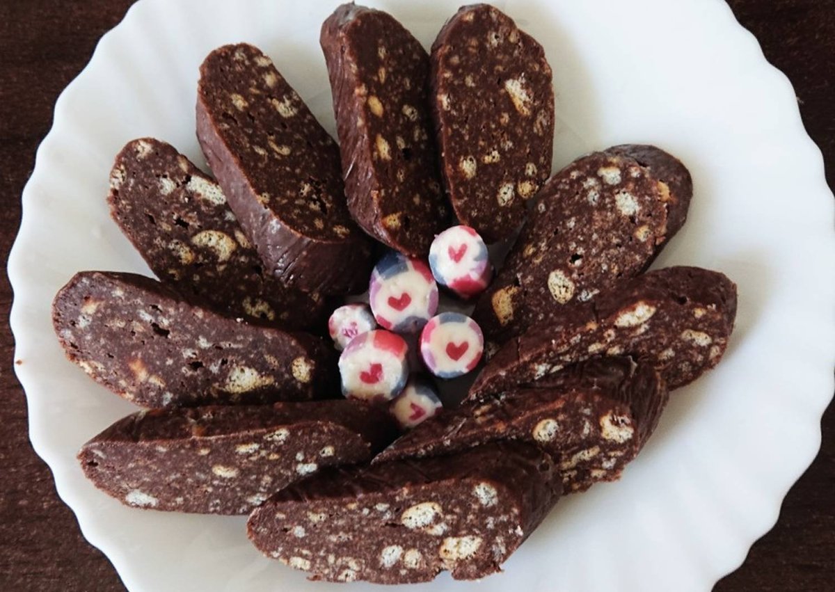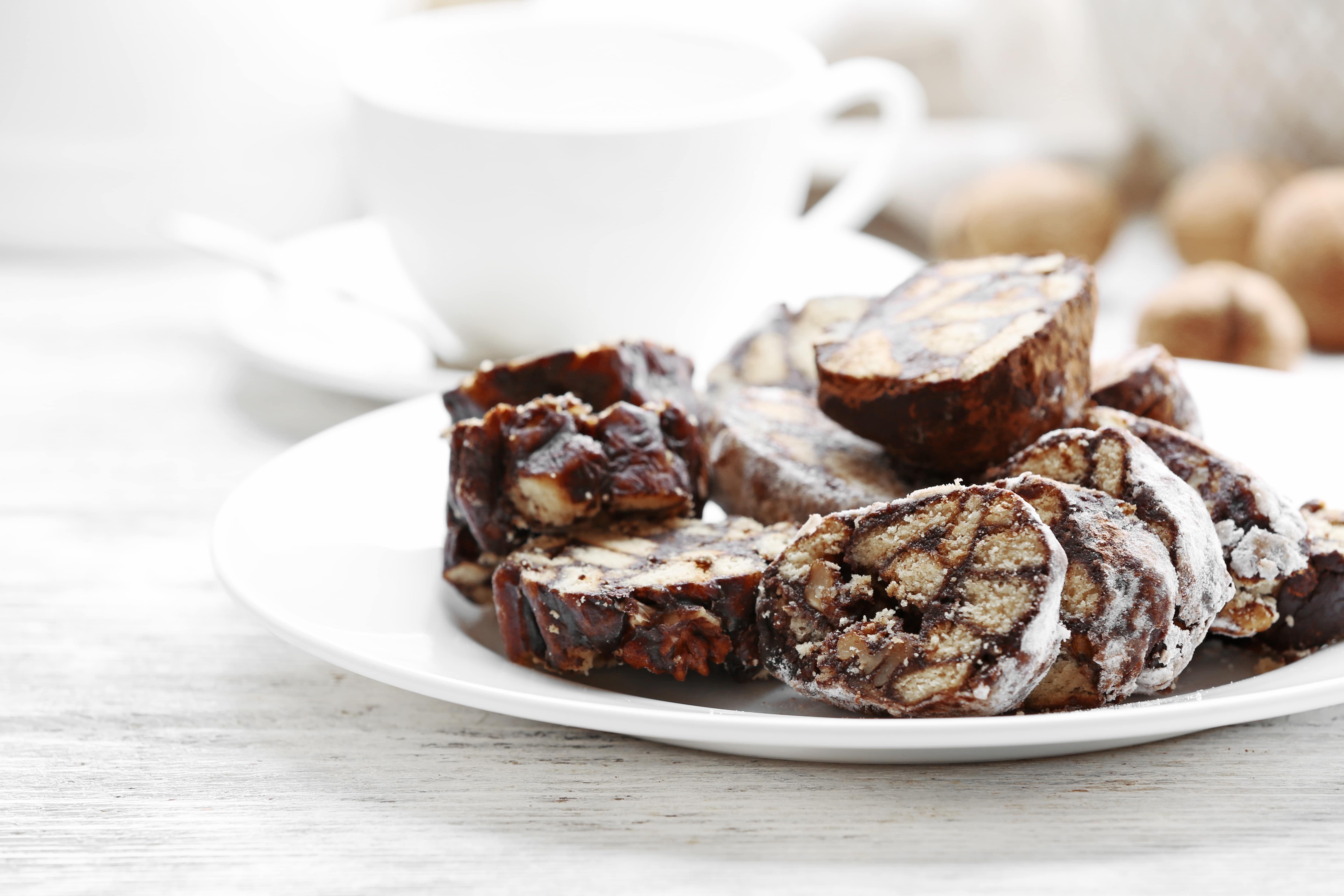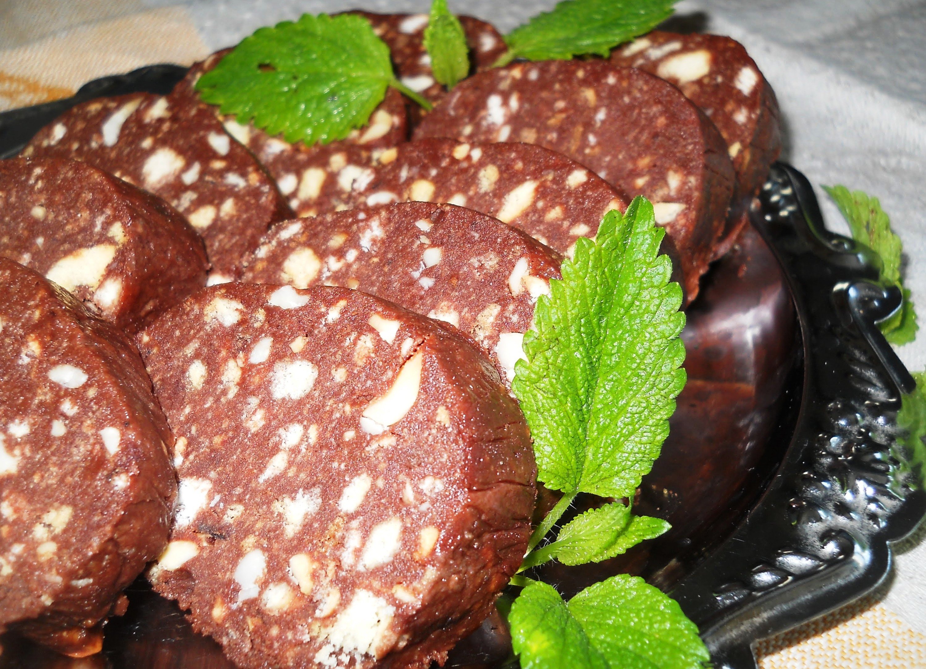 Фото шоколадная колбаса на тарелке