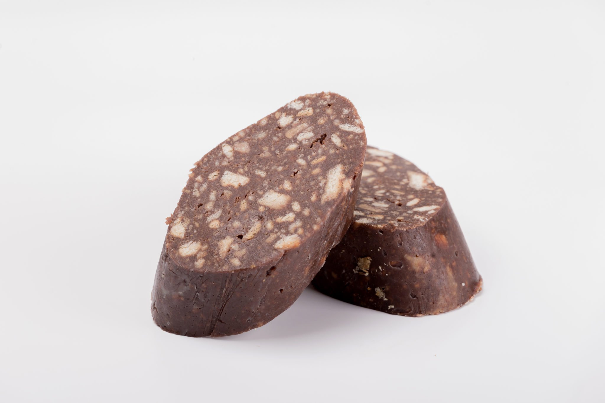 Шоколадная колбаска на белом фоне