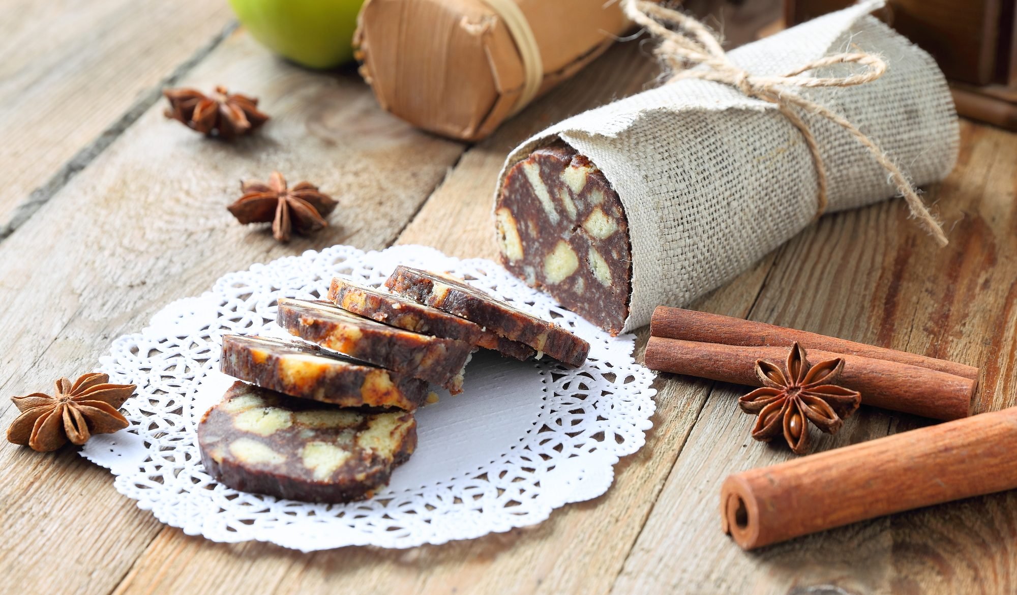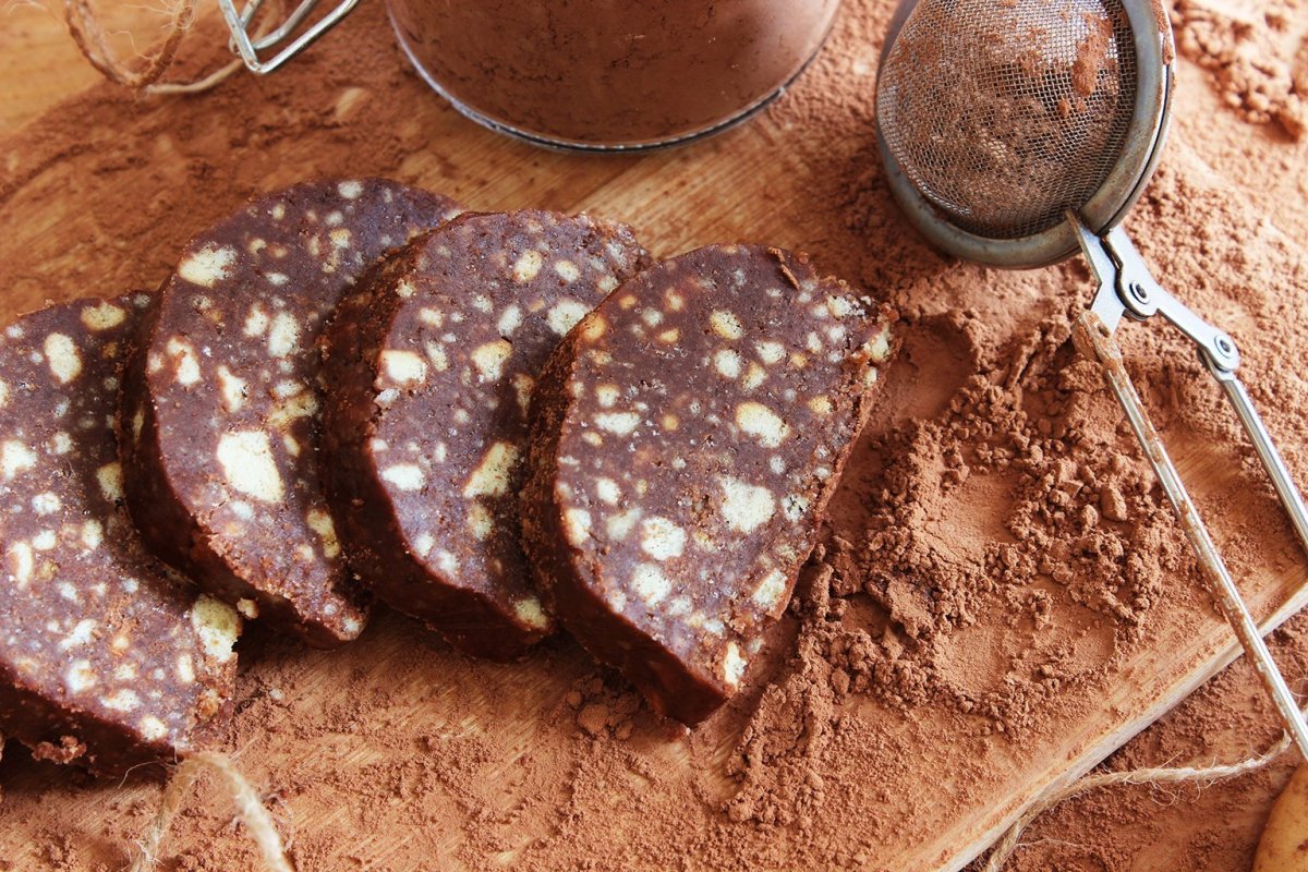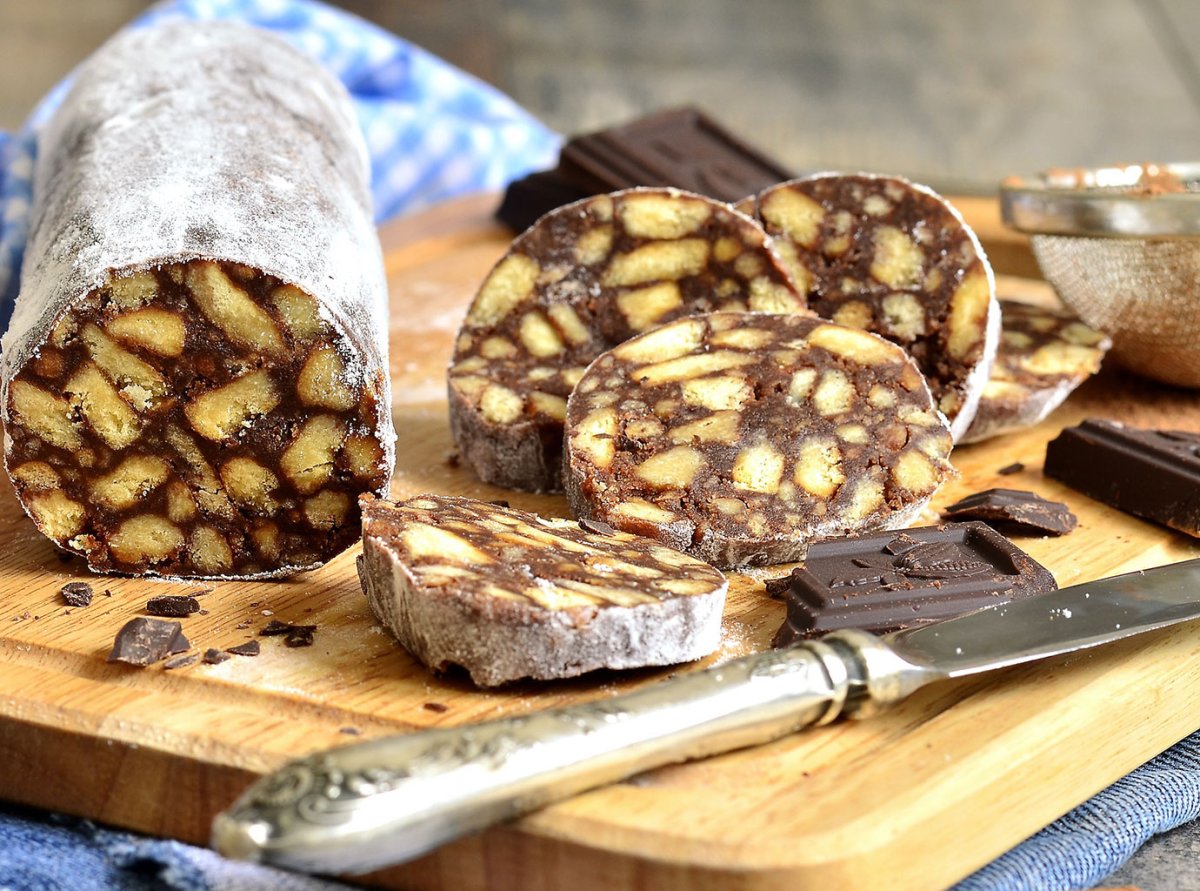 Итальянский десерт шоколадная колбаска