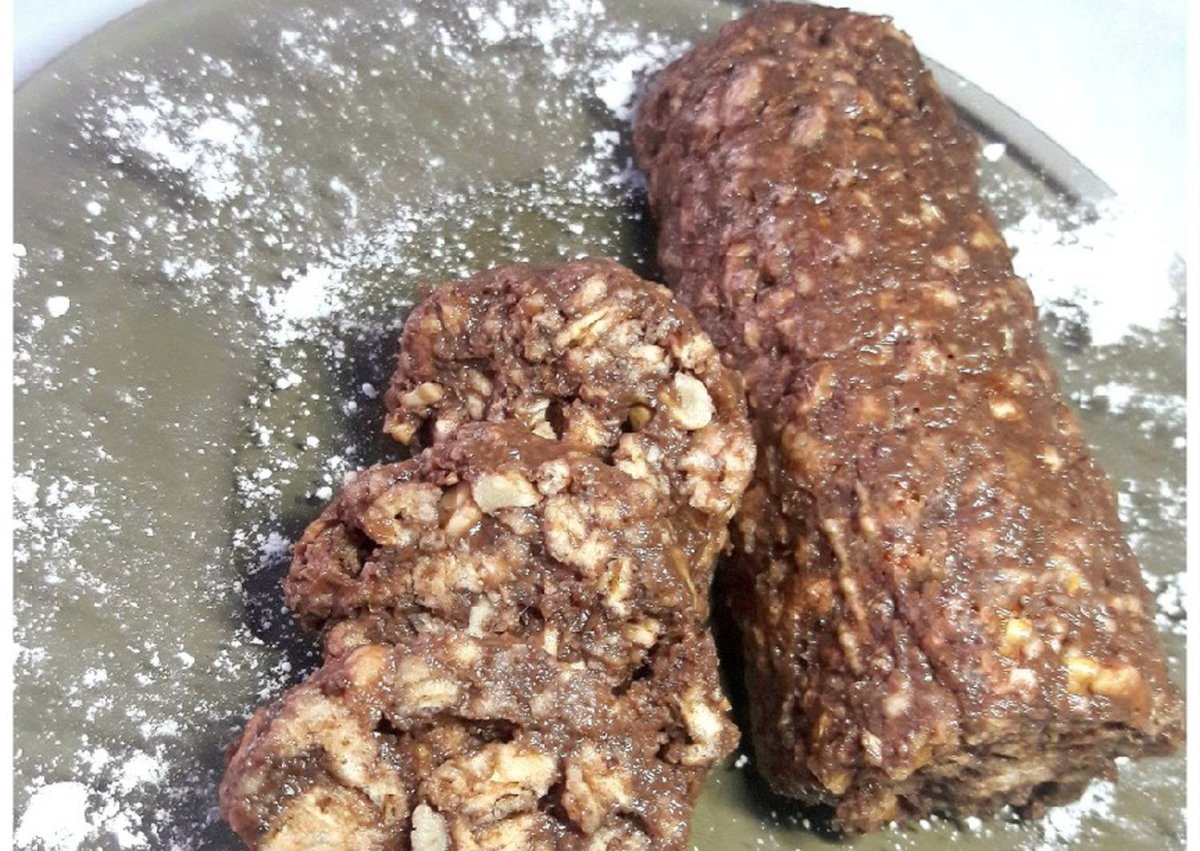 Шоколадная колбаса из печенья и какао