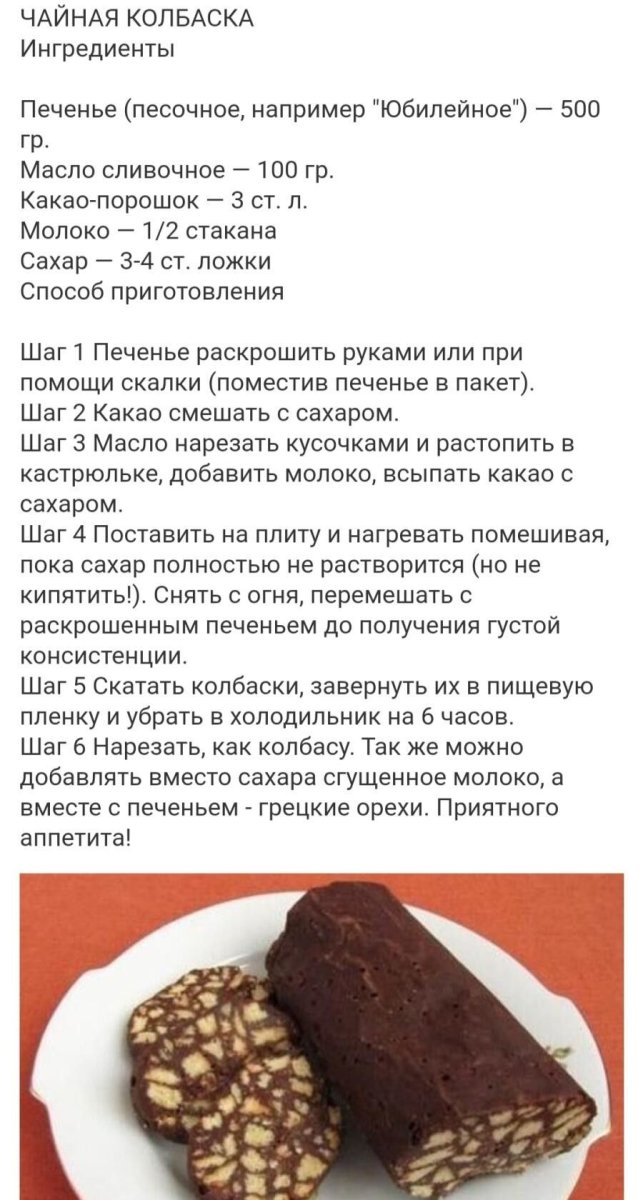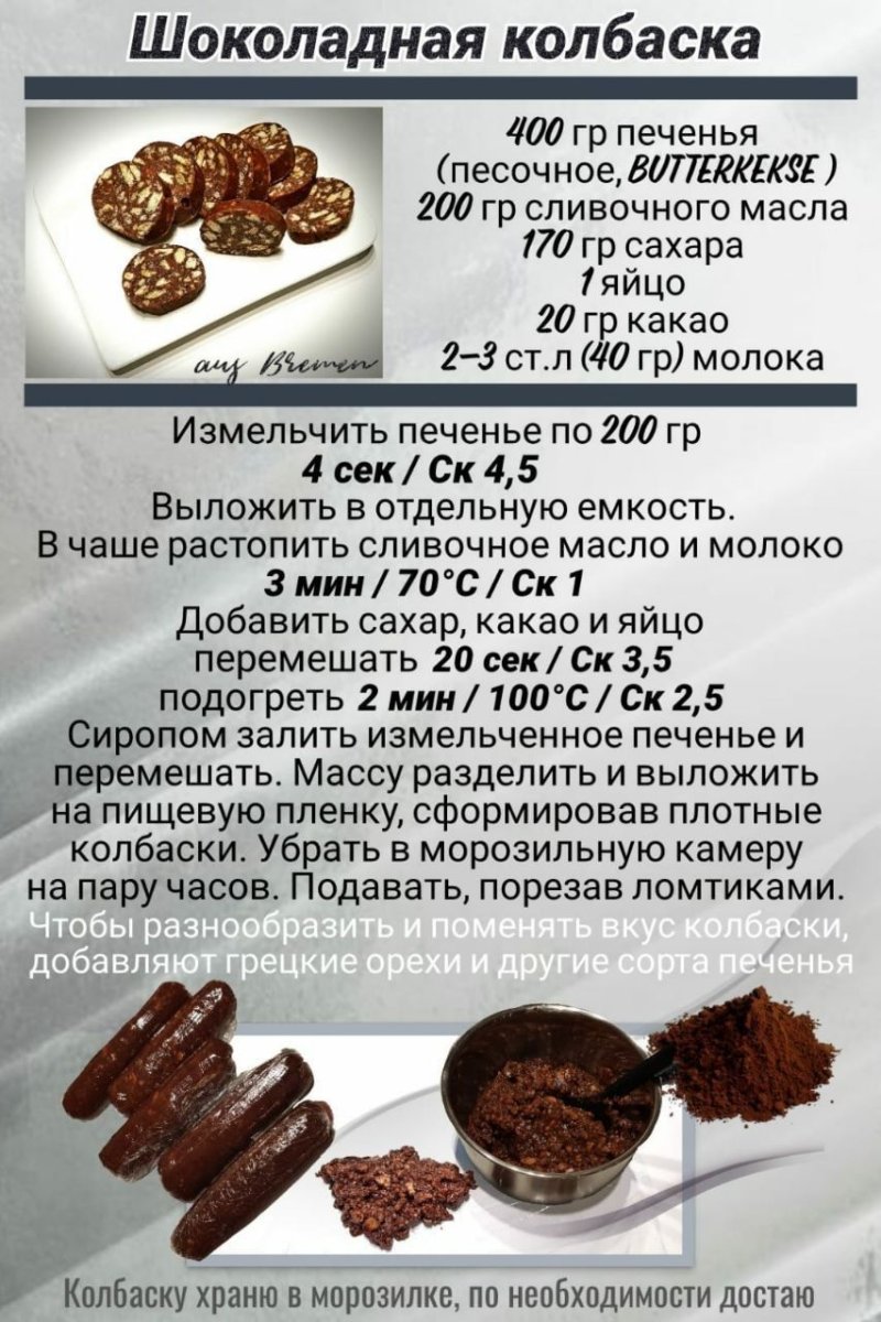 Рецепт шоколадной колбасы рецепт