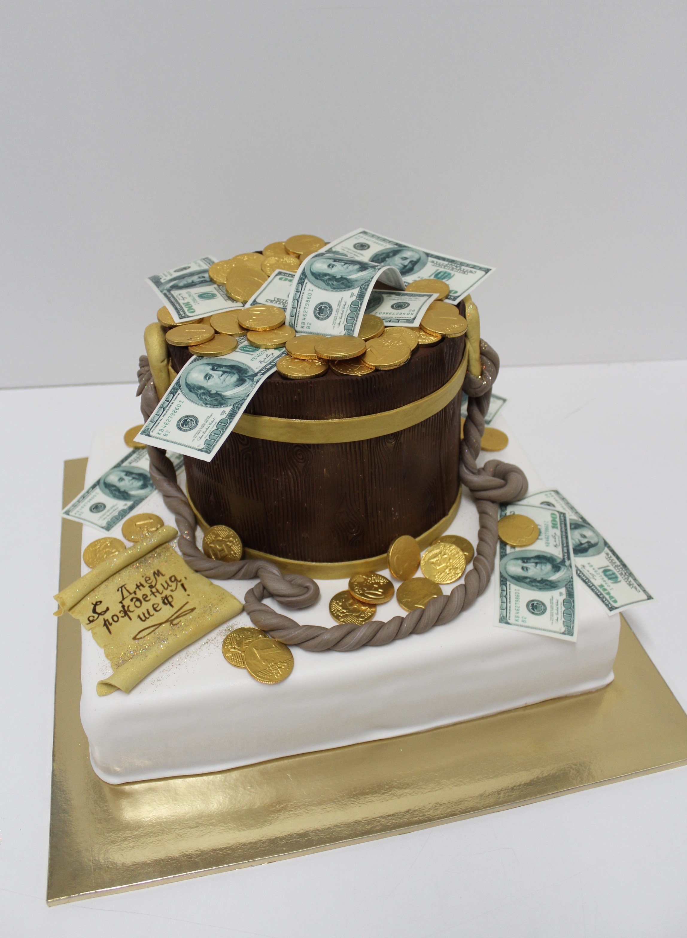 Торт мешочек с деньгами