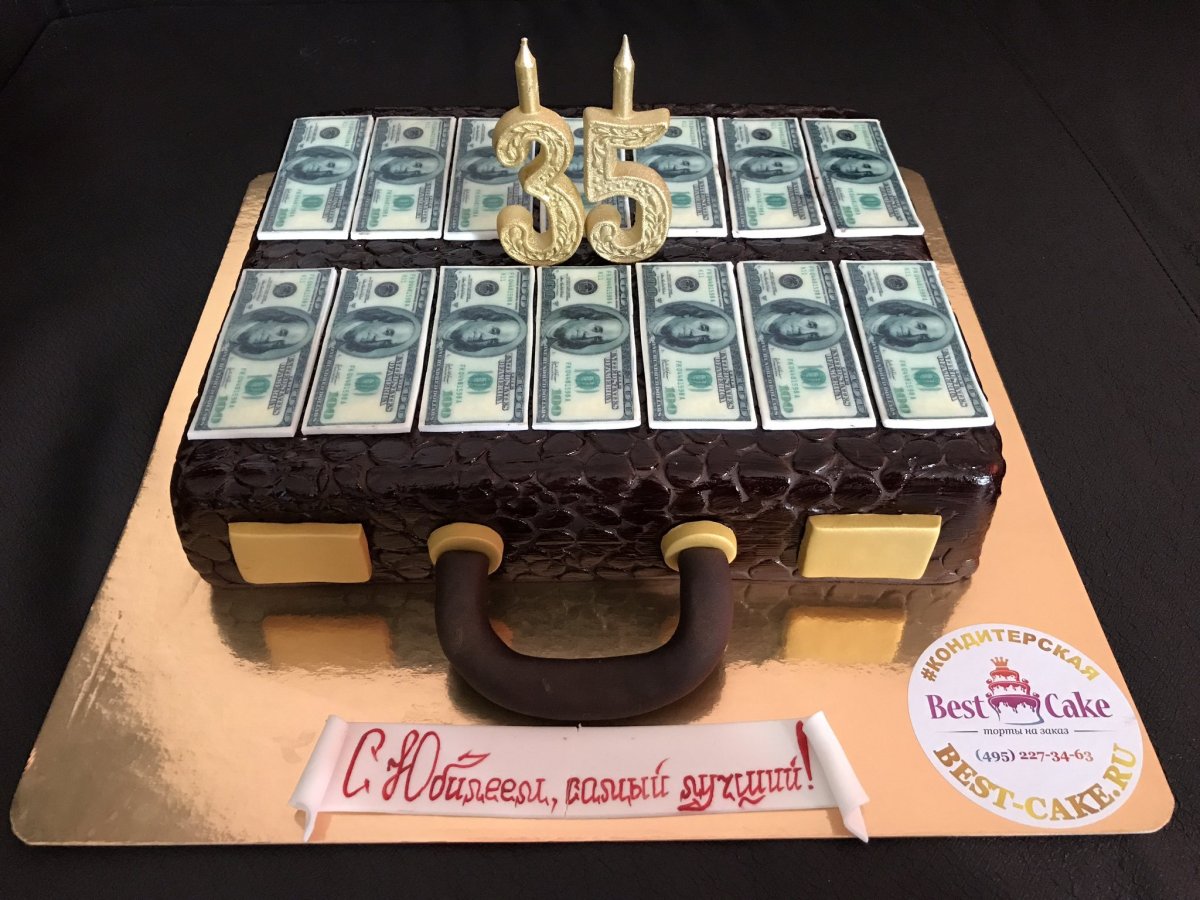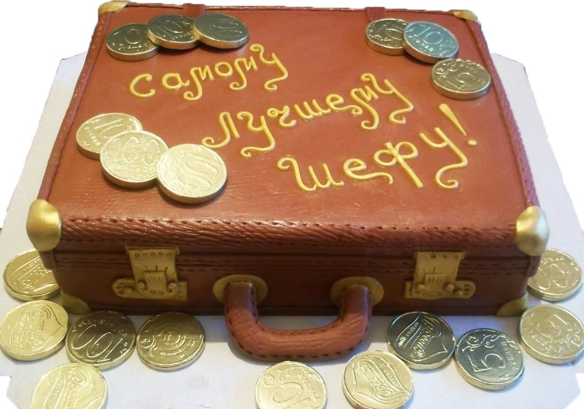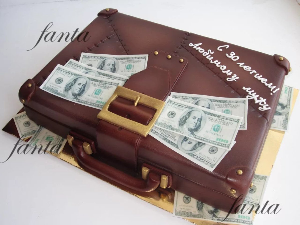 Торт в виде чемодана с деньгами
