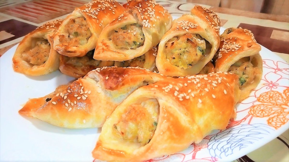 Закусочные слойки рулетики