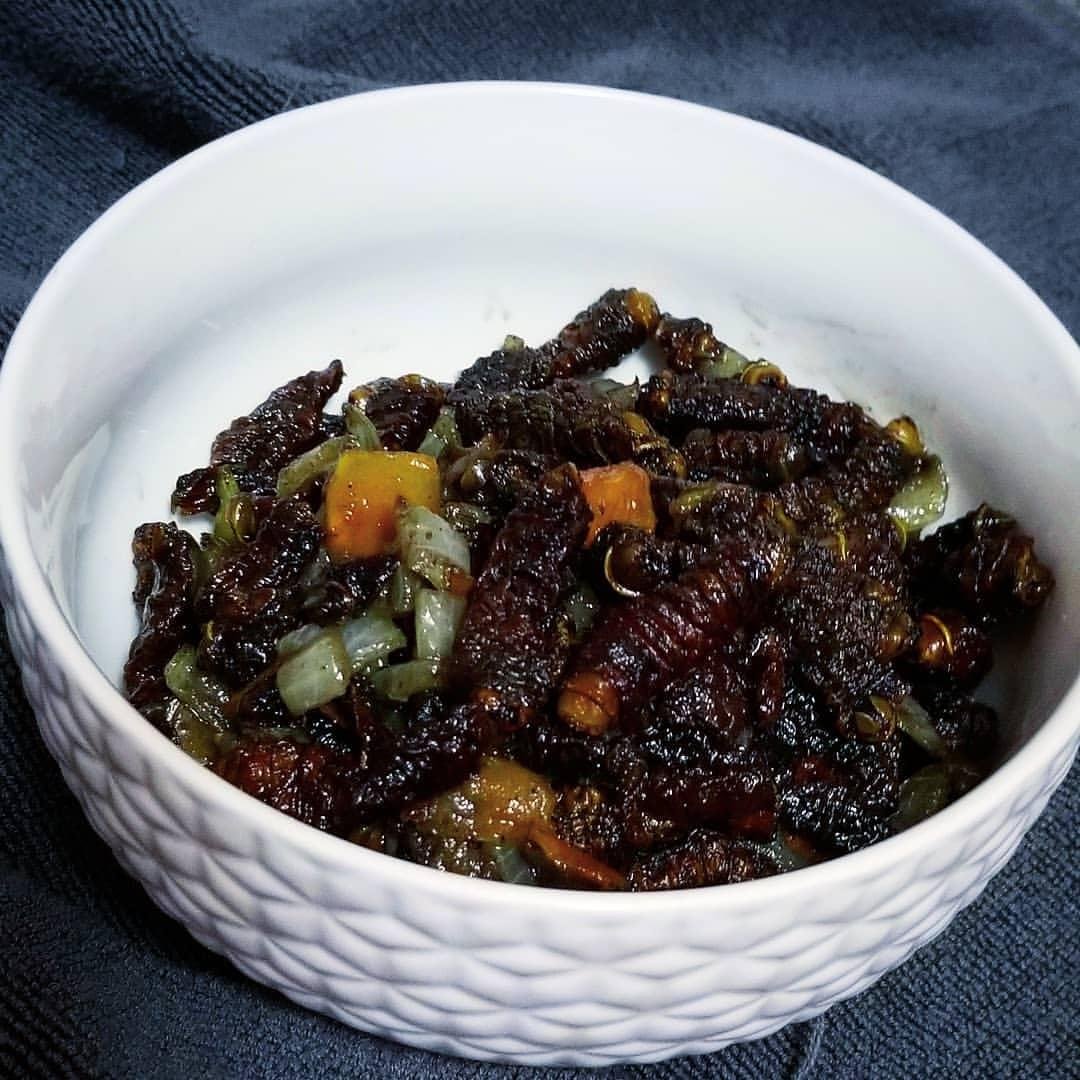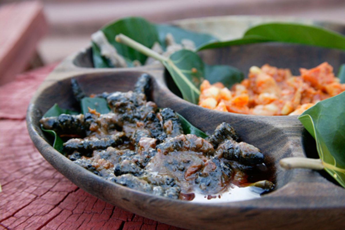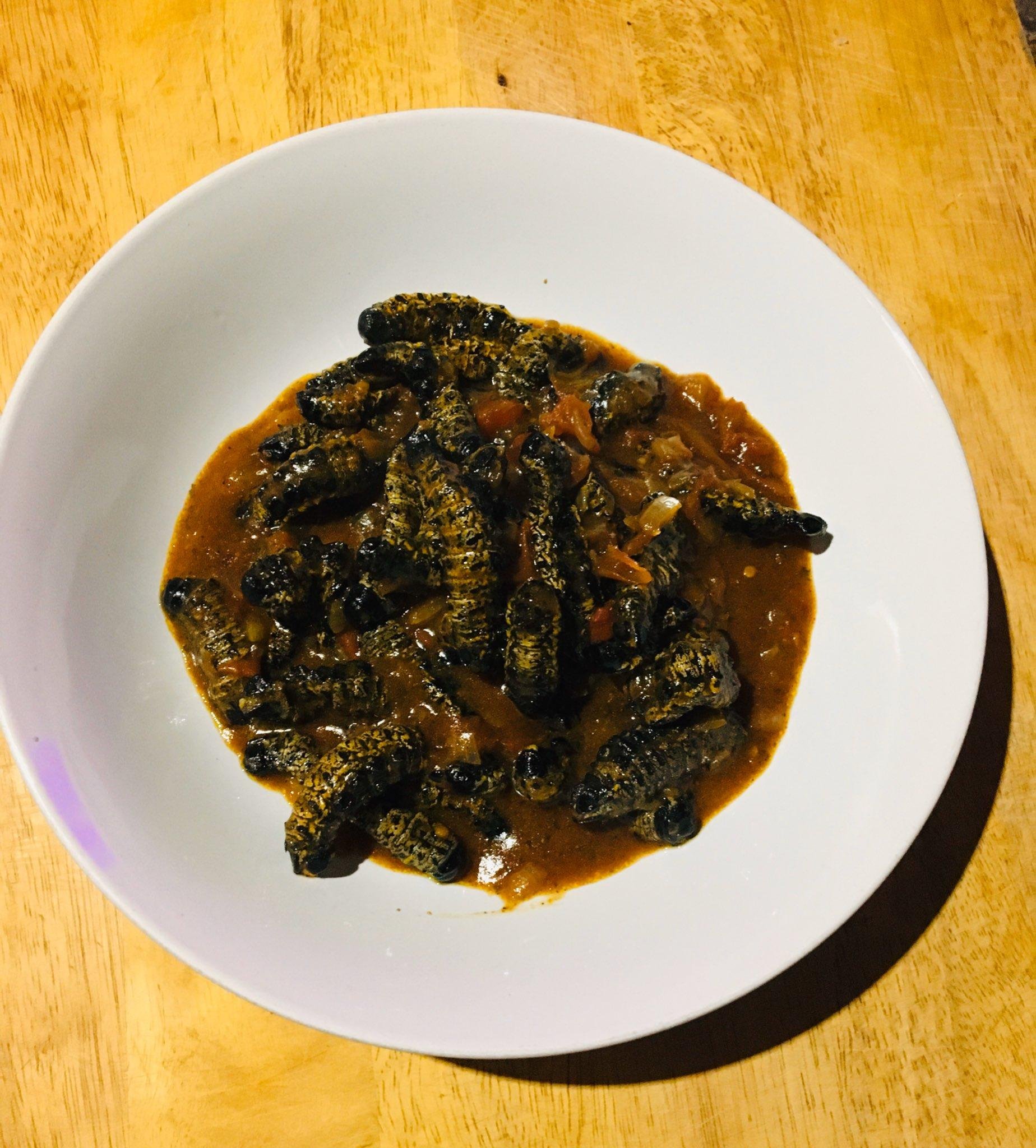 Гусеницы вида Gonimbrasia Belina или черви мопане блюдо