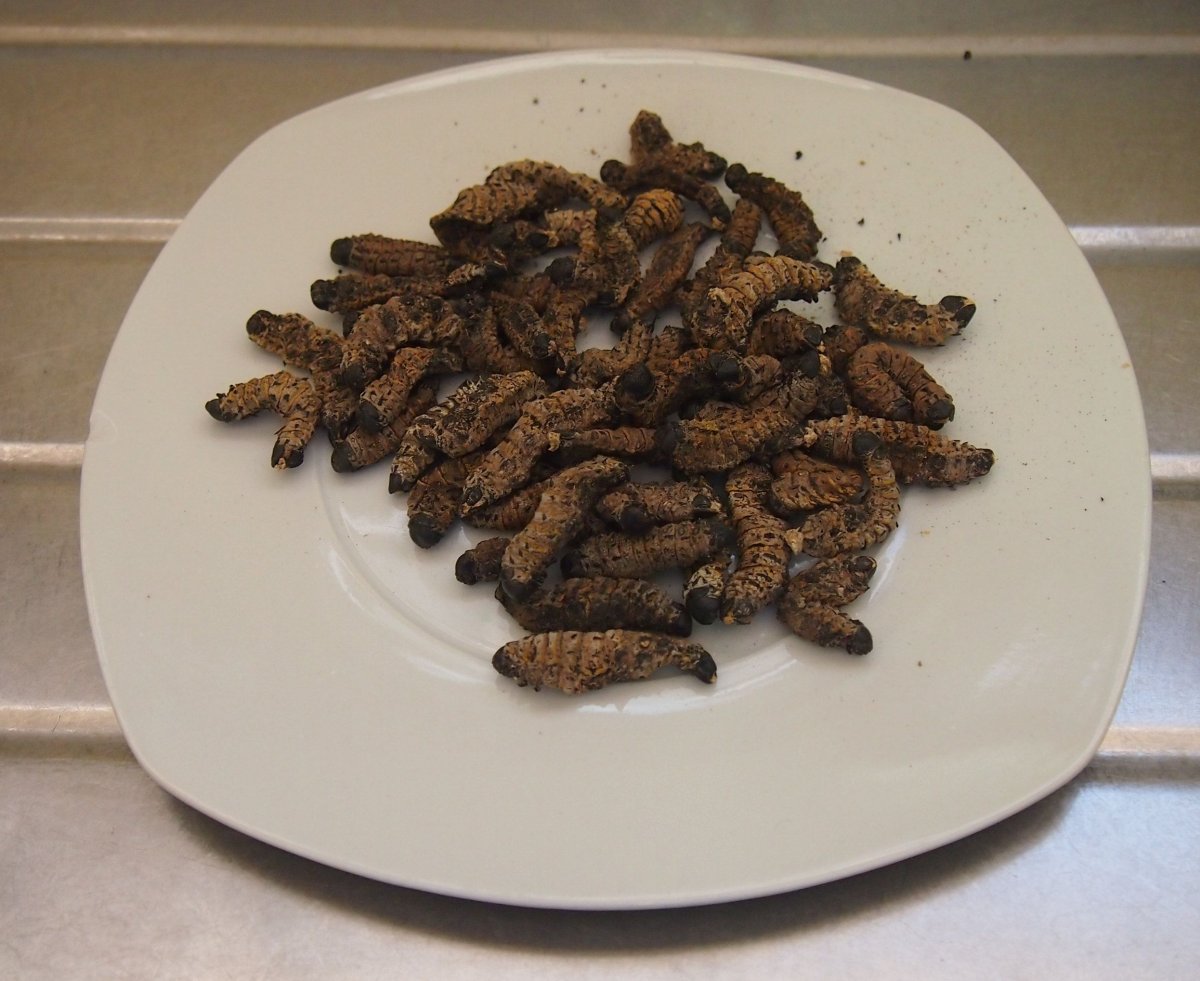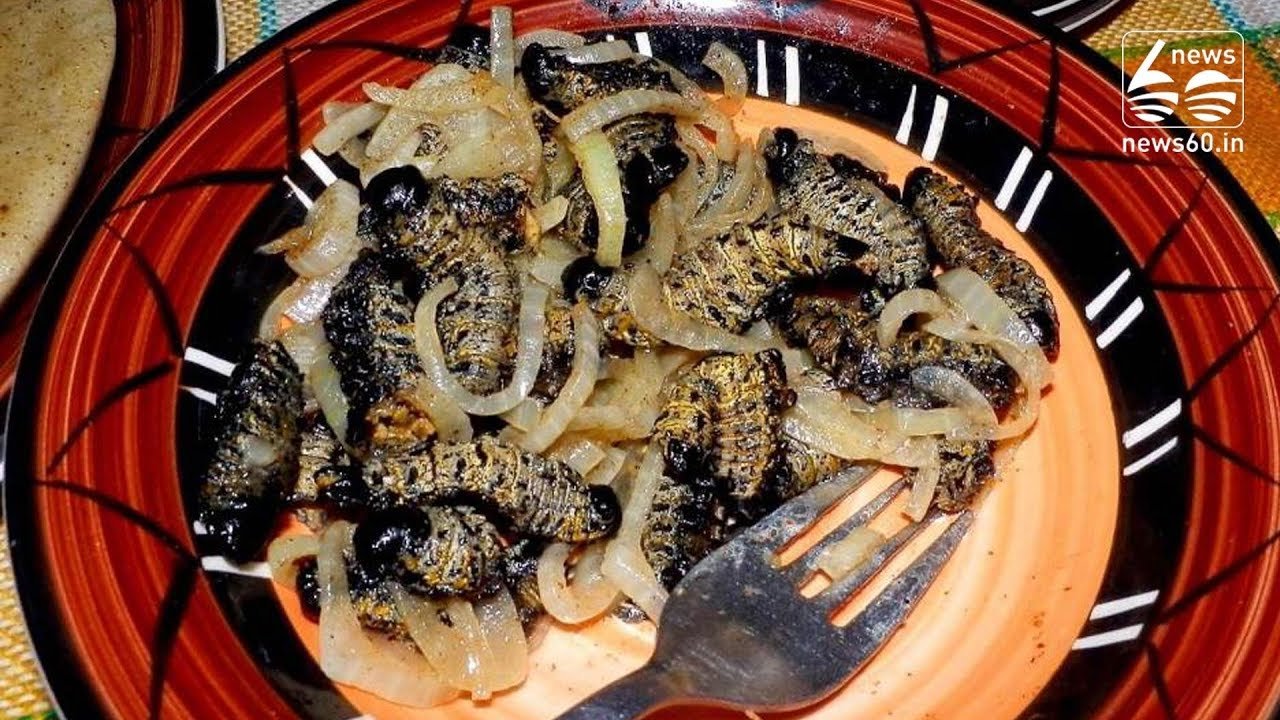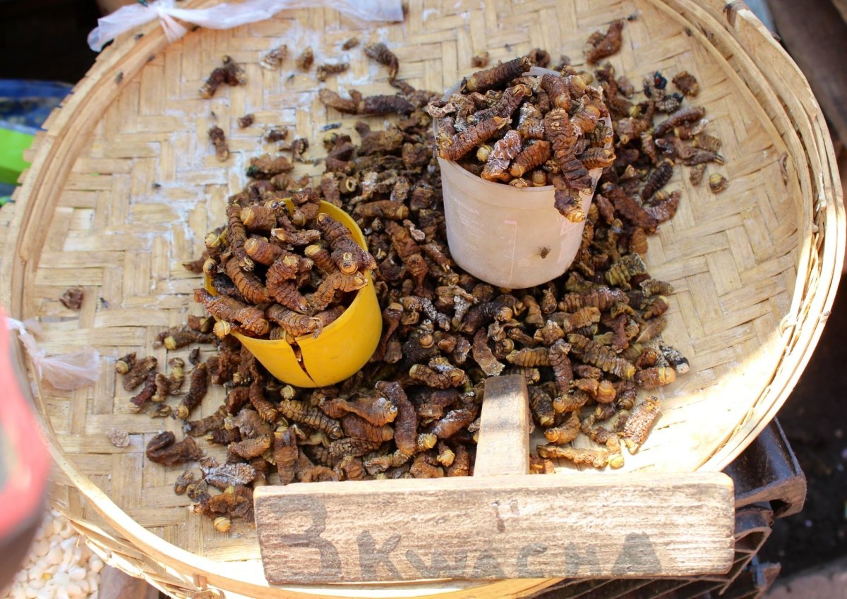 Гусеницы вида Gonimbrasia Belina или черви мопане блюдо