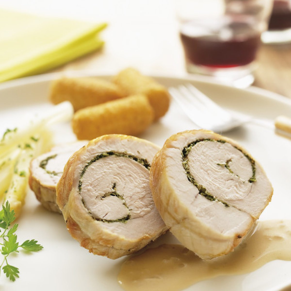 Рулетики из индейки с соусом