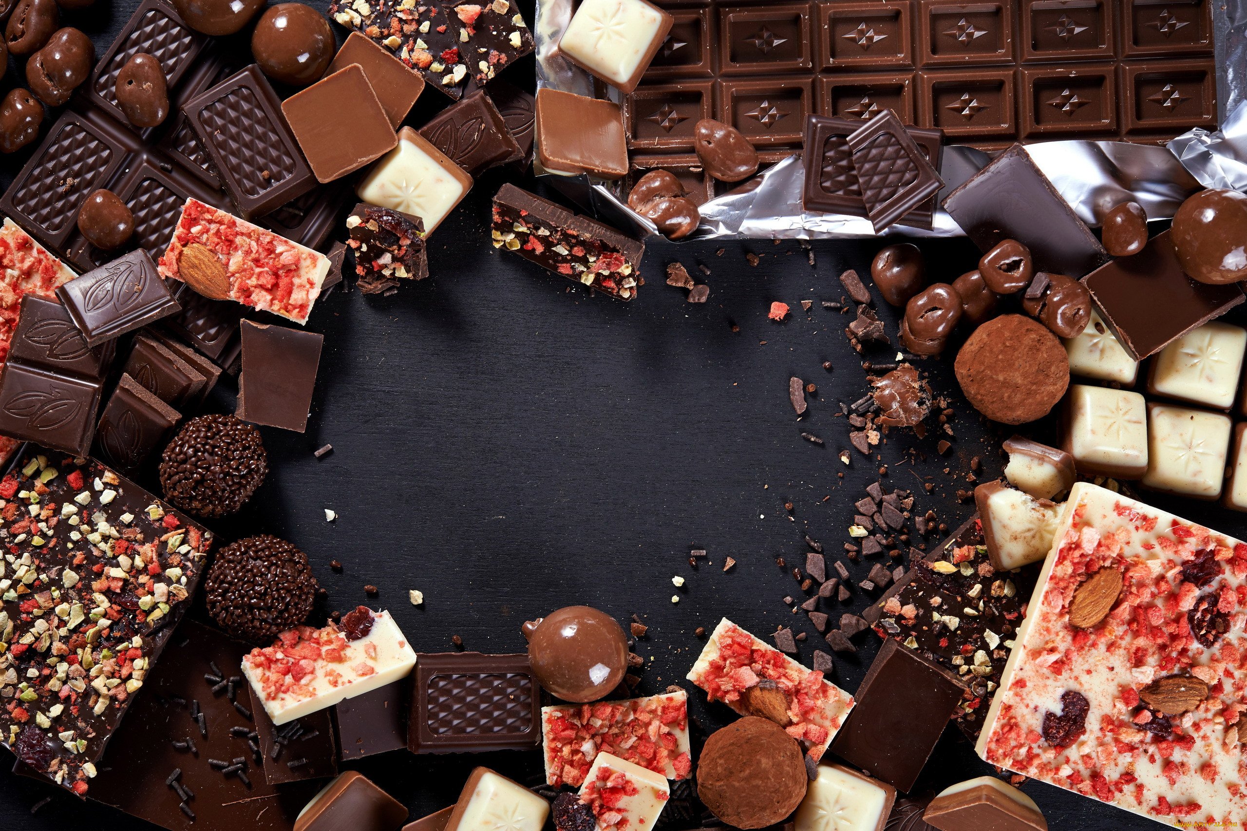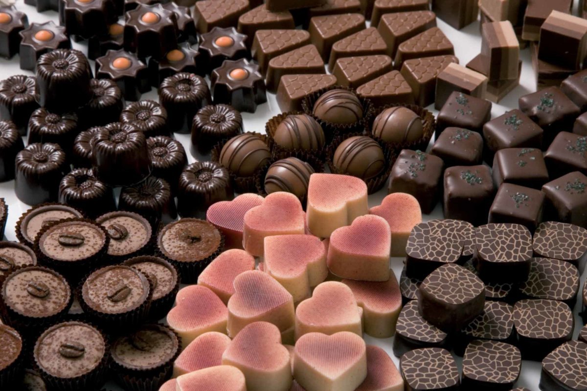 Много шоколадных конфет