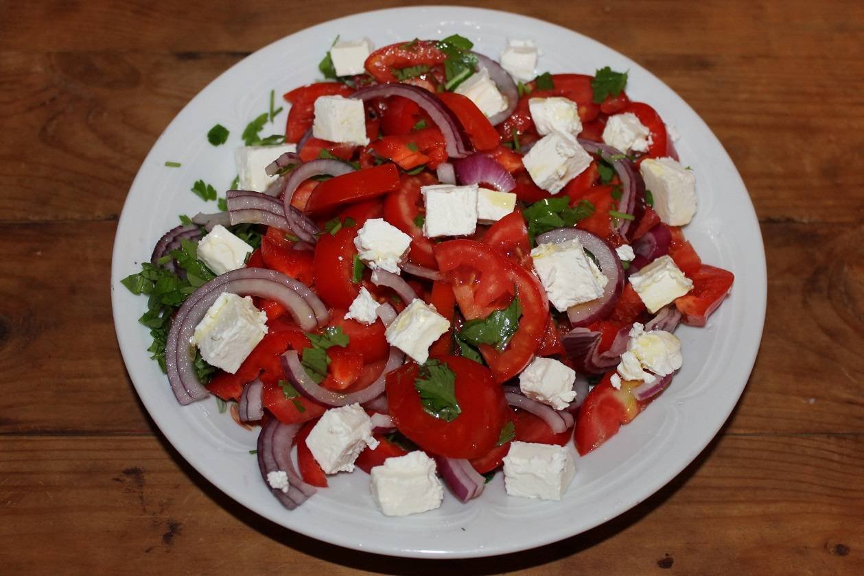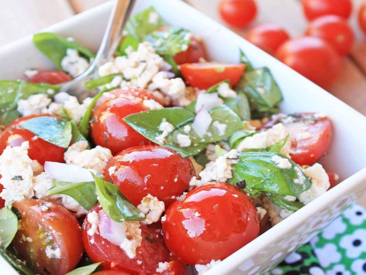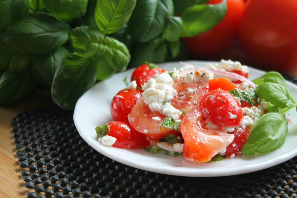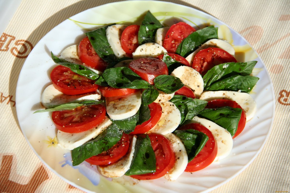 Салат с рукколой помидорами черри .сыром ,курицей.