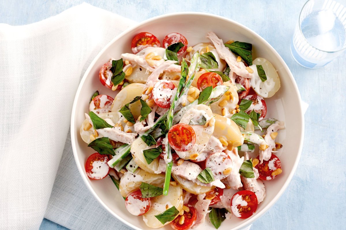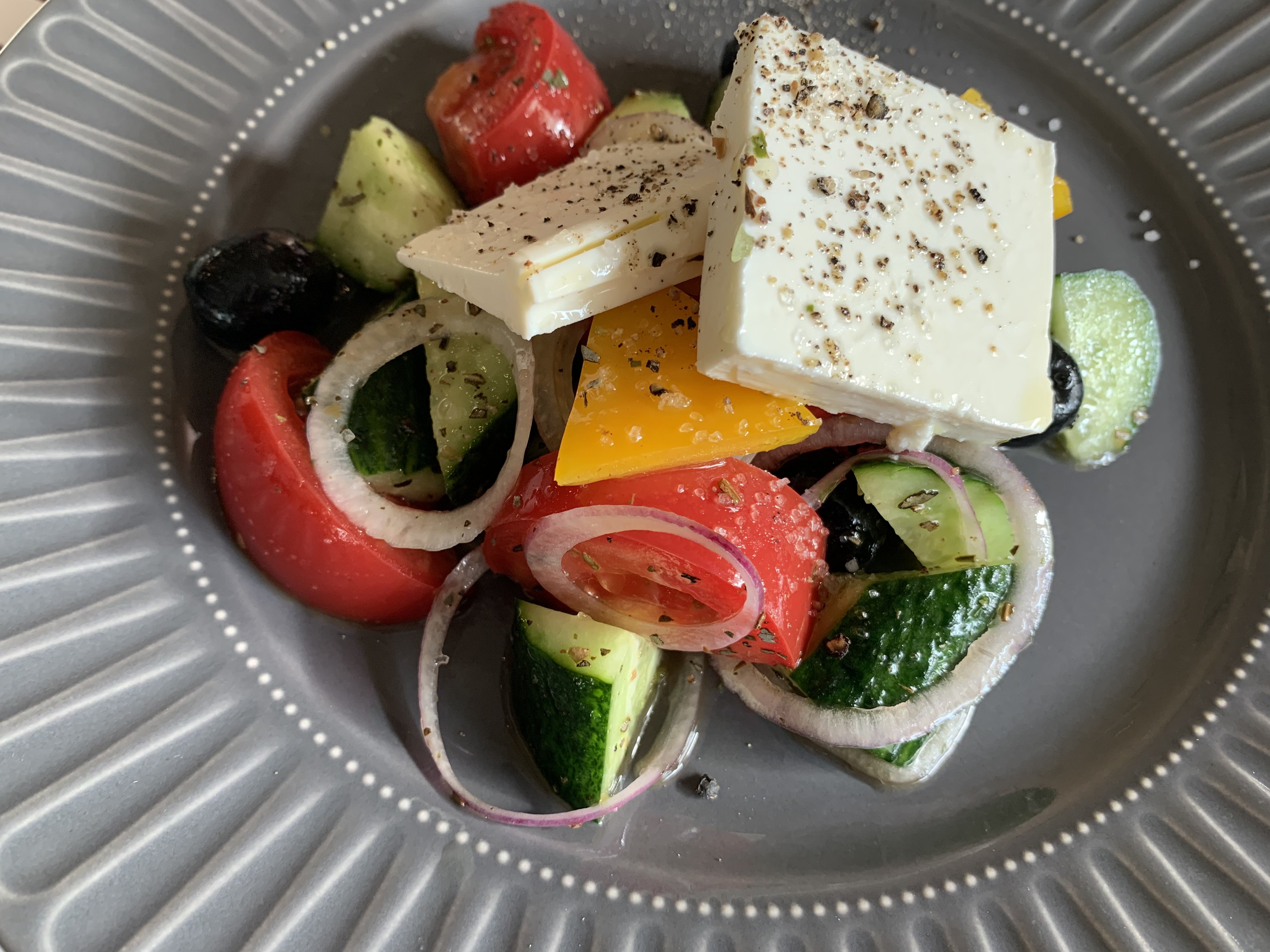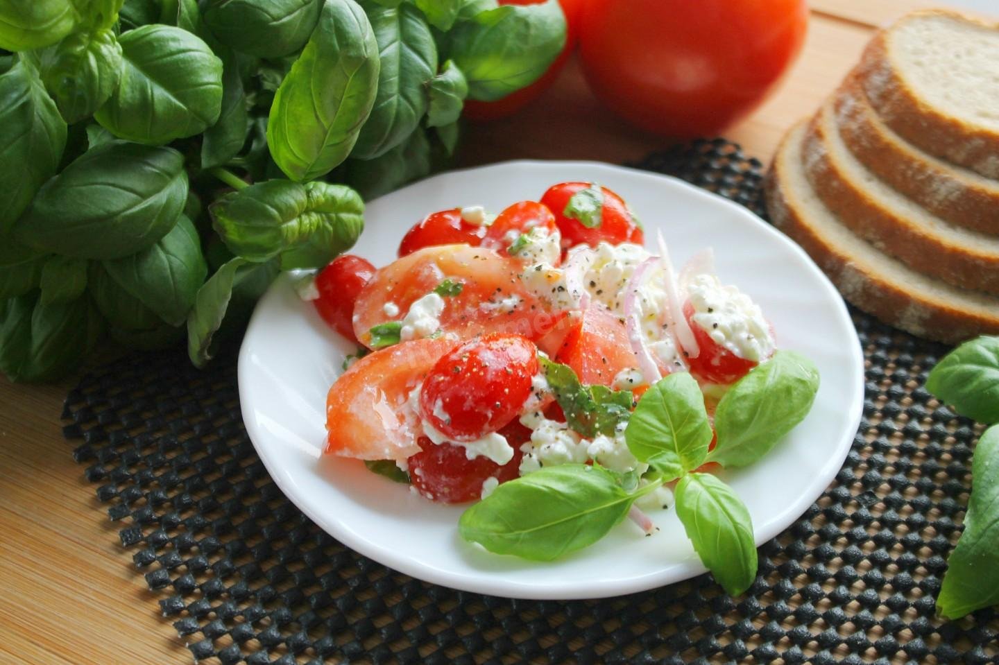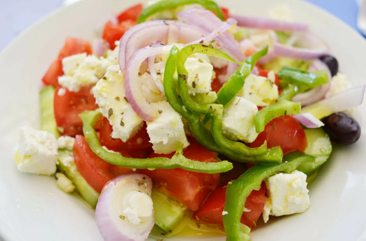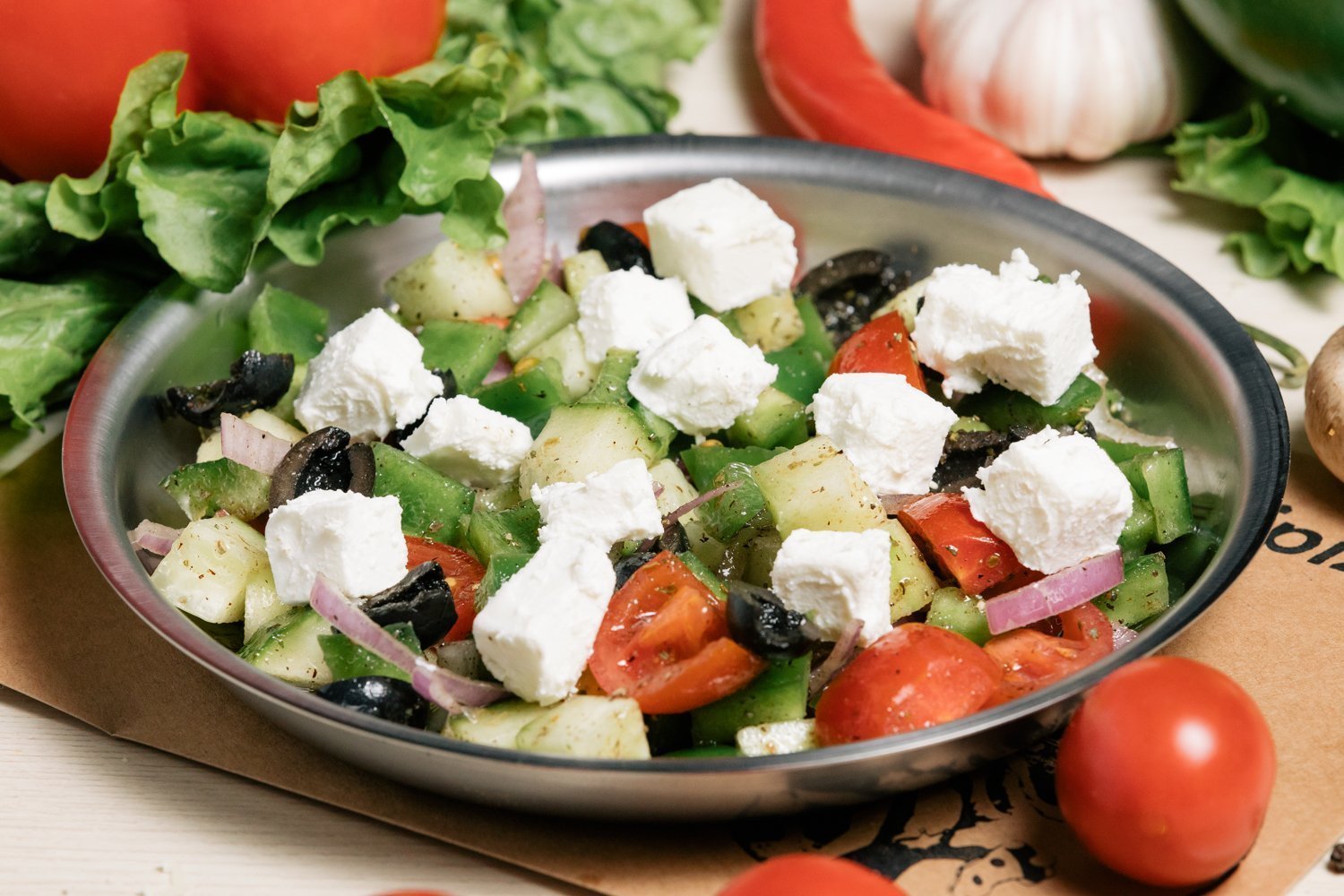 Салат с рукколой помидорами черри .сыром ,курицей.