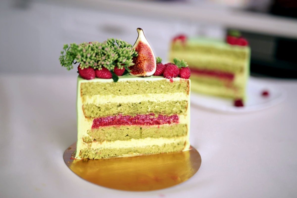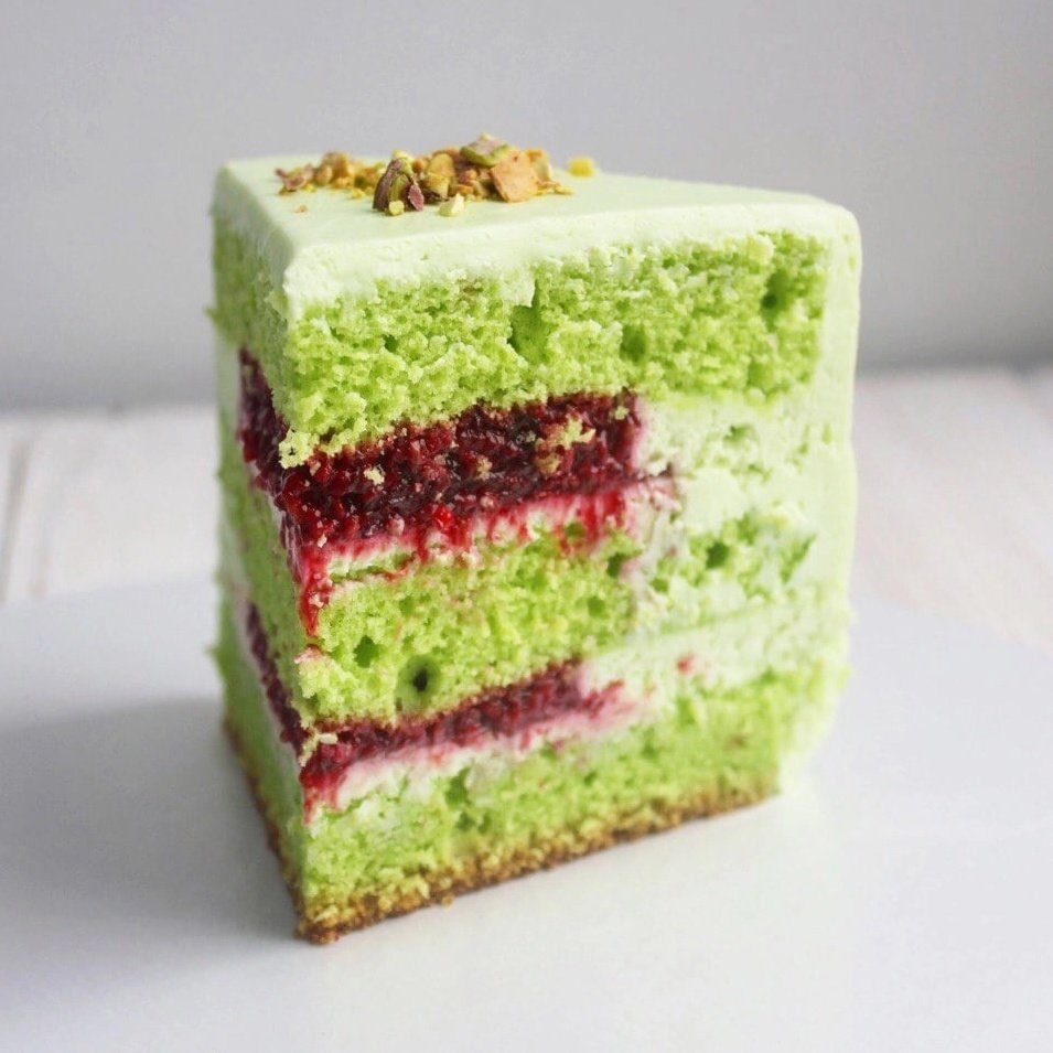 Фисташковый торт с малиновым конфи