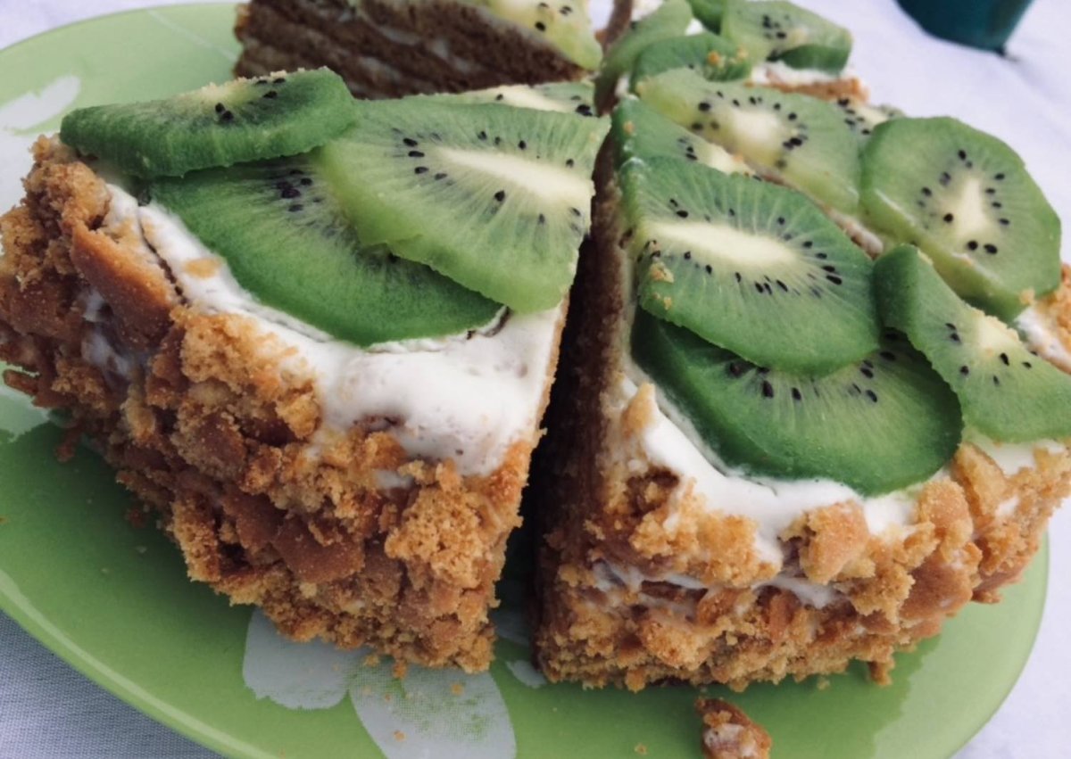 Торт с киви без выпечки