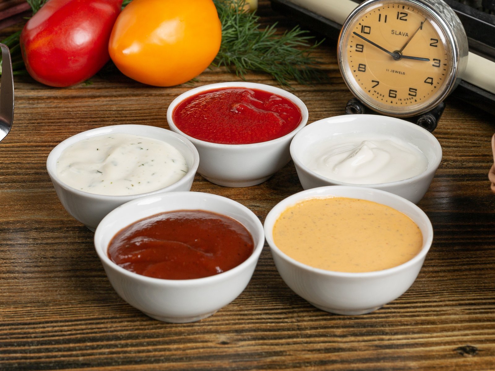 Соусы на деревянном фоне