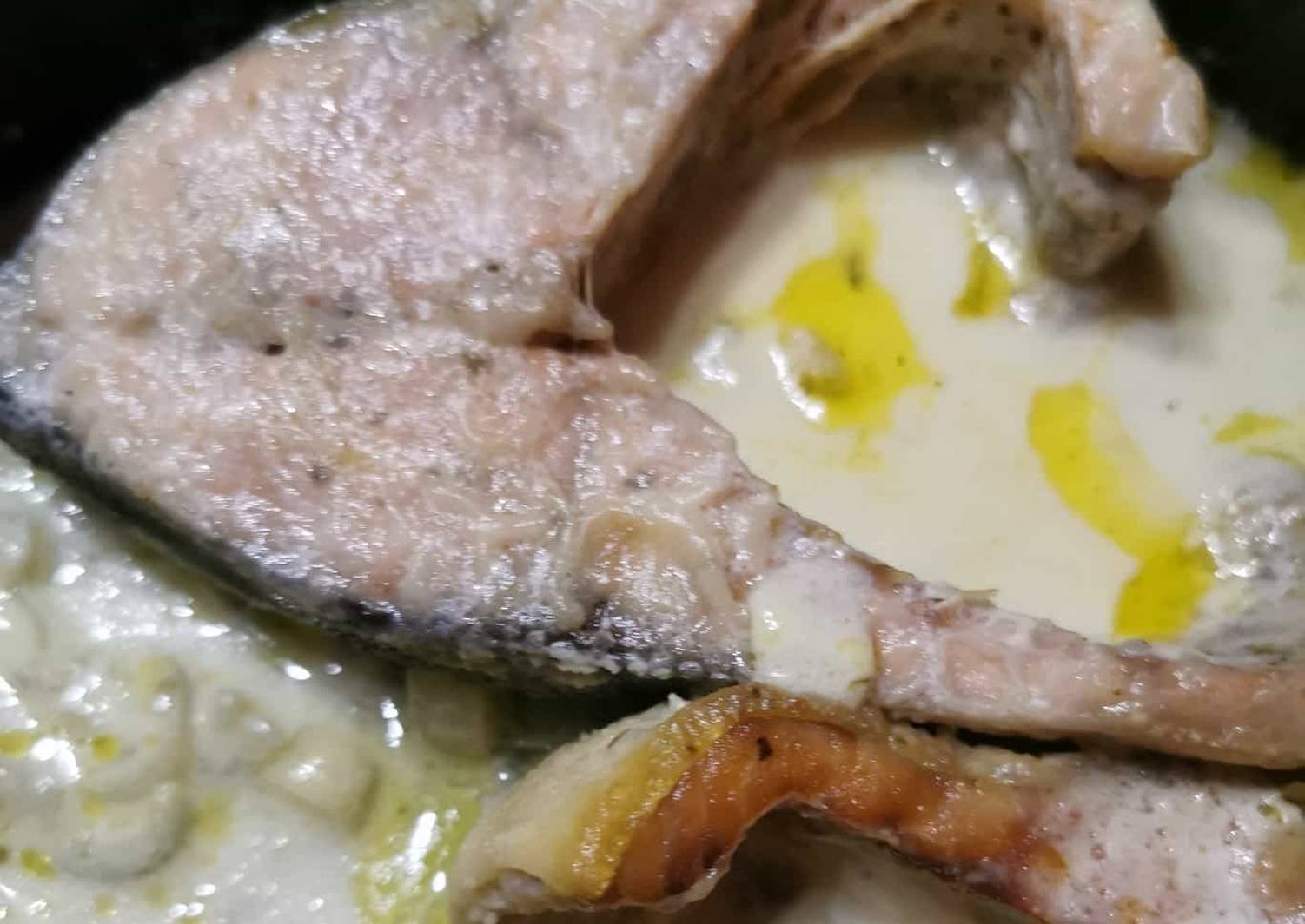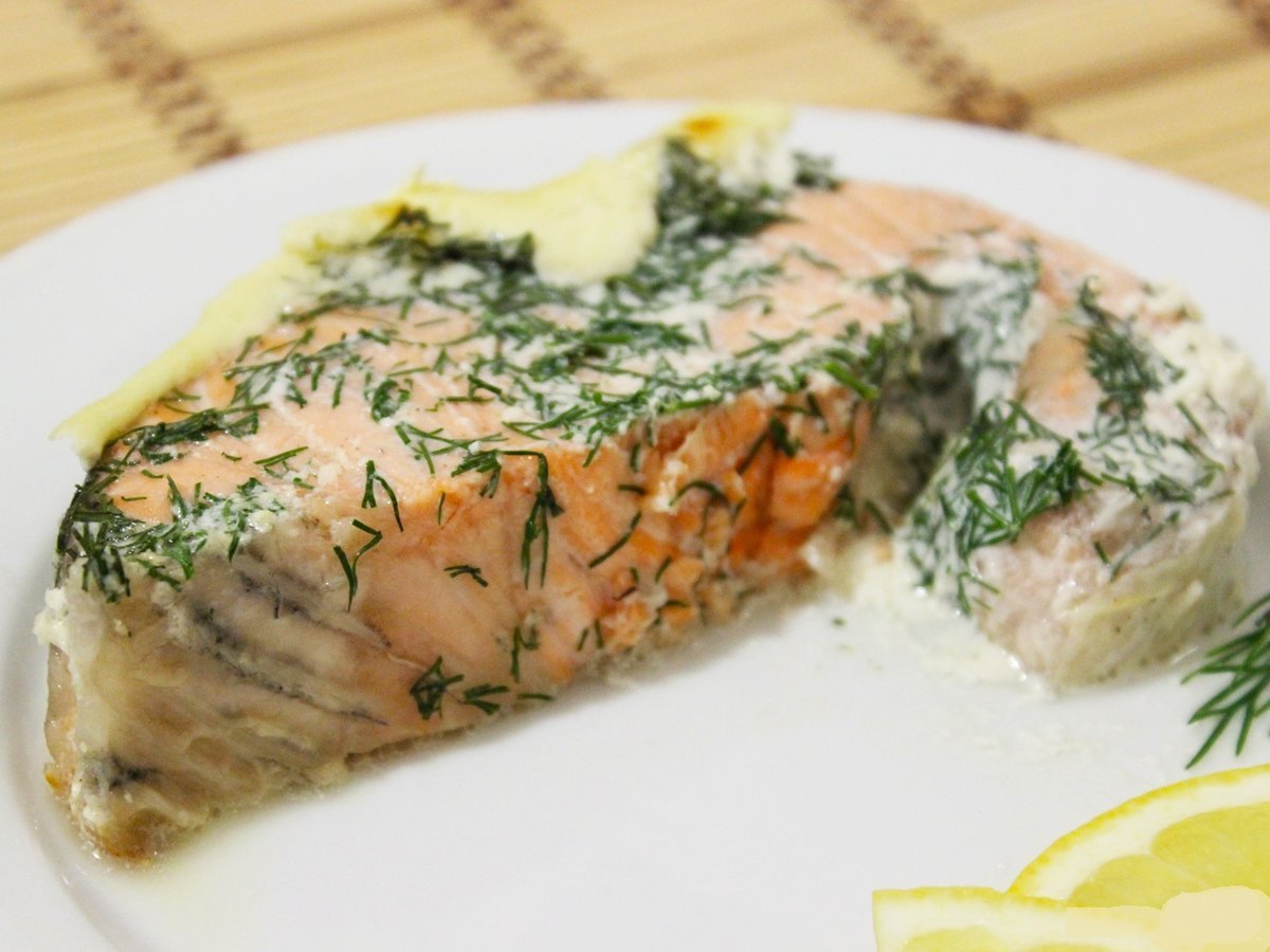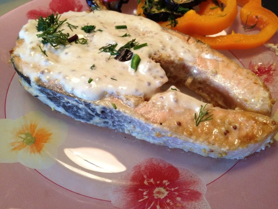 Стейк из лосося в сливочном соусе