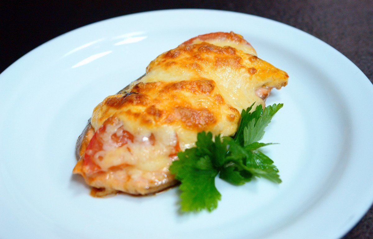 Горбуша, запеченная в сметанно-грибном соусе