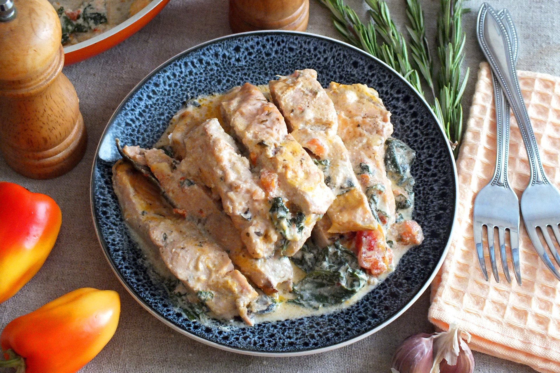 Лосось со шпинатом в сливочном соусе