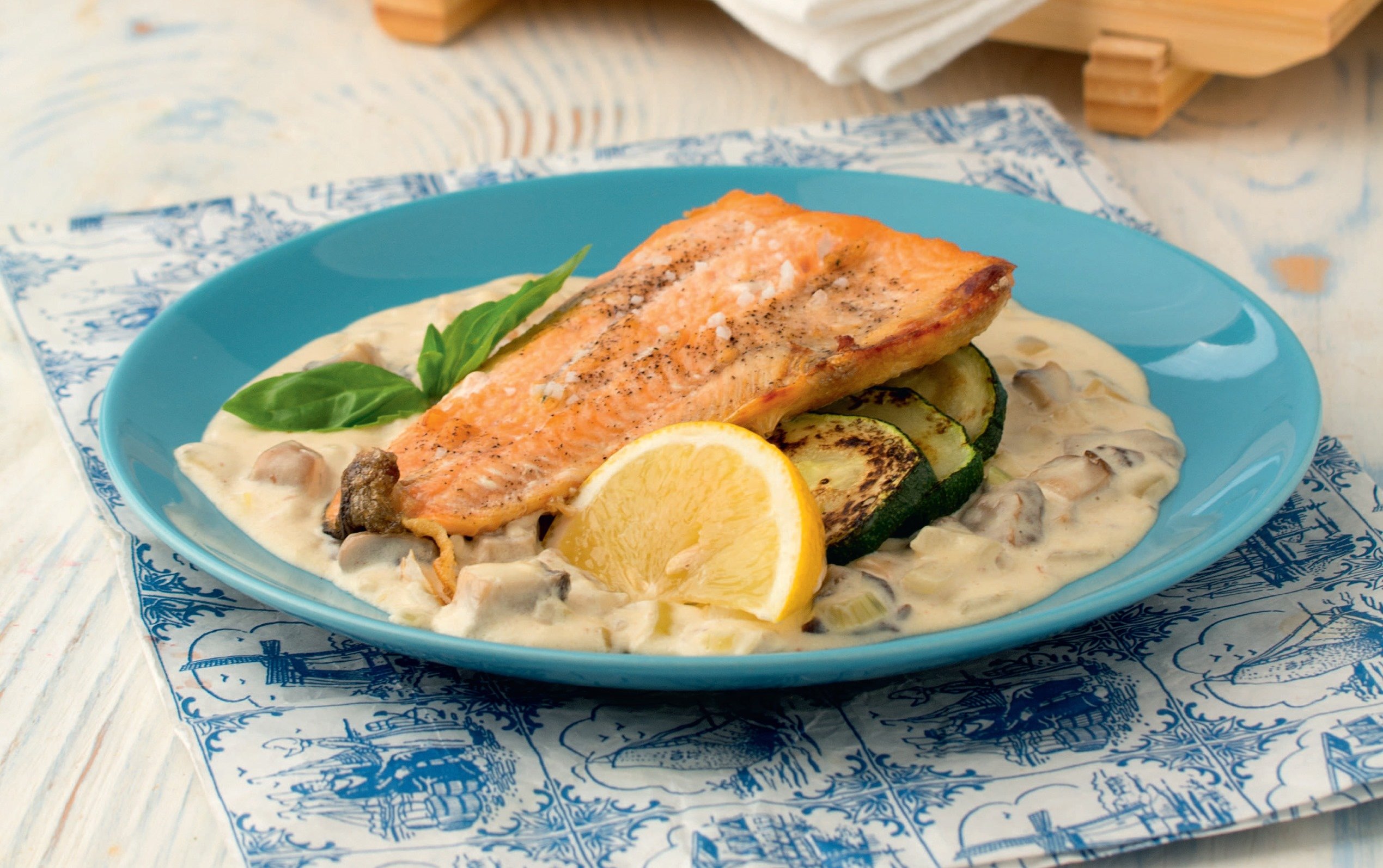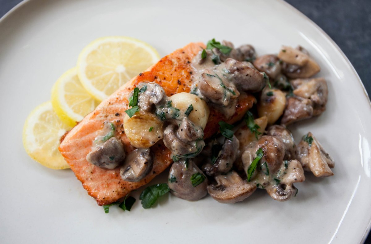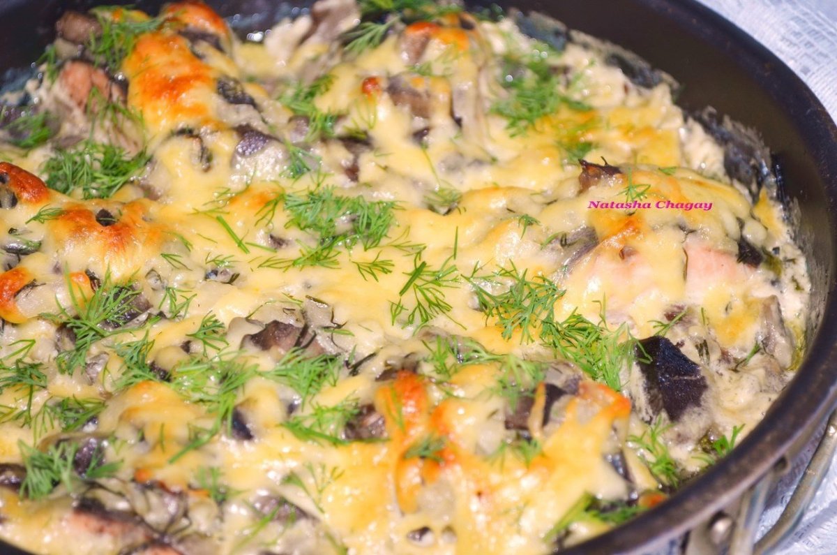 Лосось с грибами