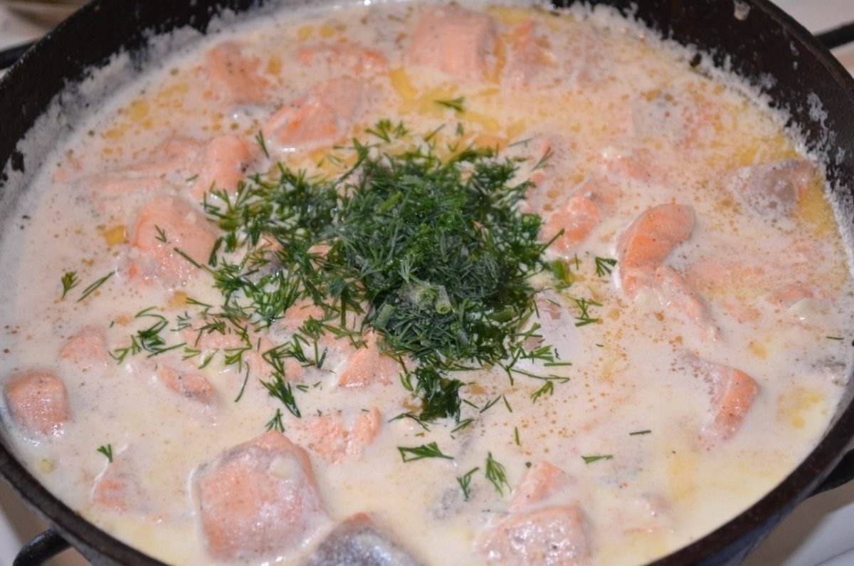 Красная рыба кусочками в сливочном соусе