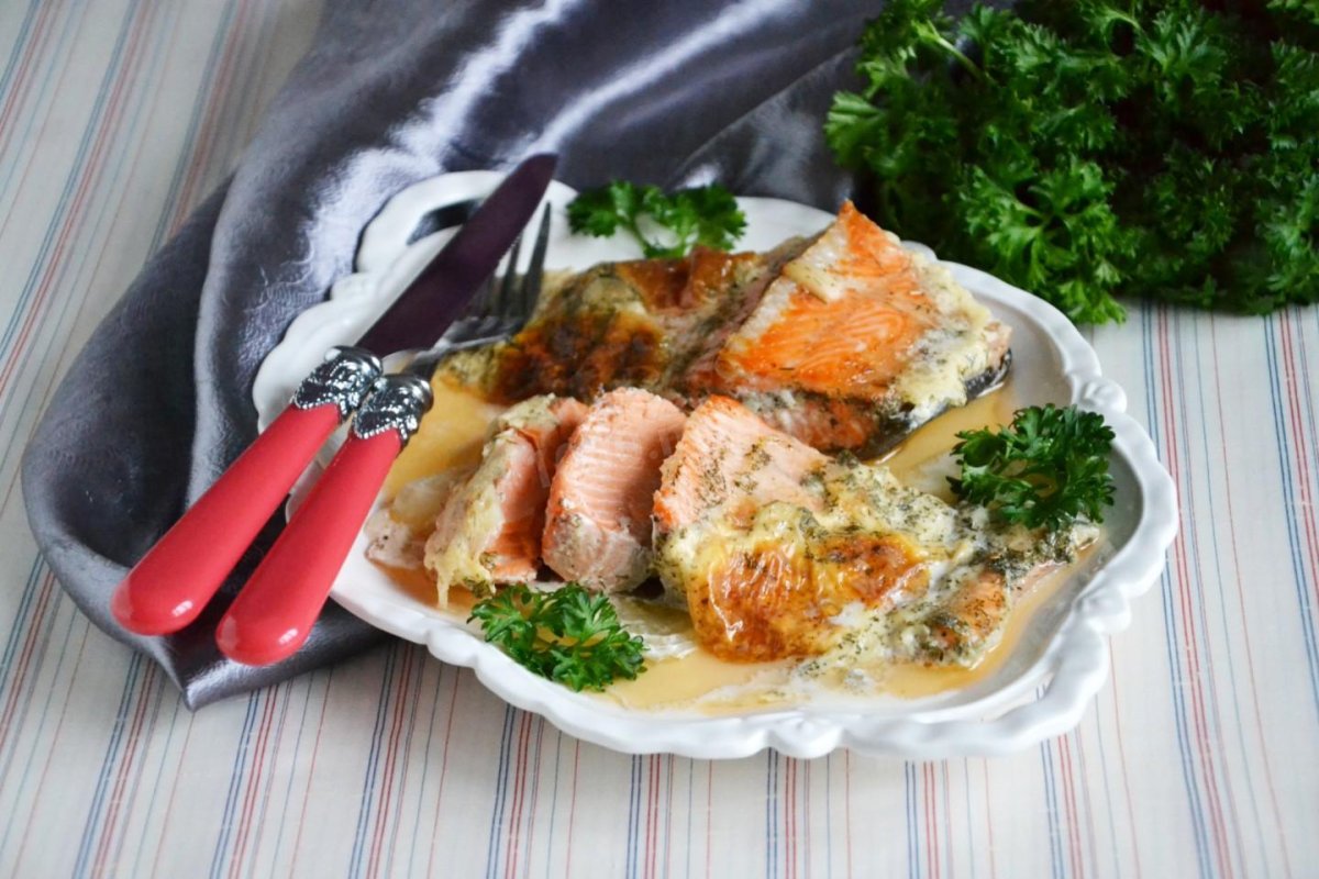 Красная рыба в духовке в сливочном соусе