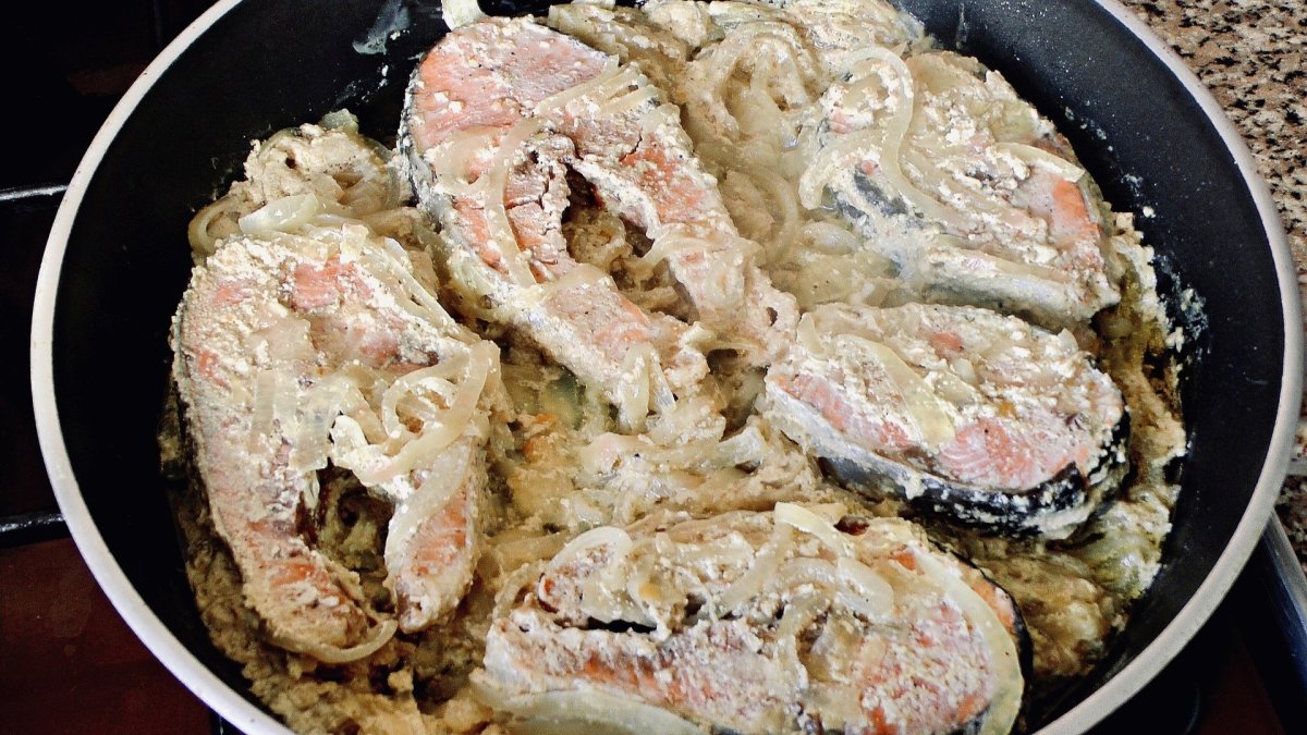 Горбуша в сметанном соусе на сковороде