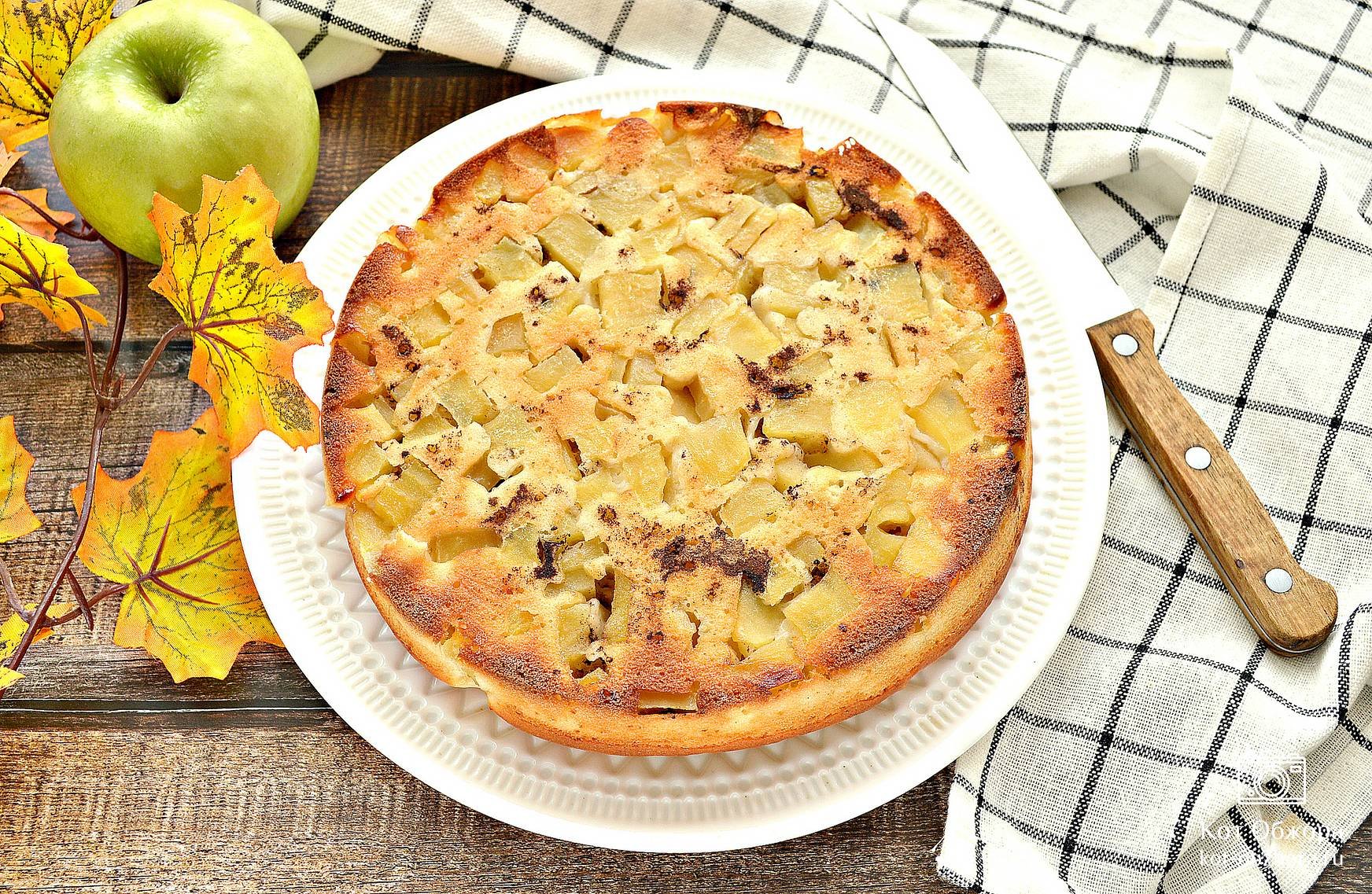 Заливной яблочный пирог на кефире