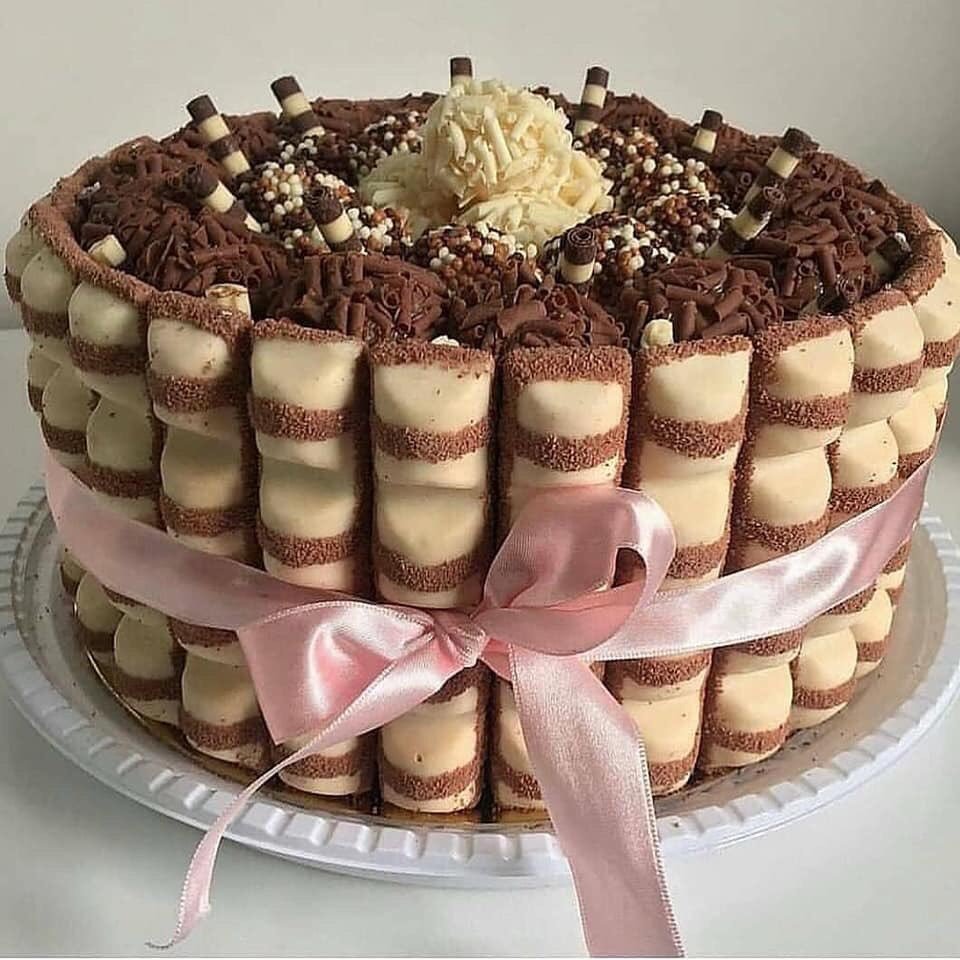 Украшение торта вафельными трубочками
