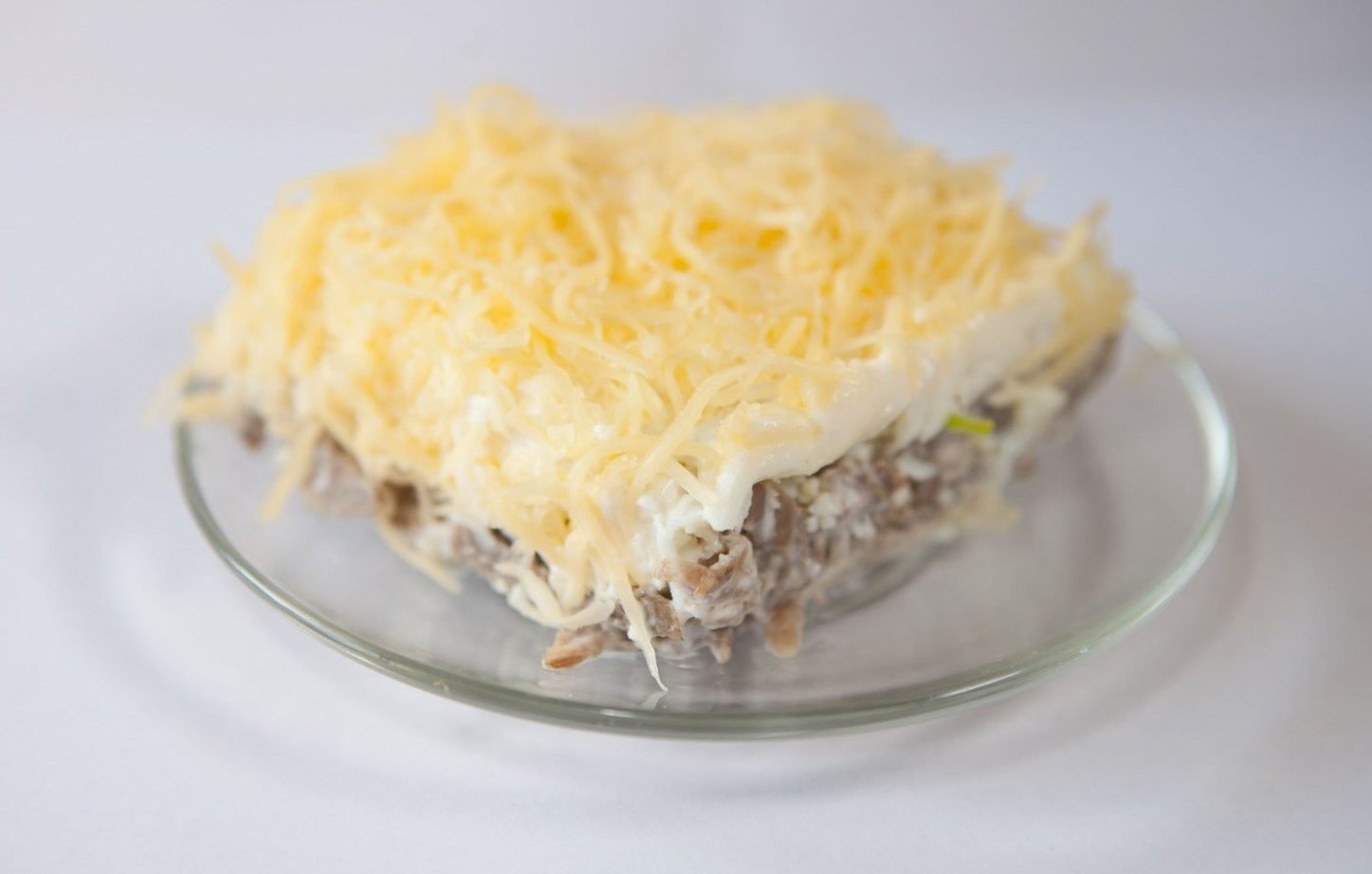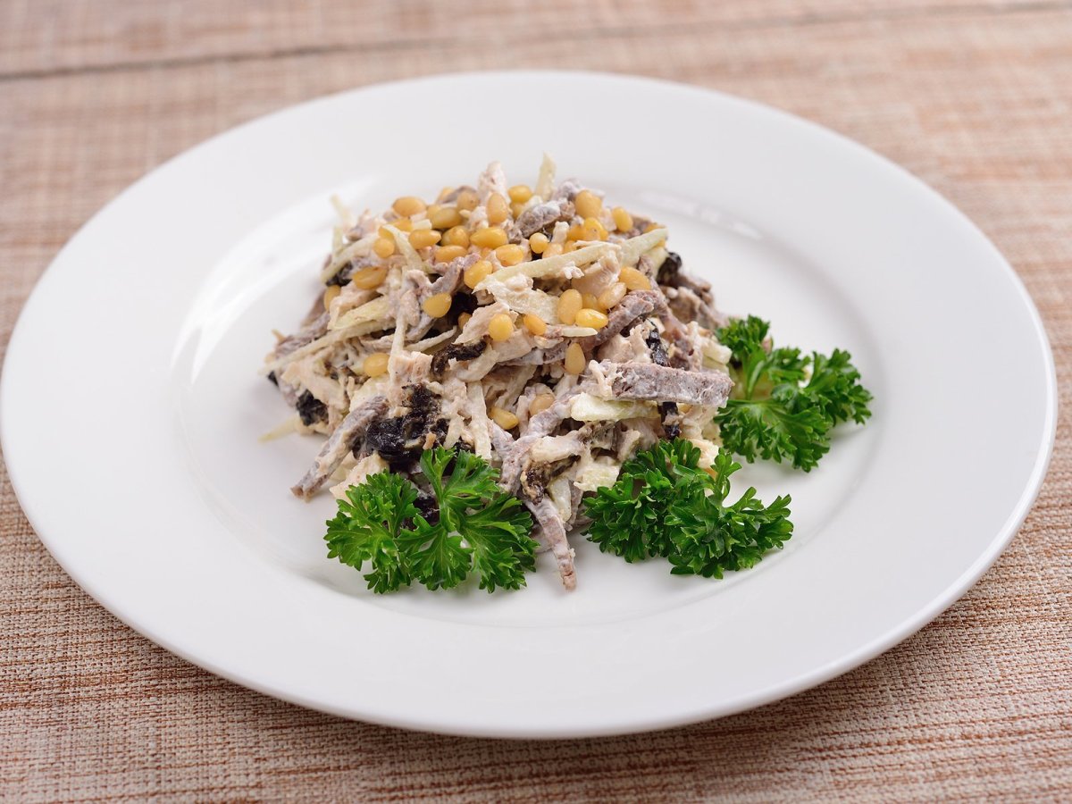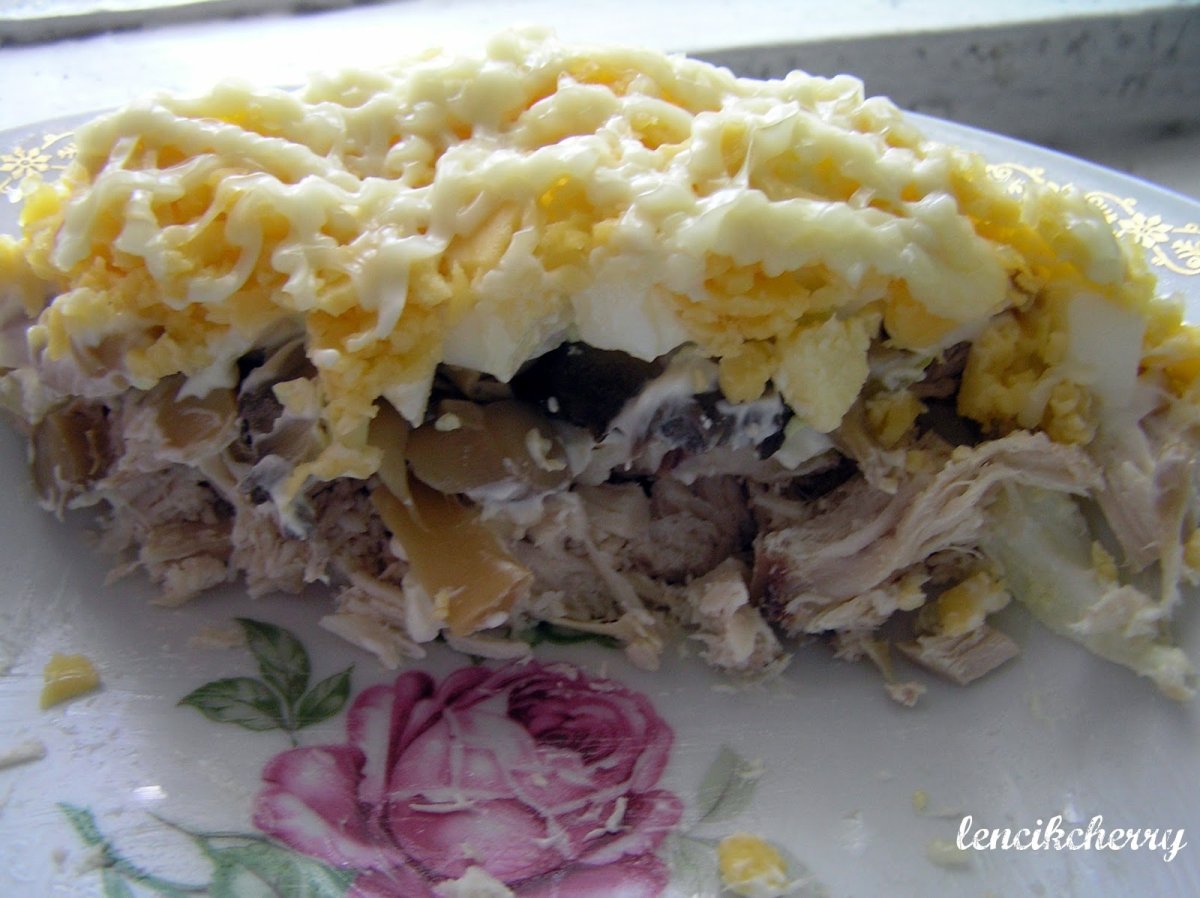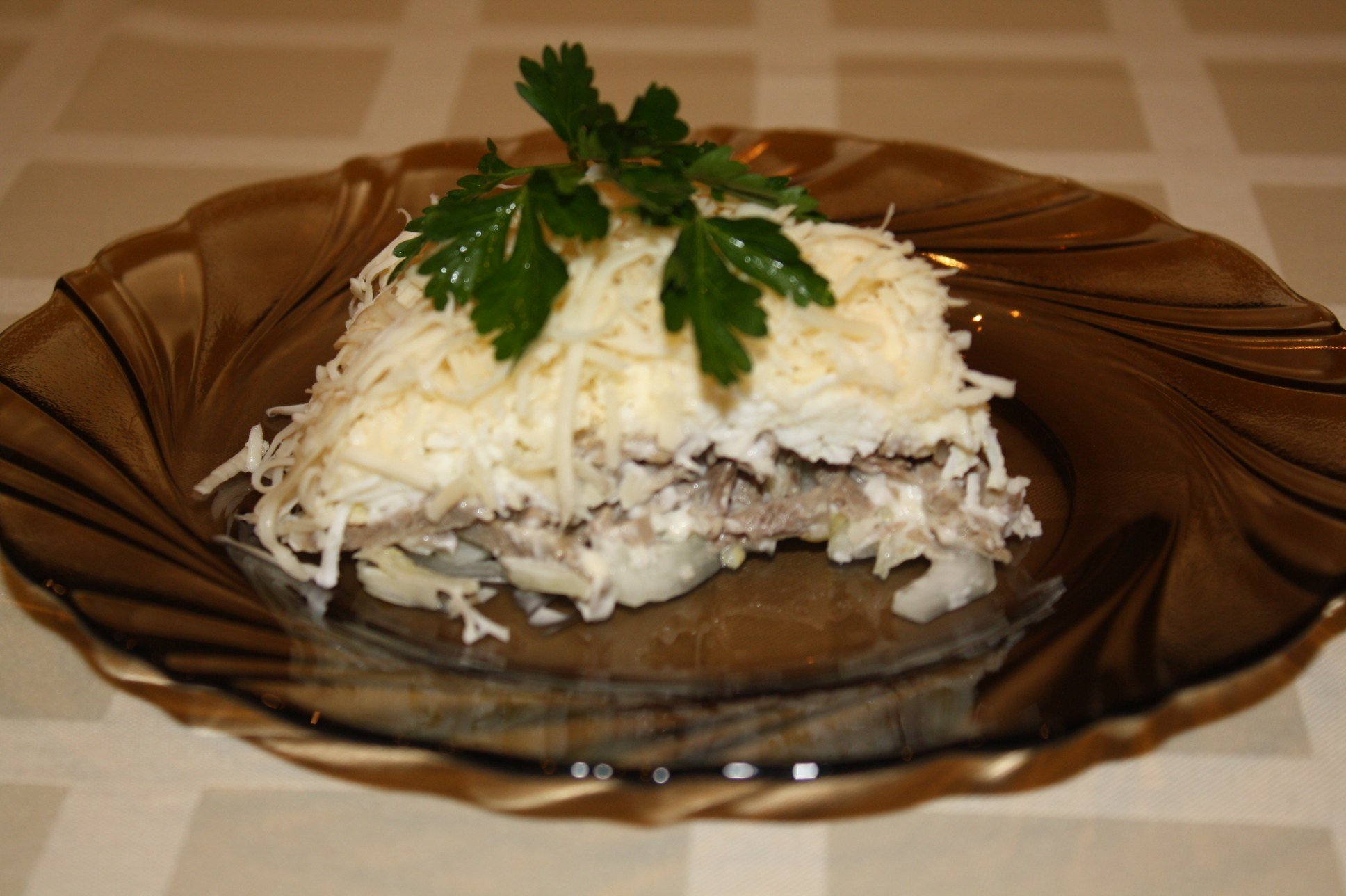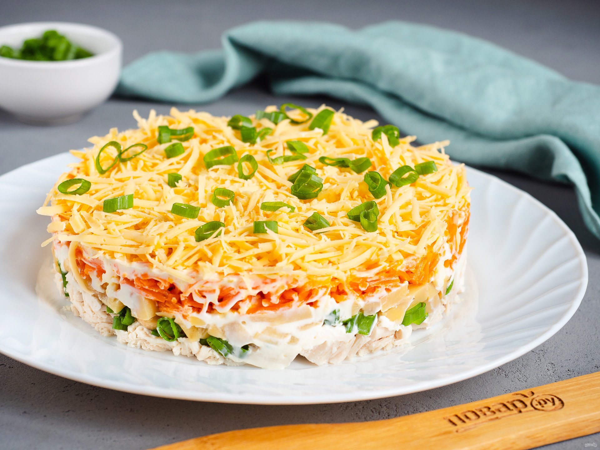Салат мужские слёзы с курицей и грибами с корейской морковью
