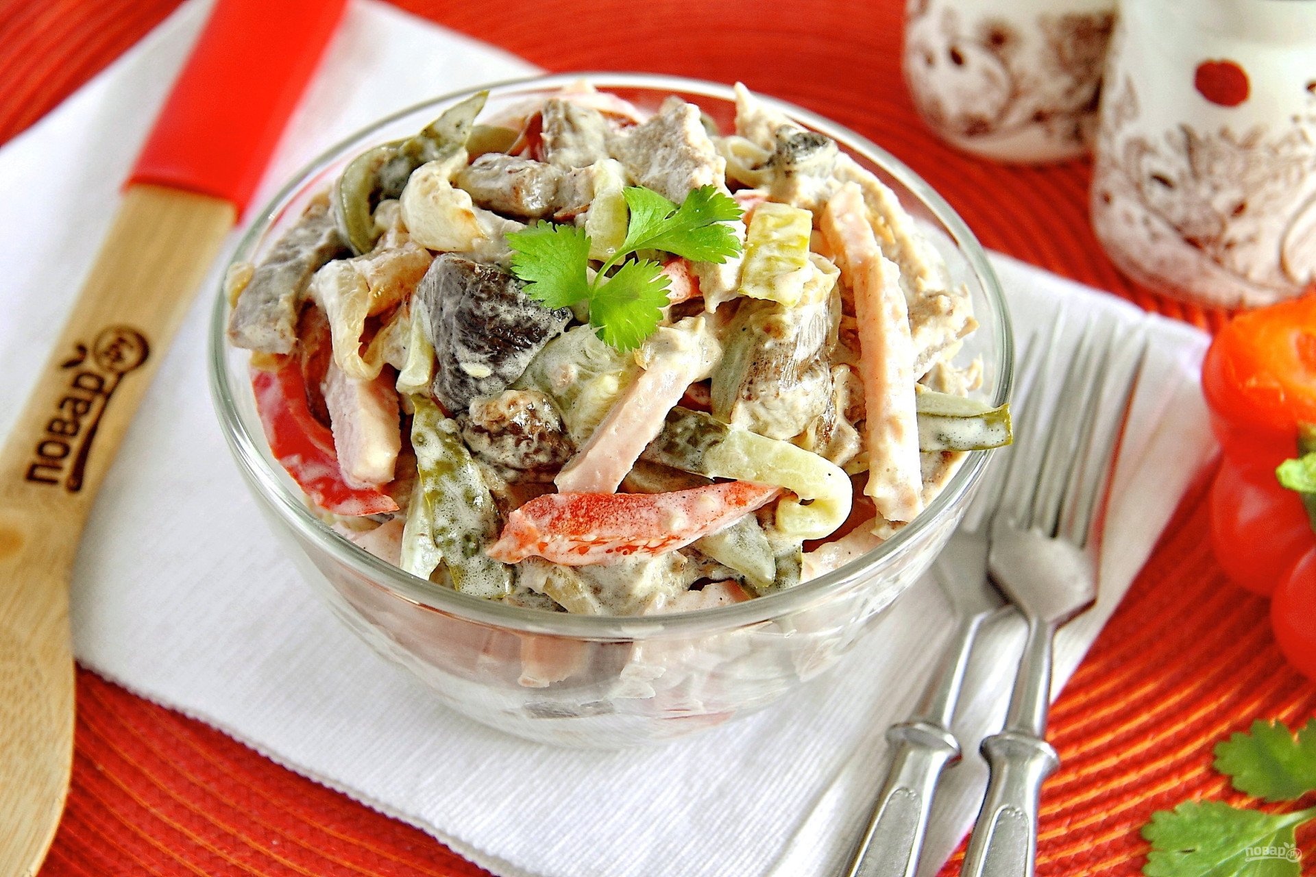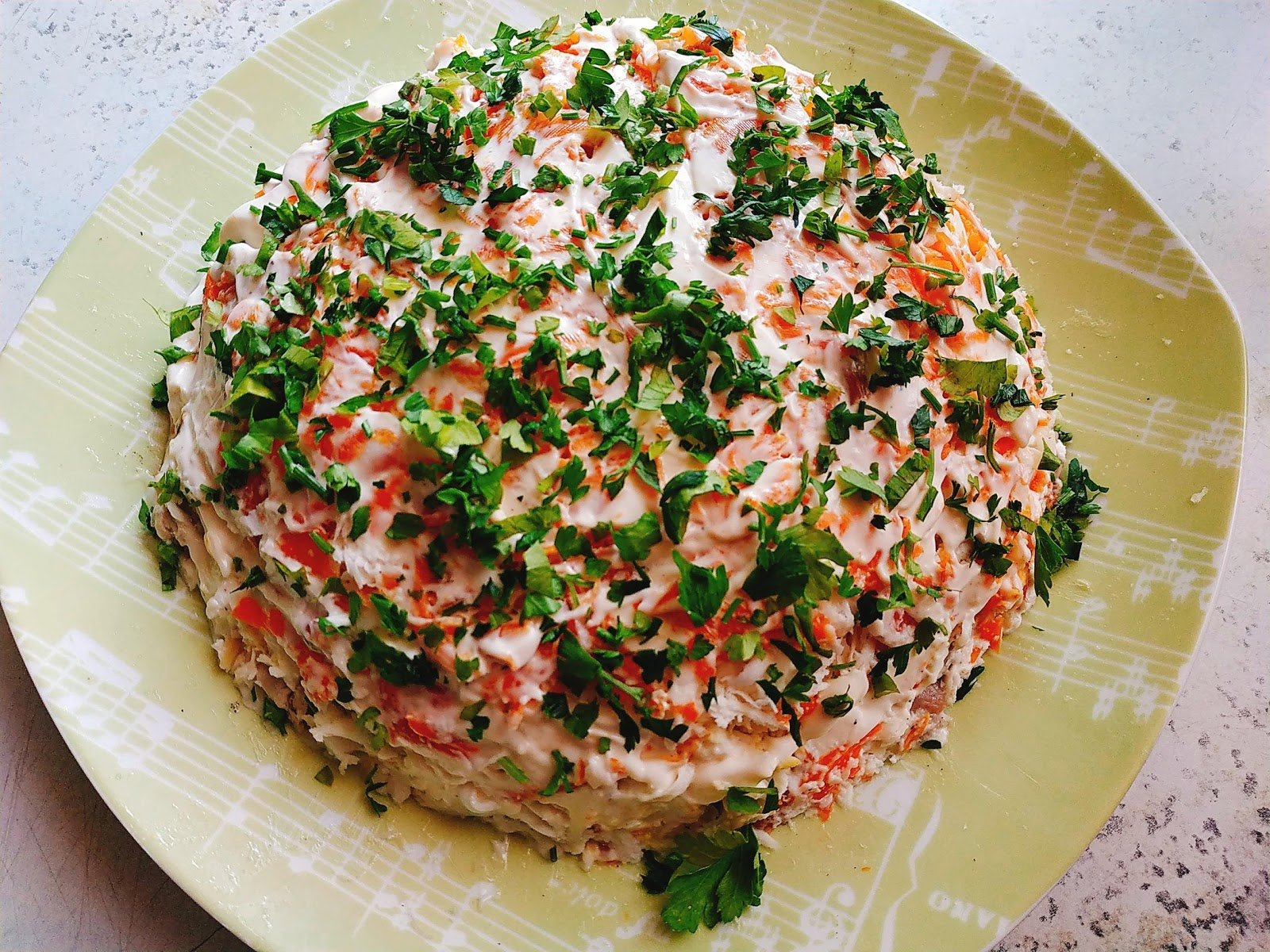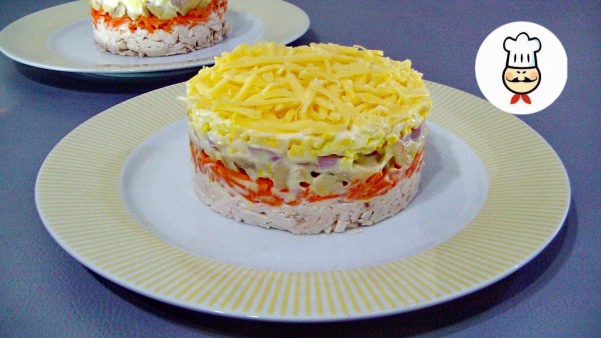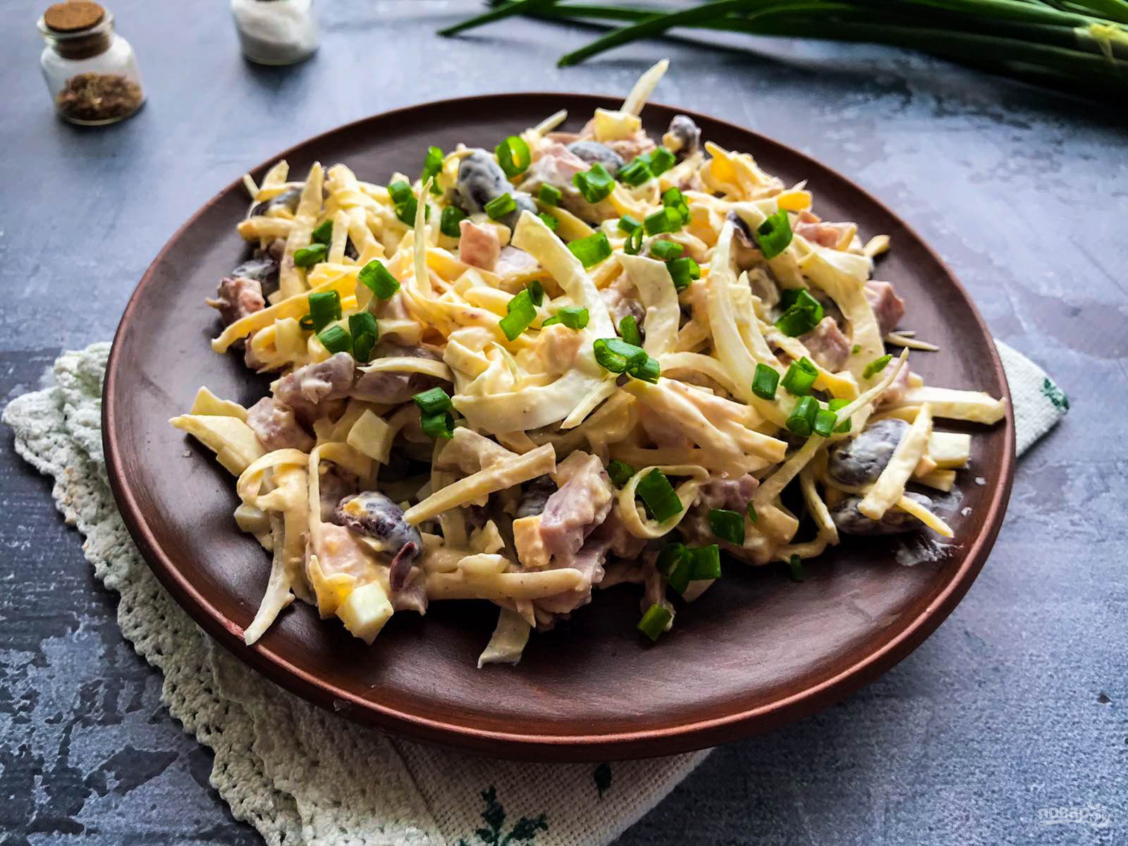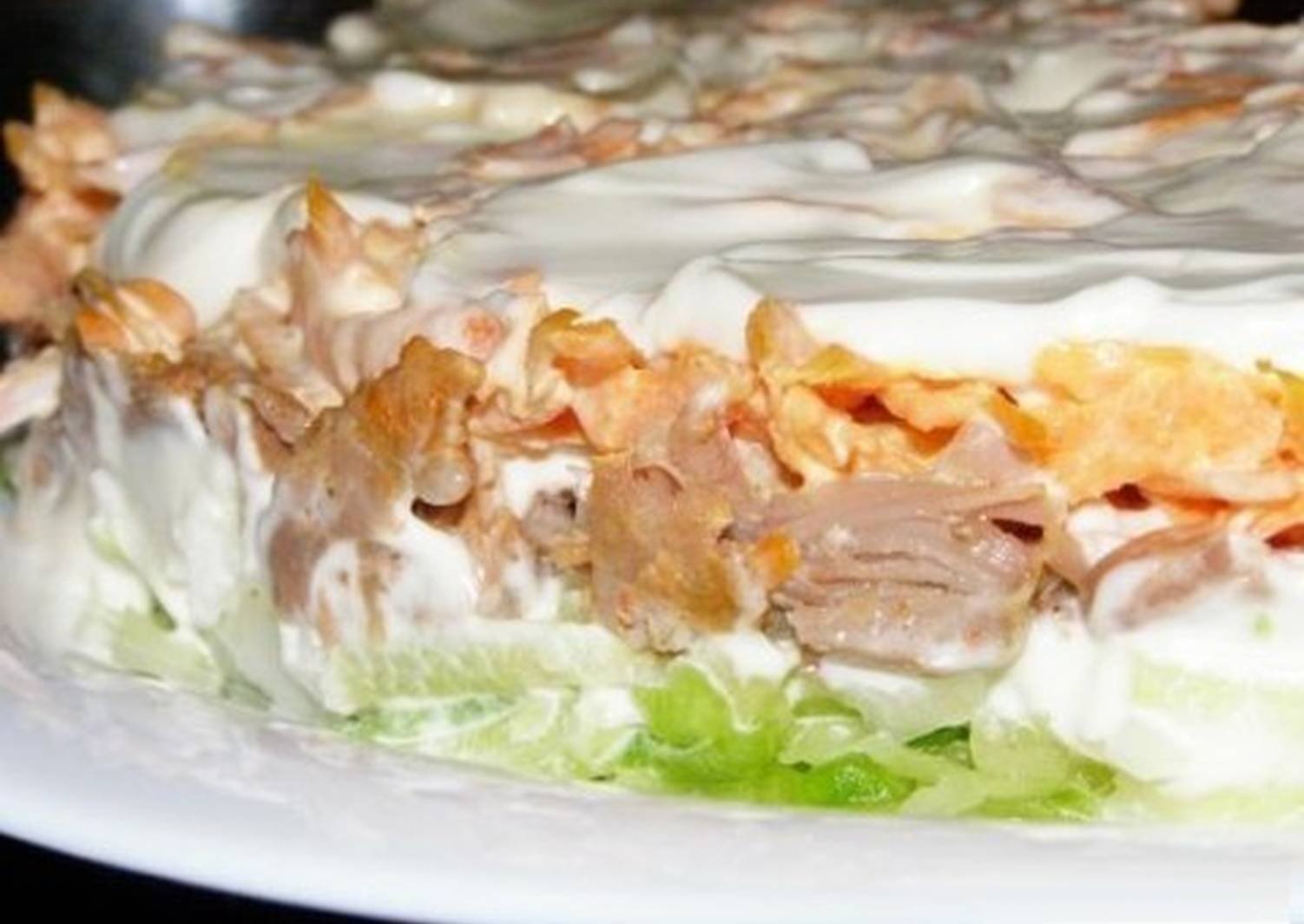 Салат мужские слёзы с курицей и грибами с корейской морковью