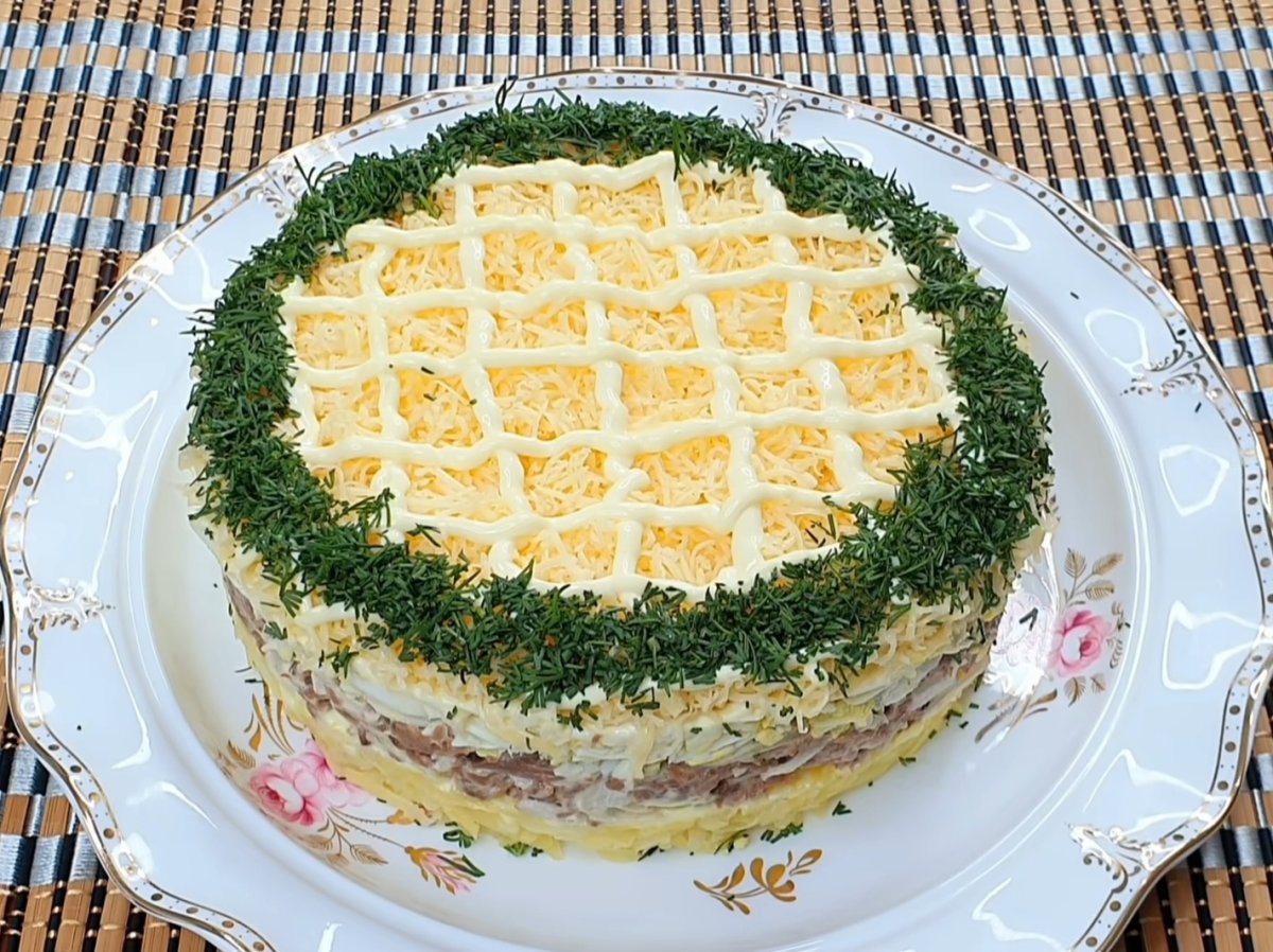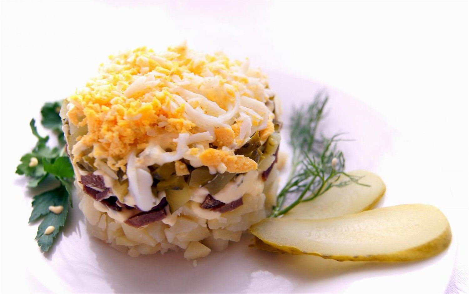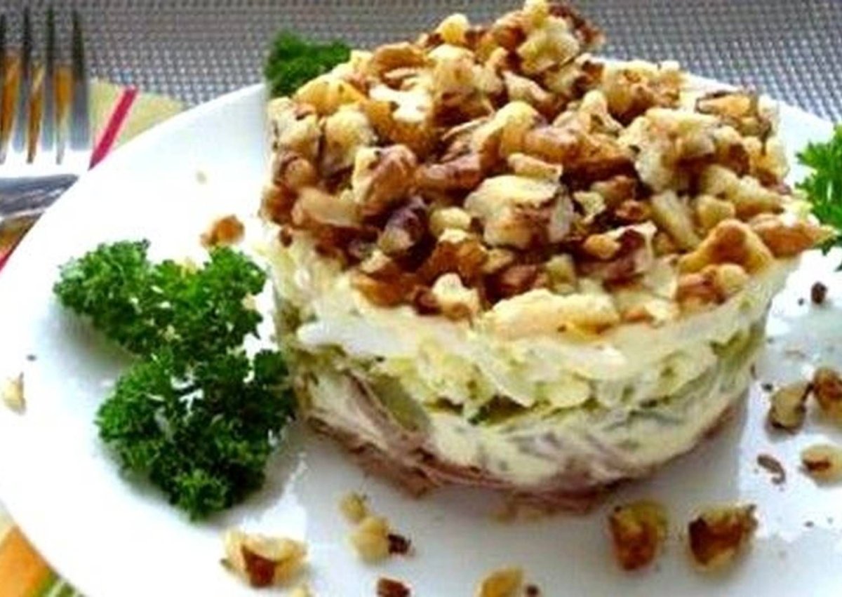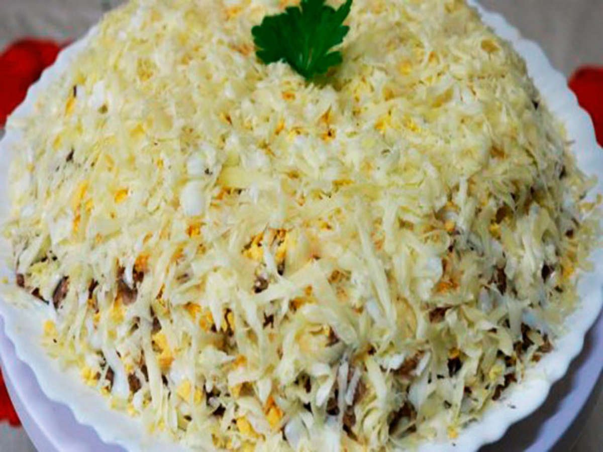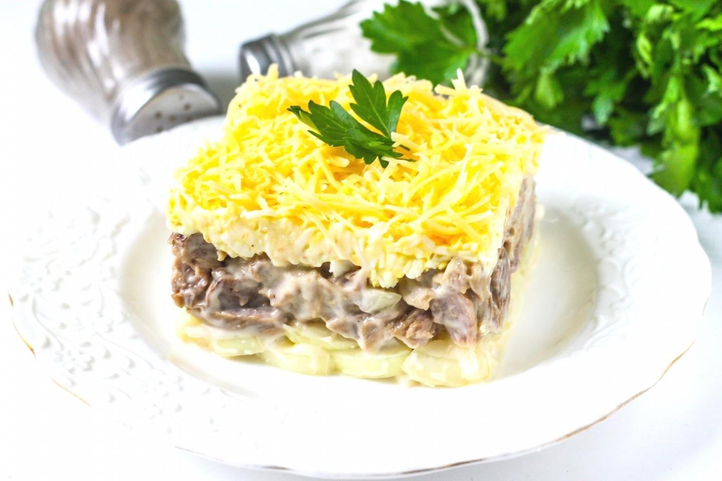 Салат мужские слёзы с курицей и грибами с корейской морковью