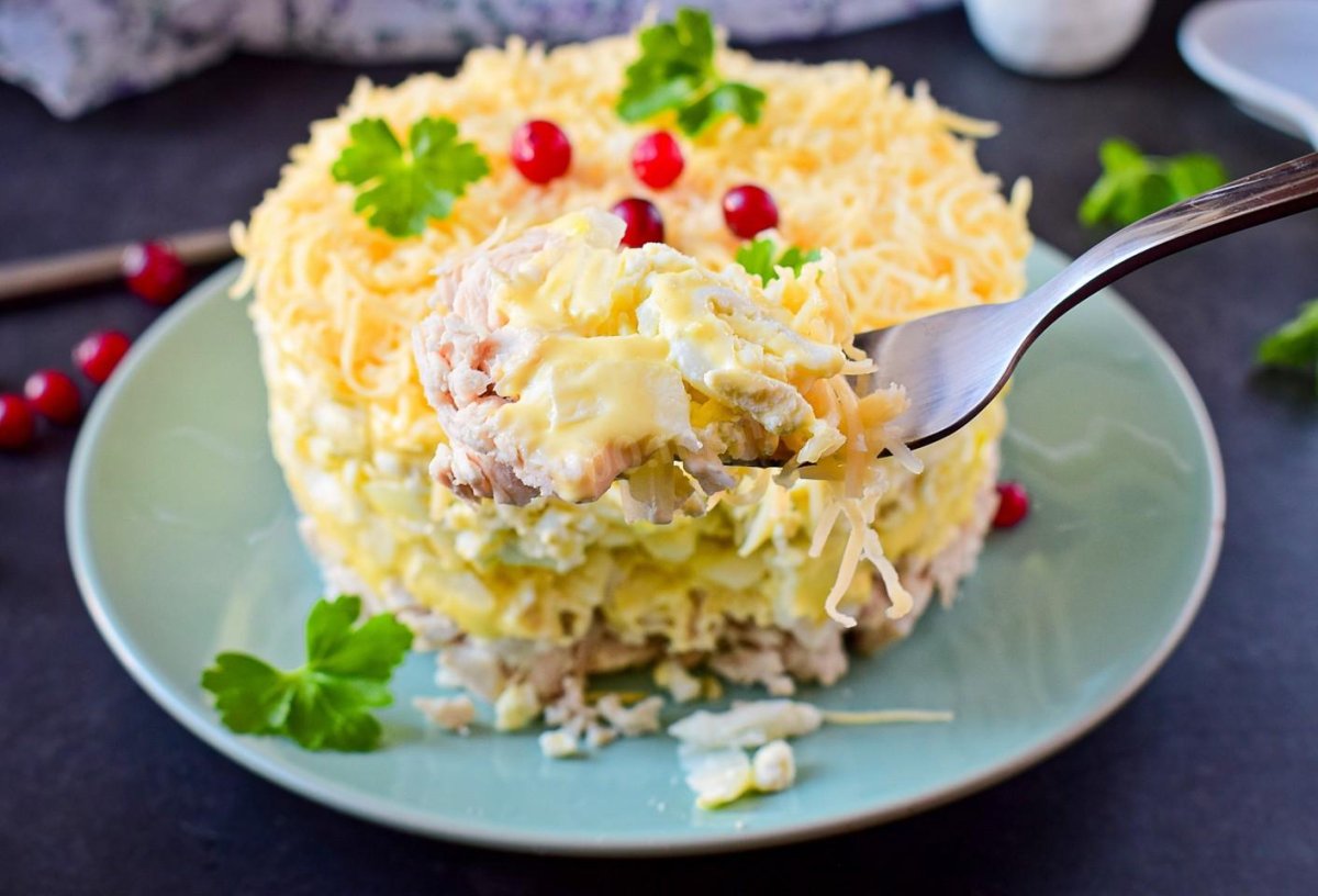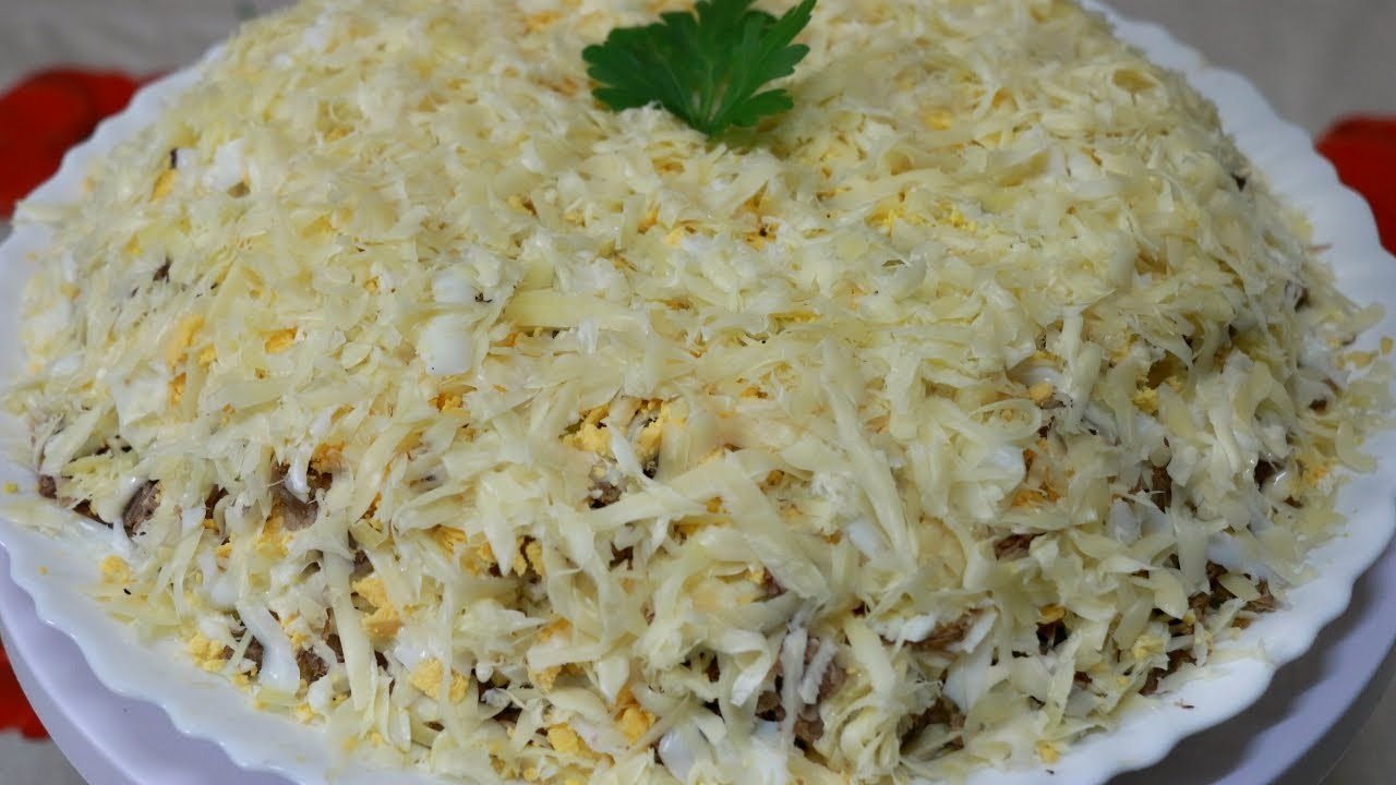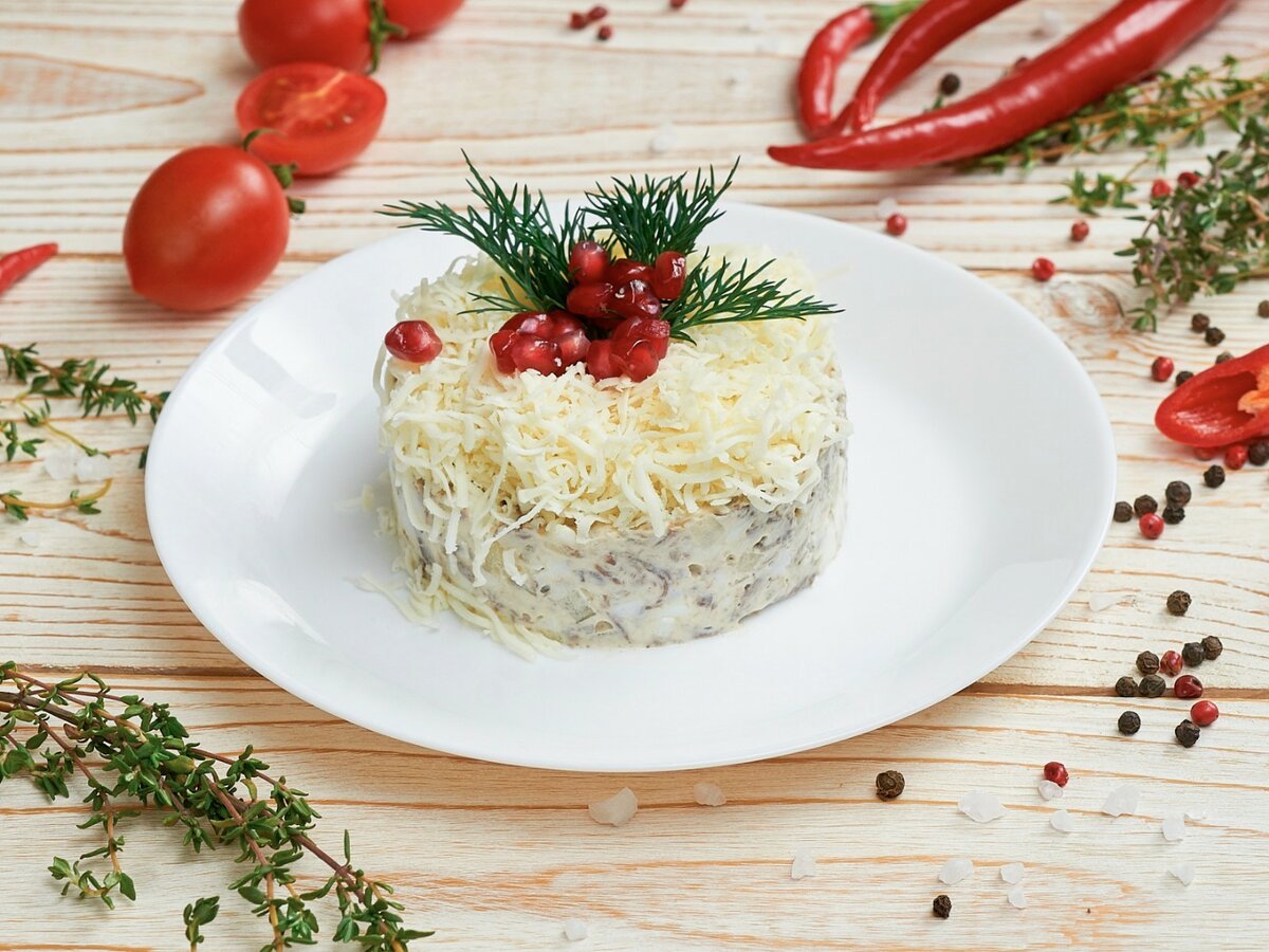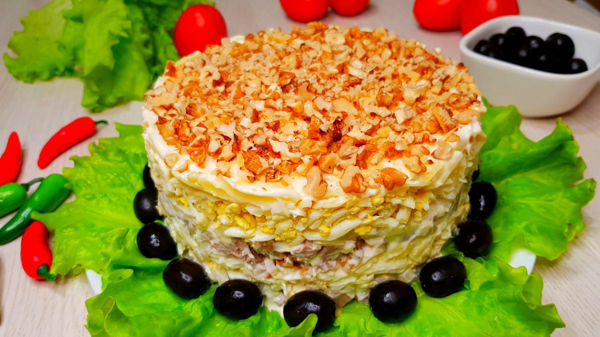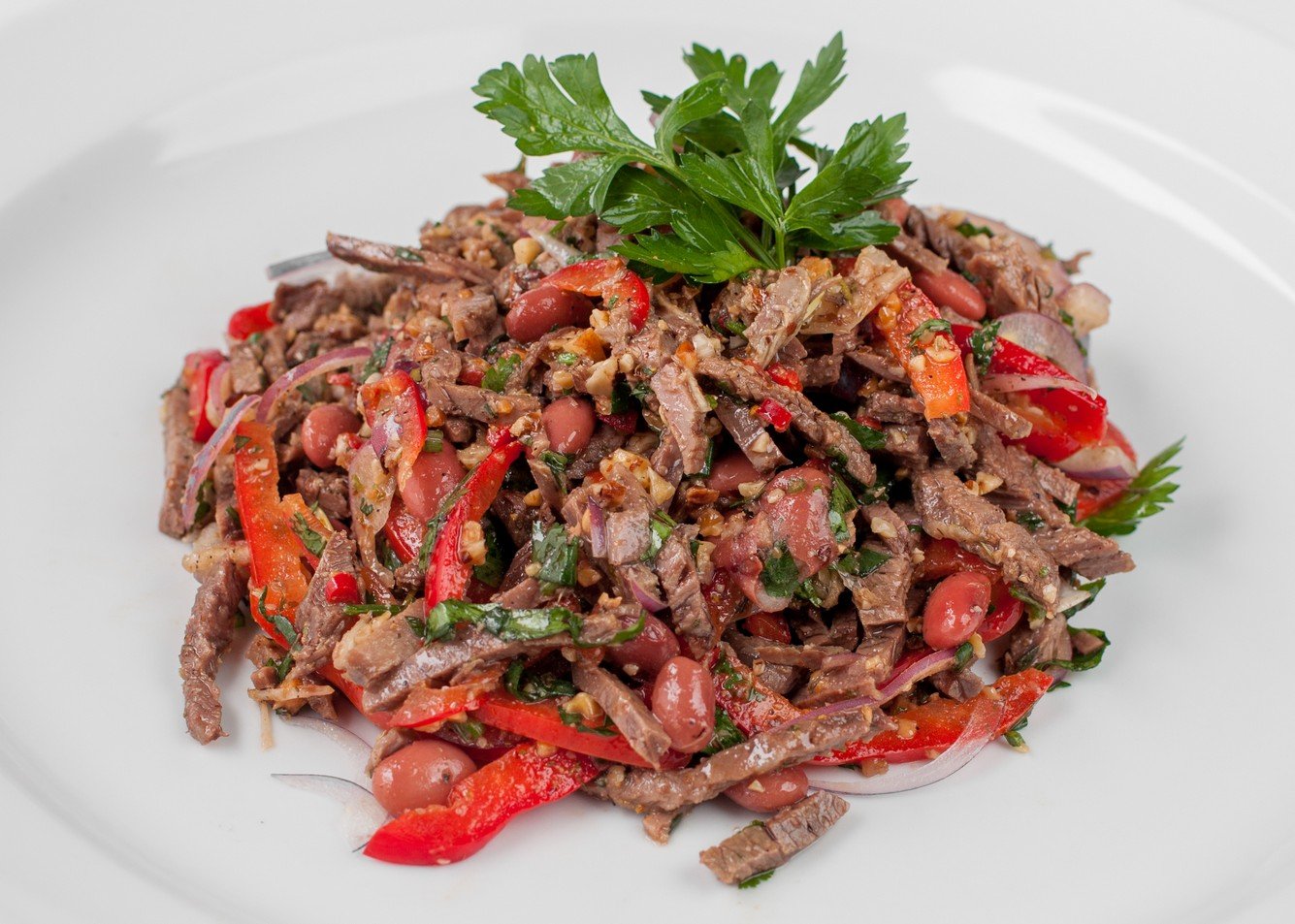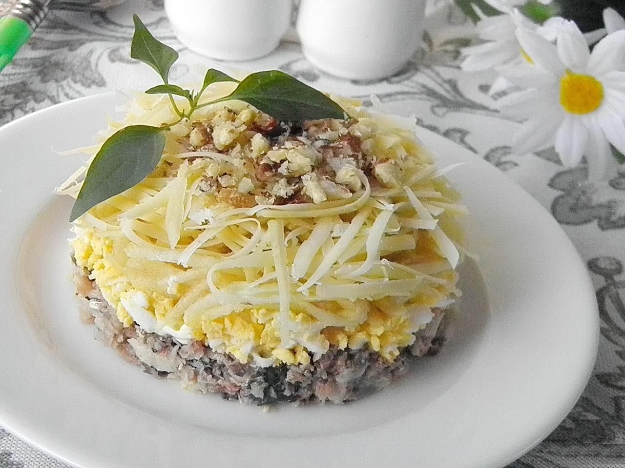 Салат мужские слёзы с курицей и грибами с корейской морковью