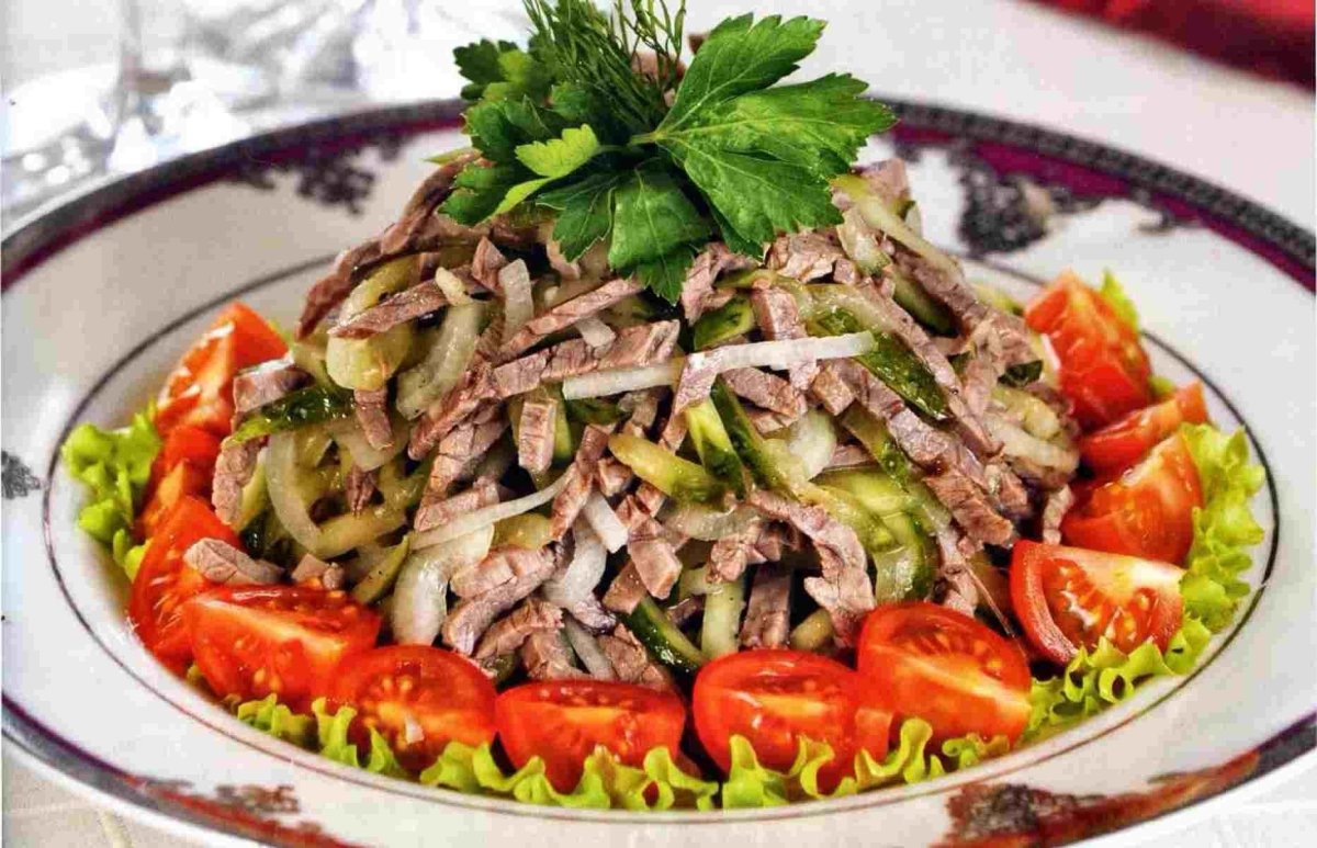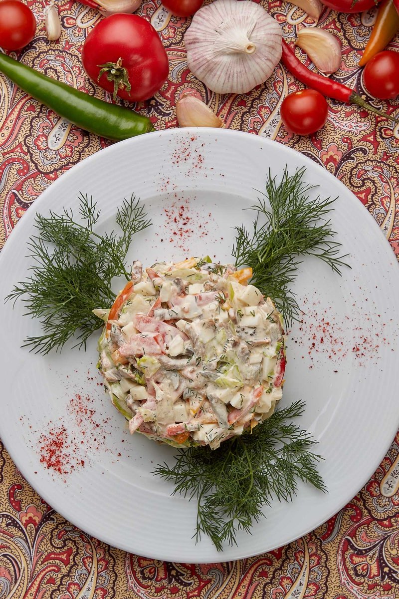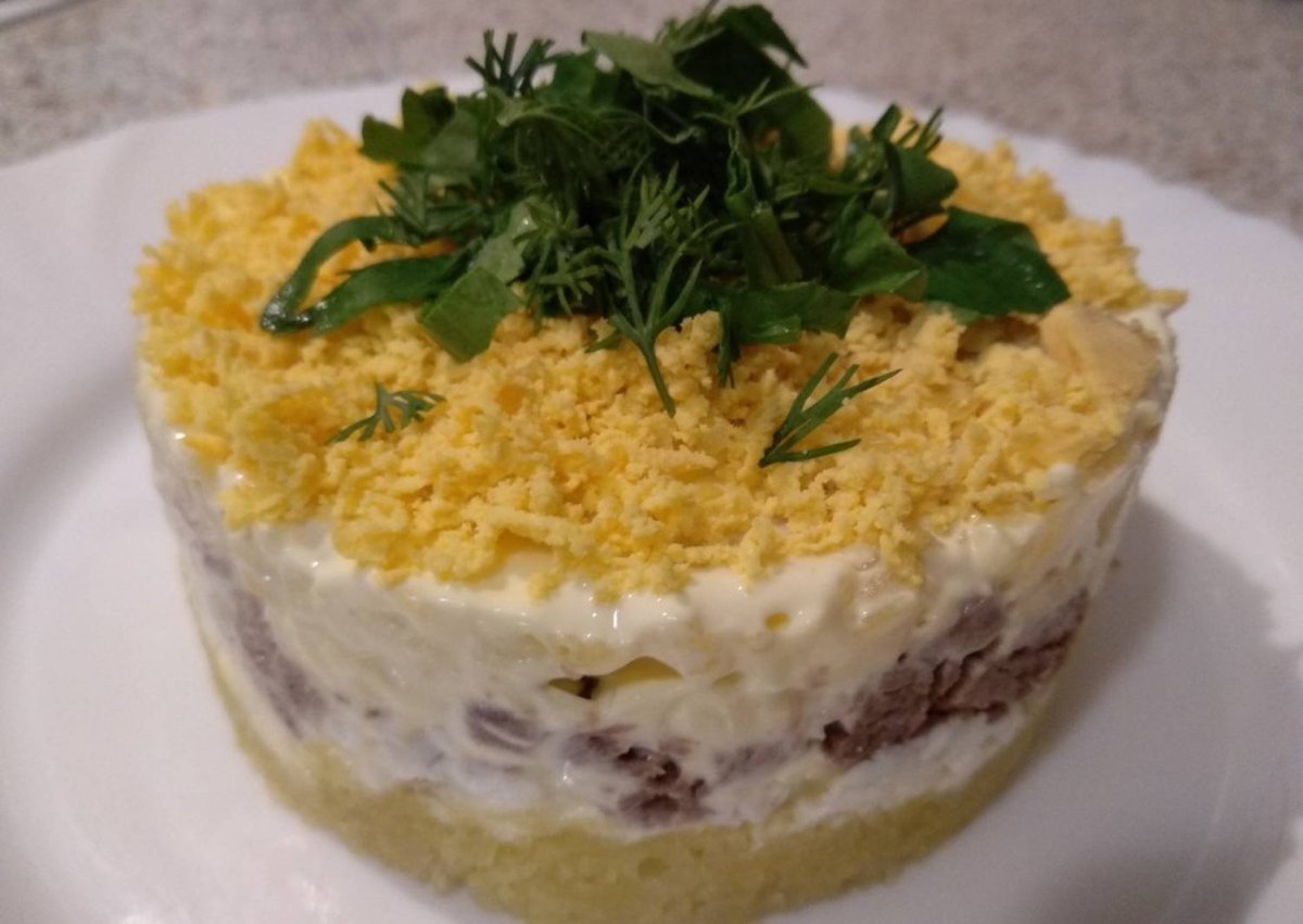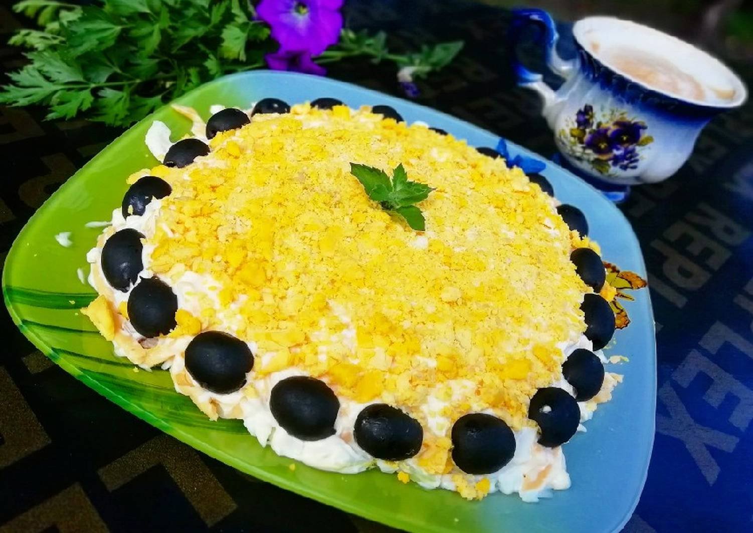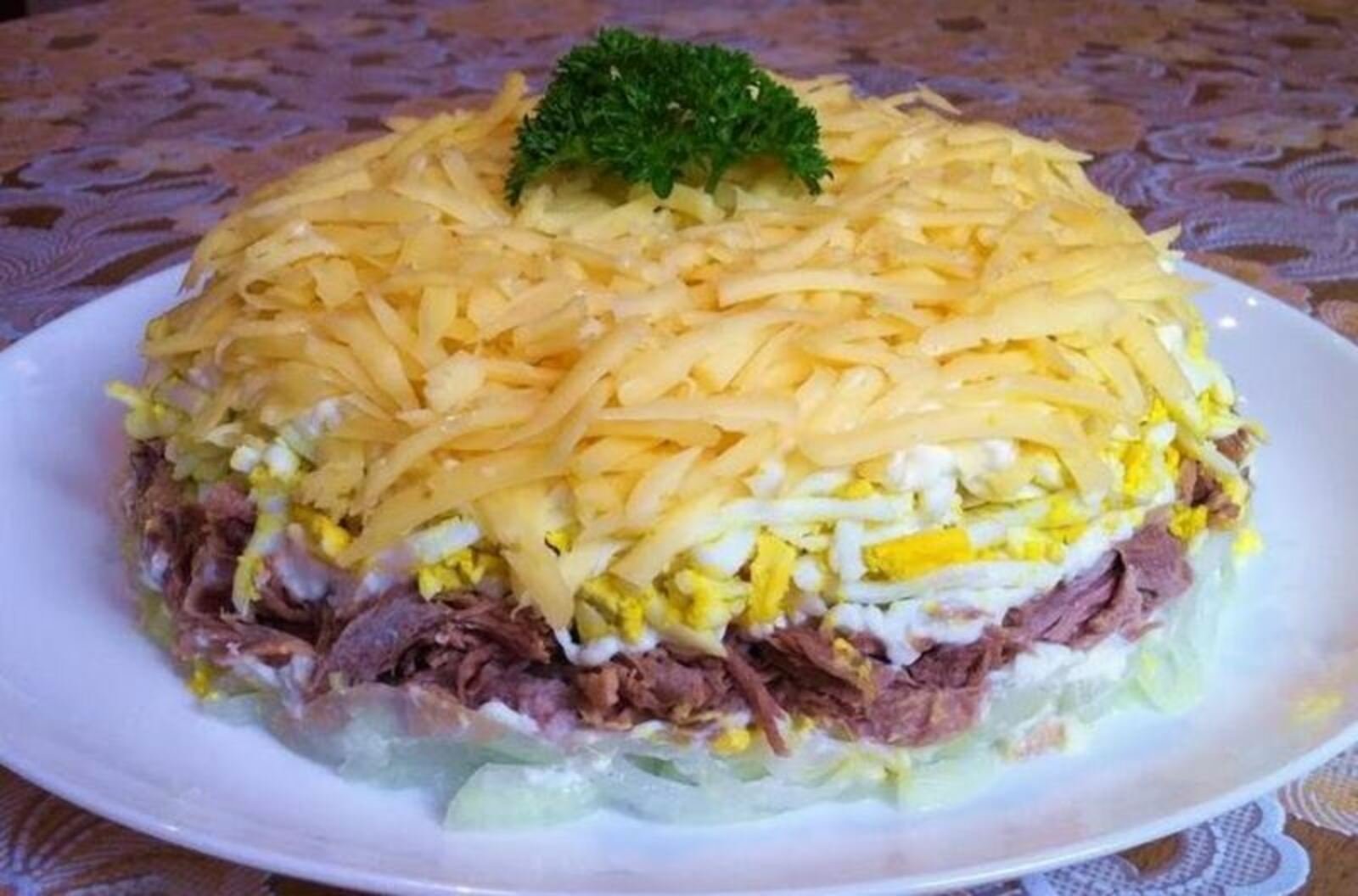 Салат мужские слёзы с курицей и грибами с корейской морковью