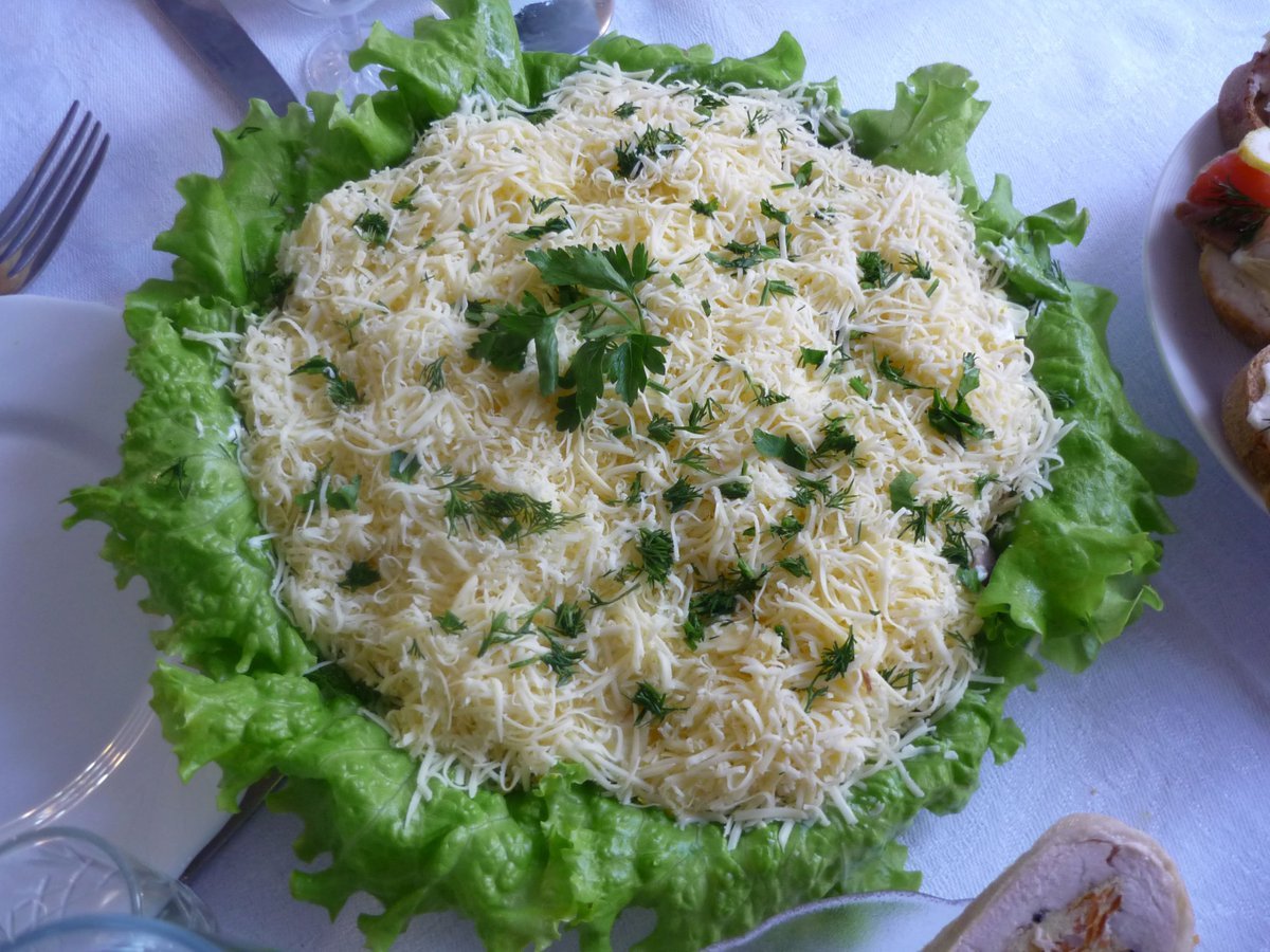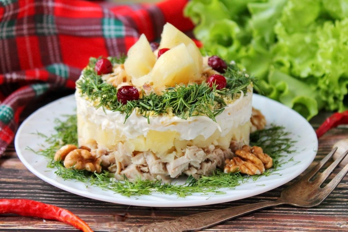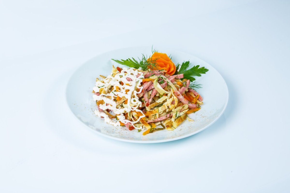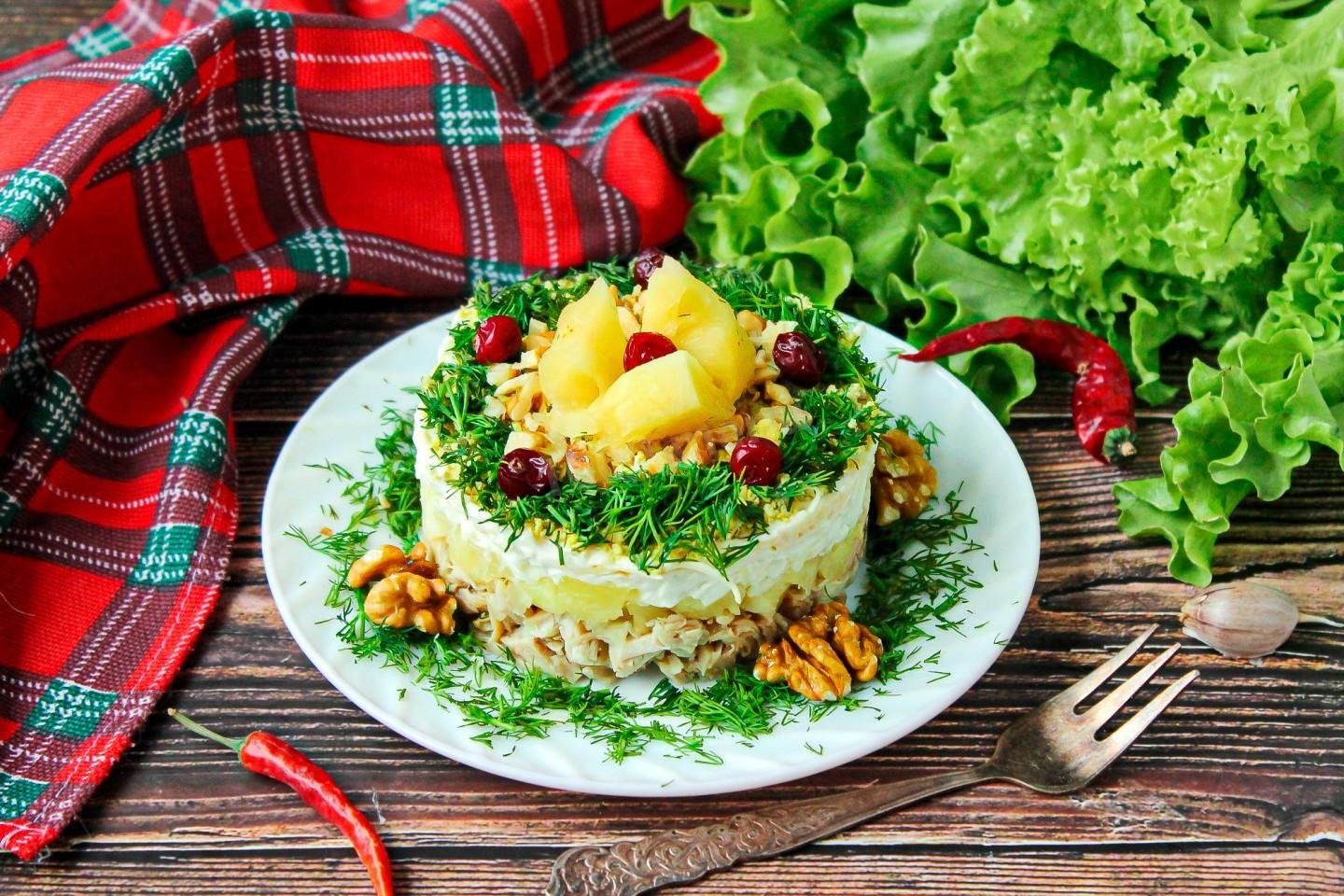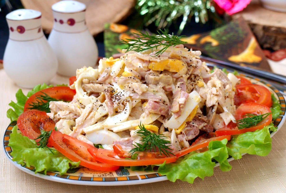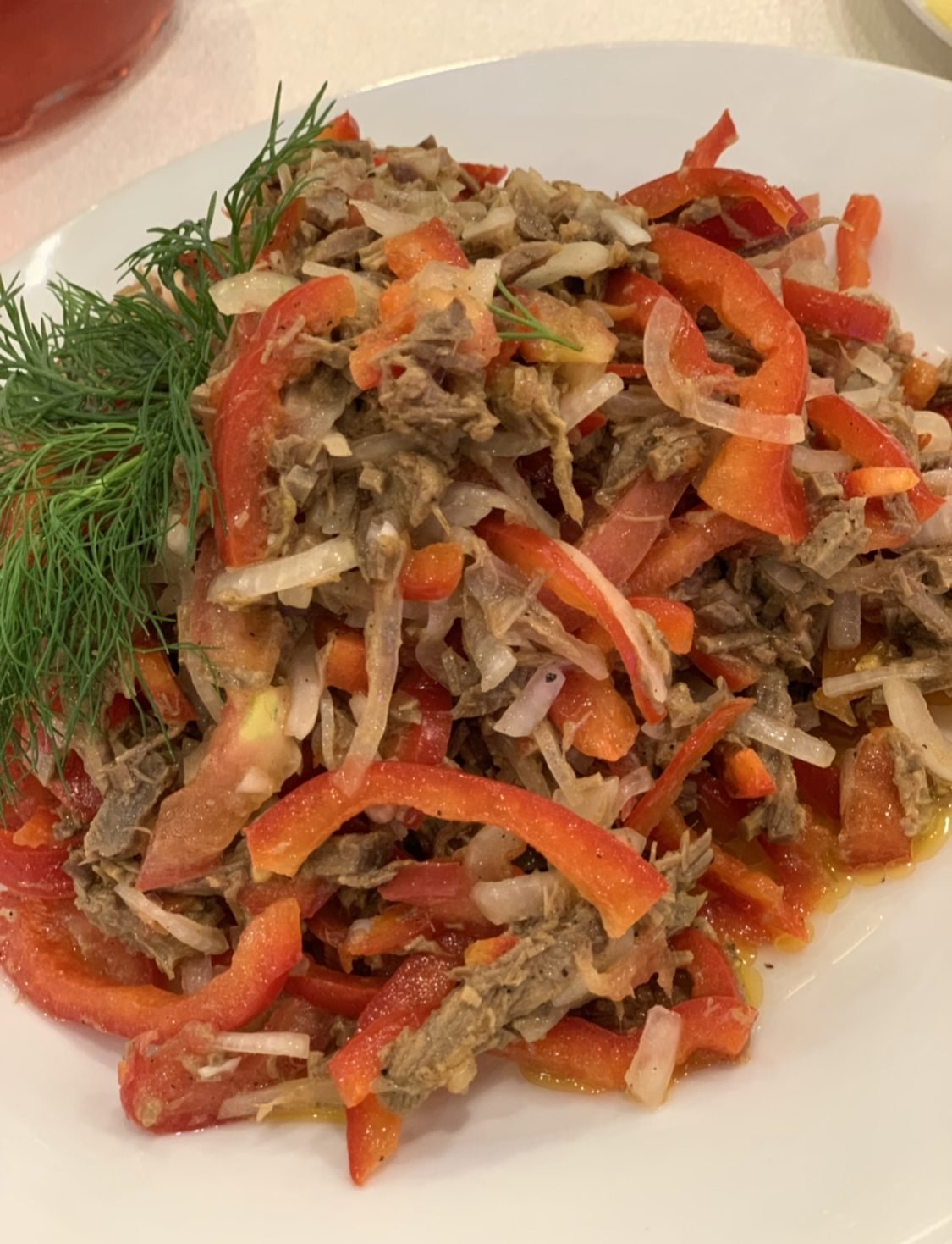 Салат мужские слёзы с курицей и грибами с корейской морковью