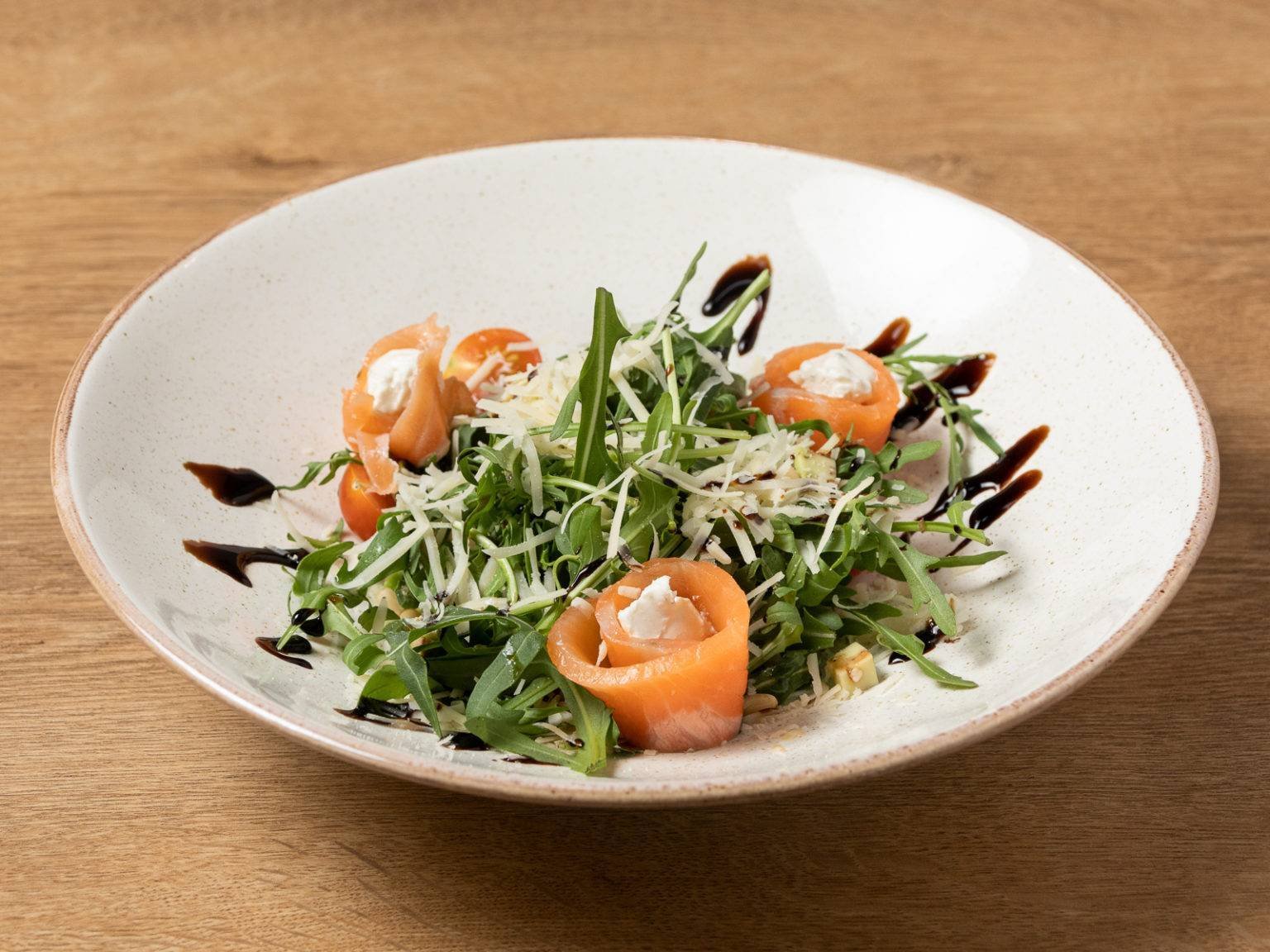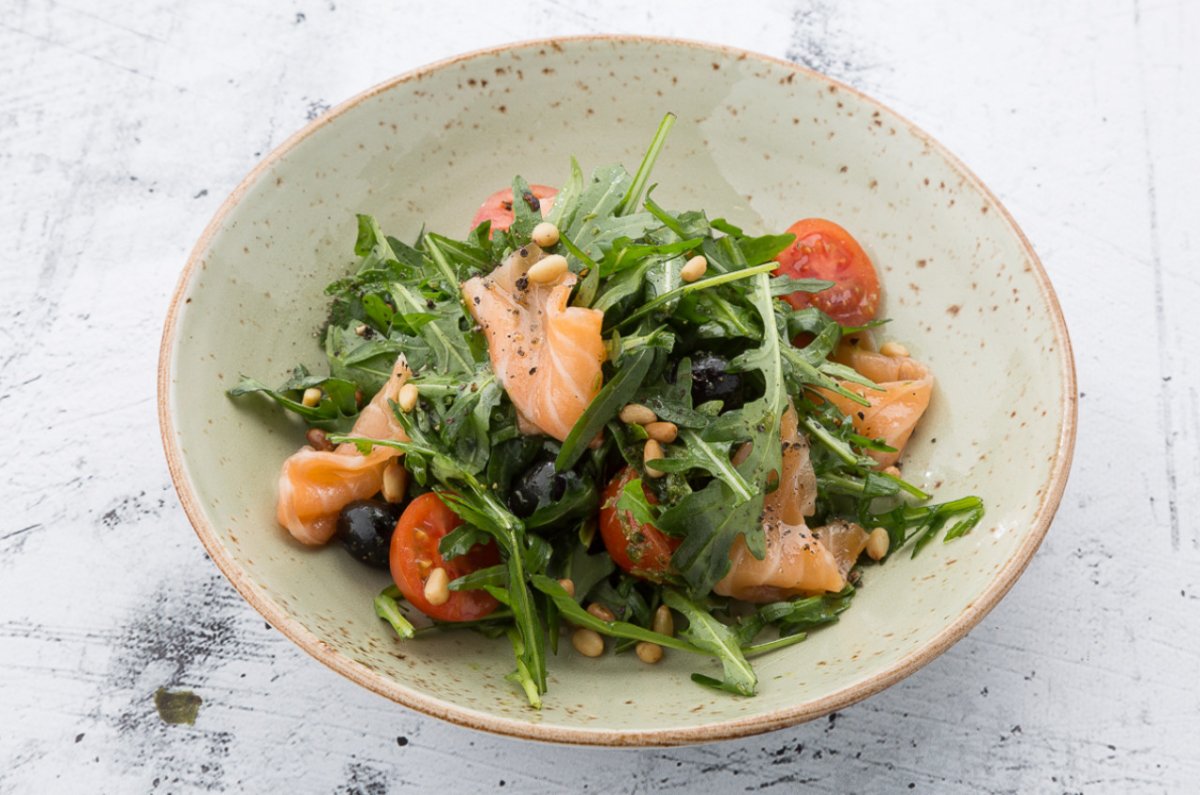 Салат руккола лосось