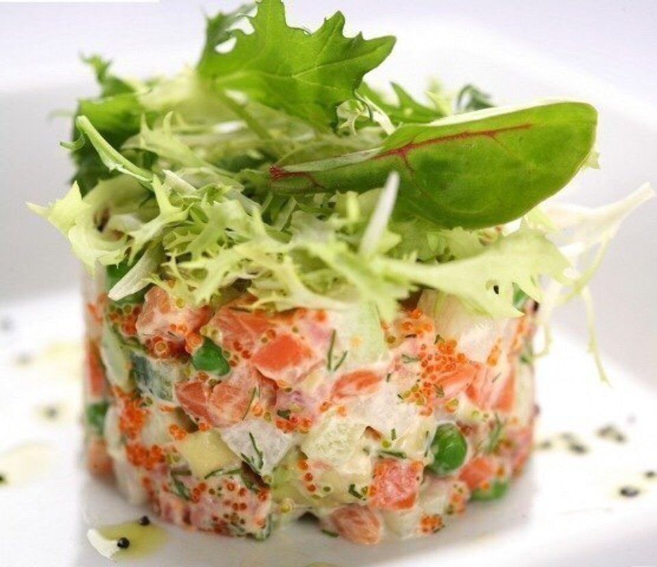 Салат Оливье с семгой