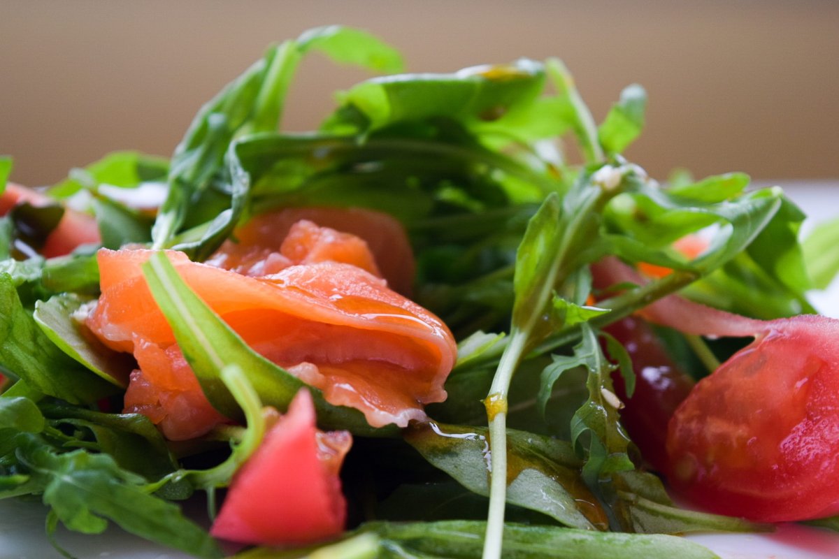Салат с лососем и рукколой