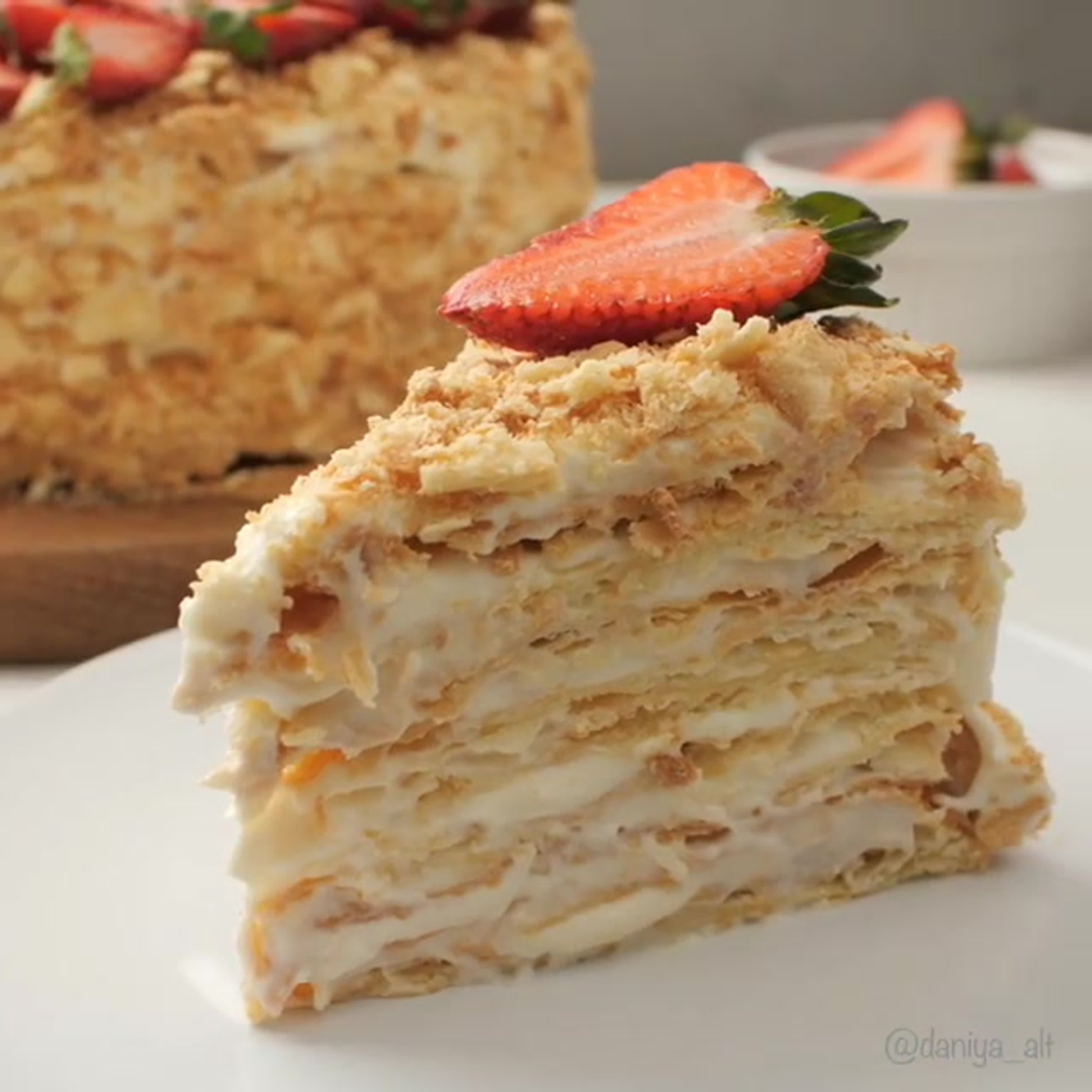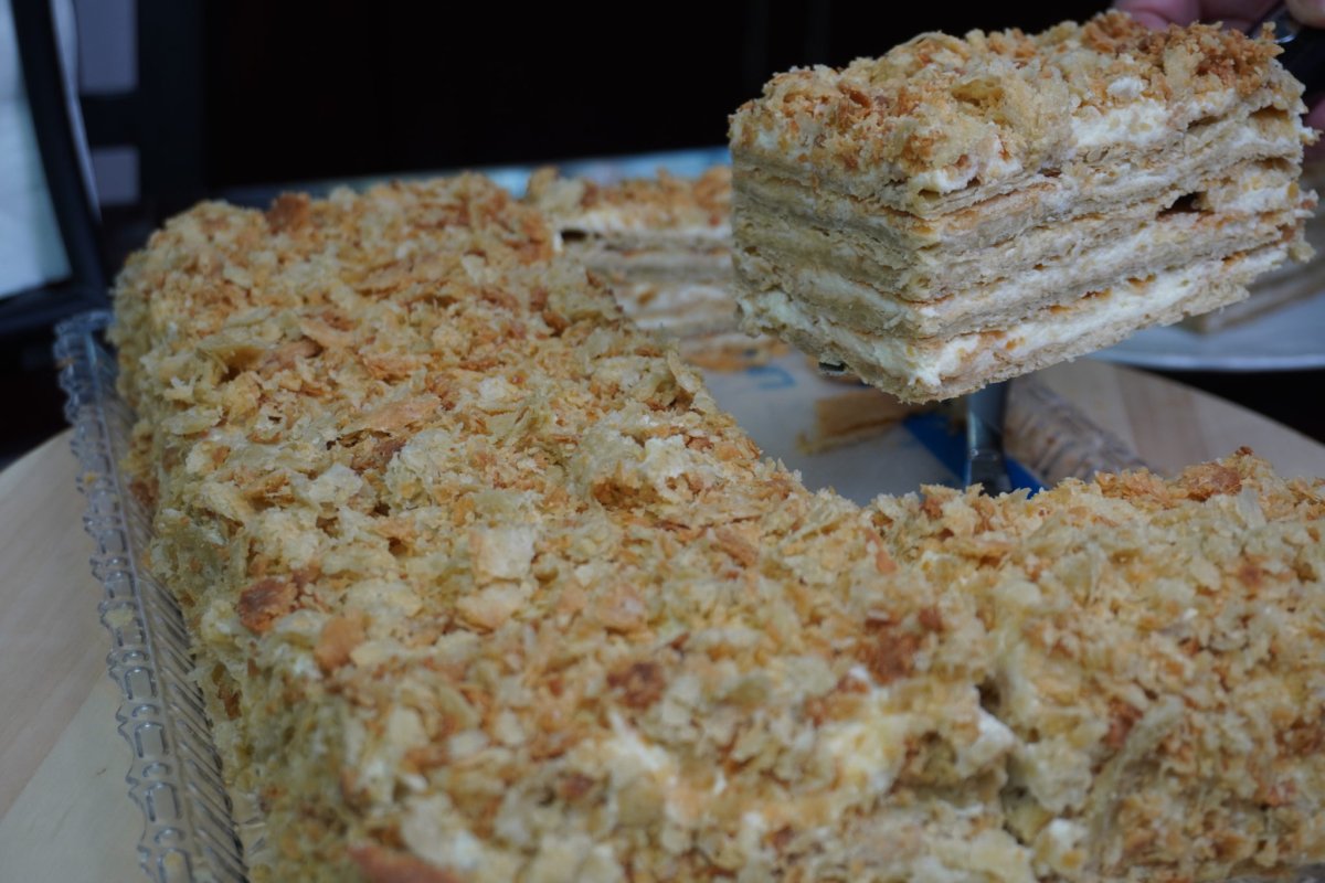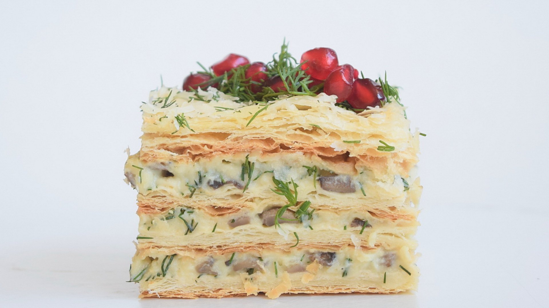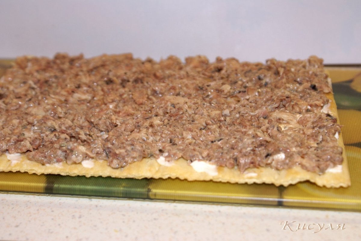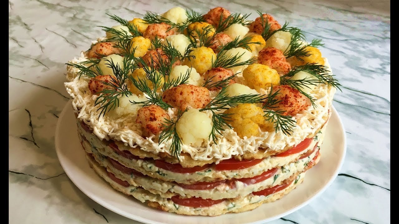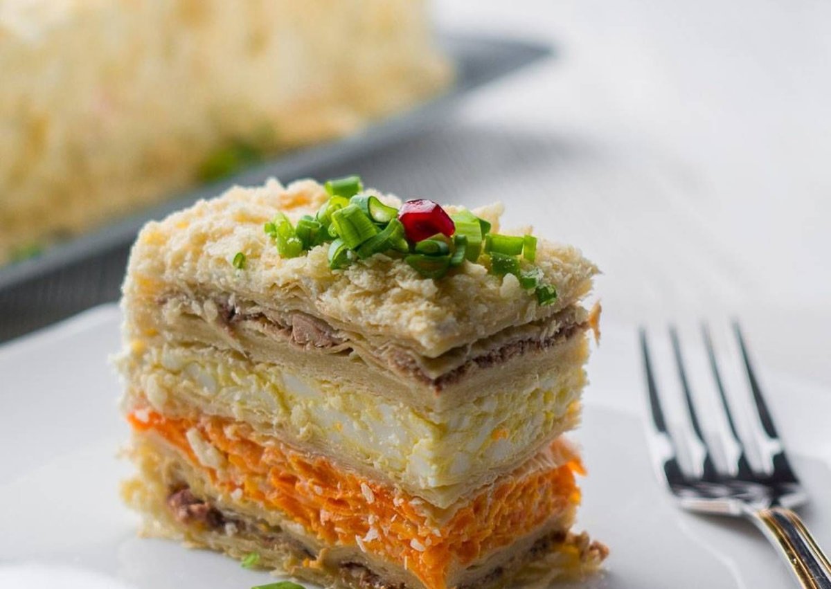 Торт закусочный Наполеон из готовых коржей с красной рыбой