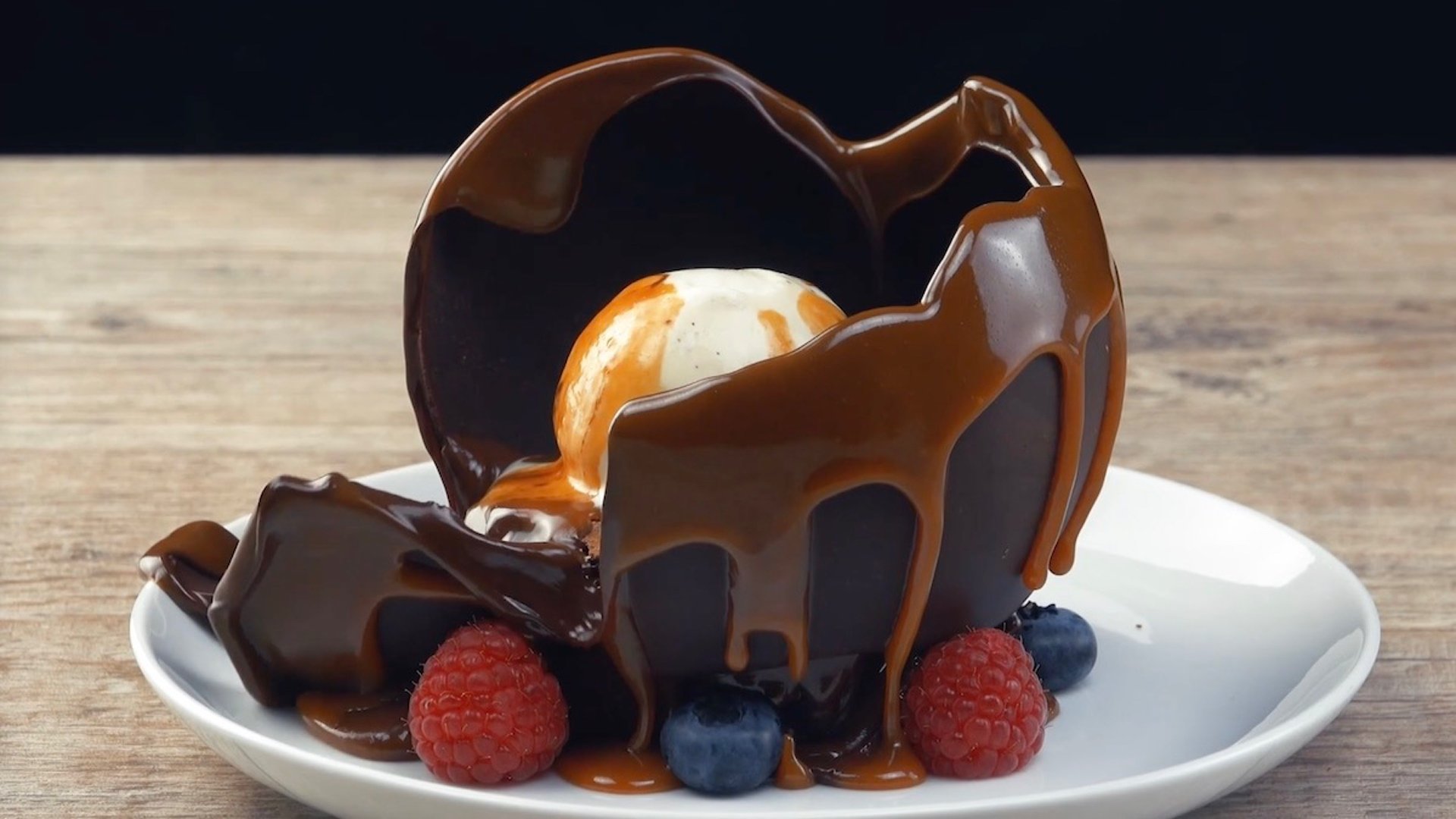 Десерт в шоколадном шаре