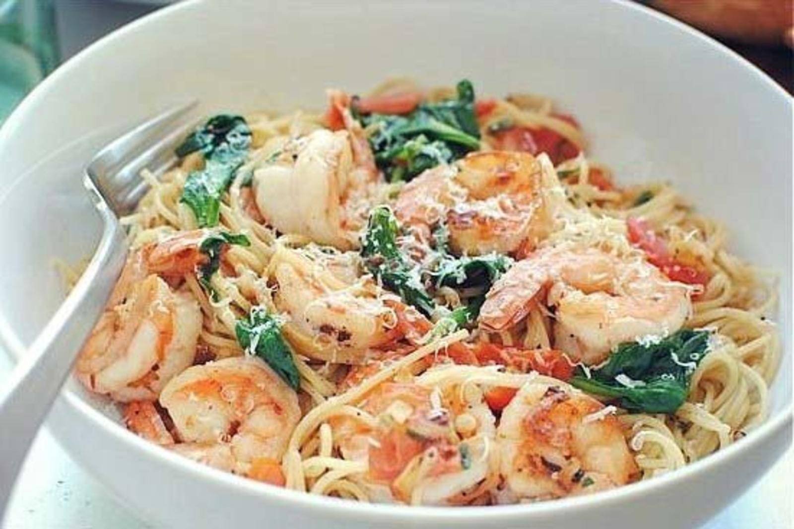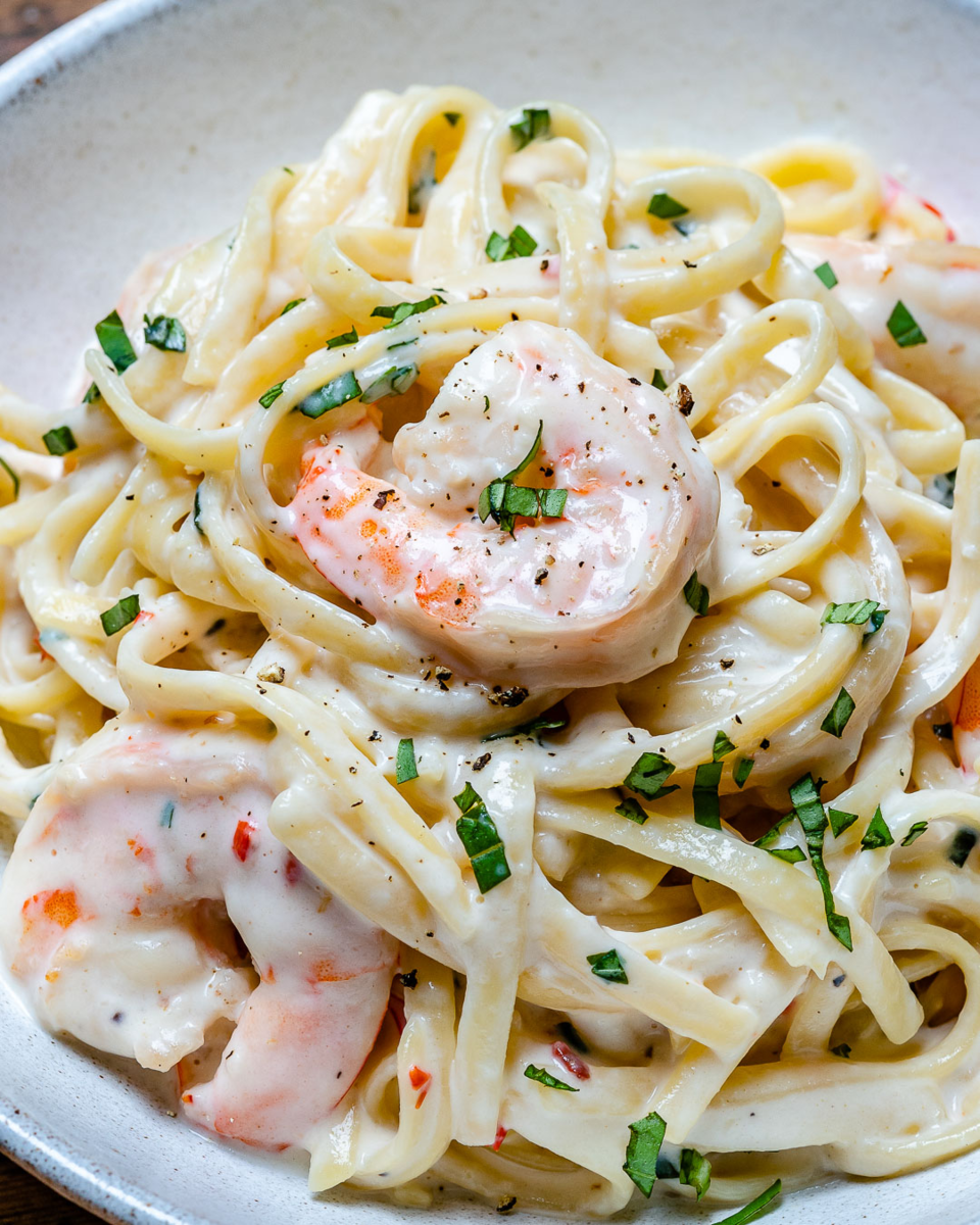 Паста с креветками в сливочно-чесночном соусе