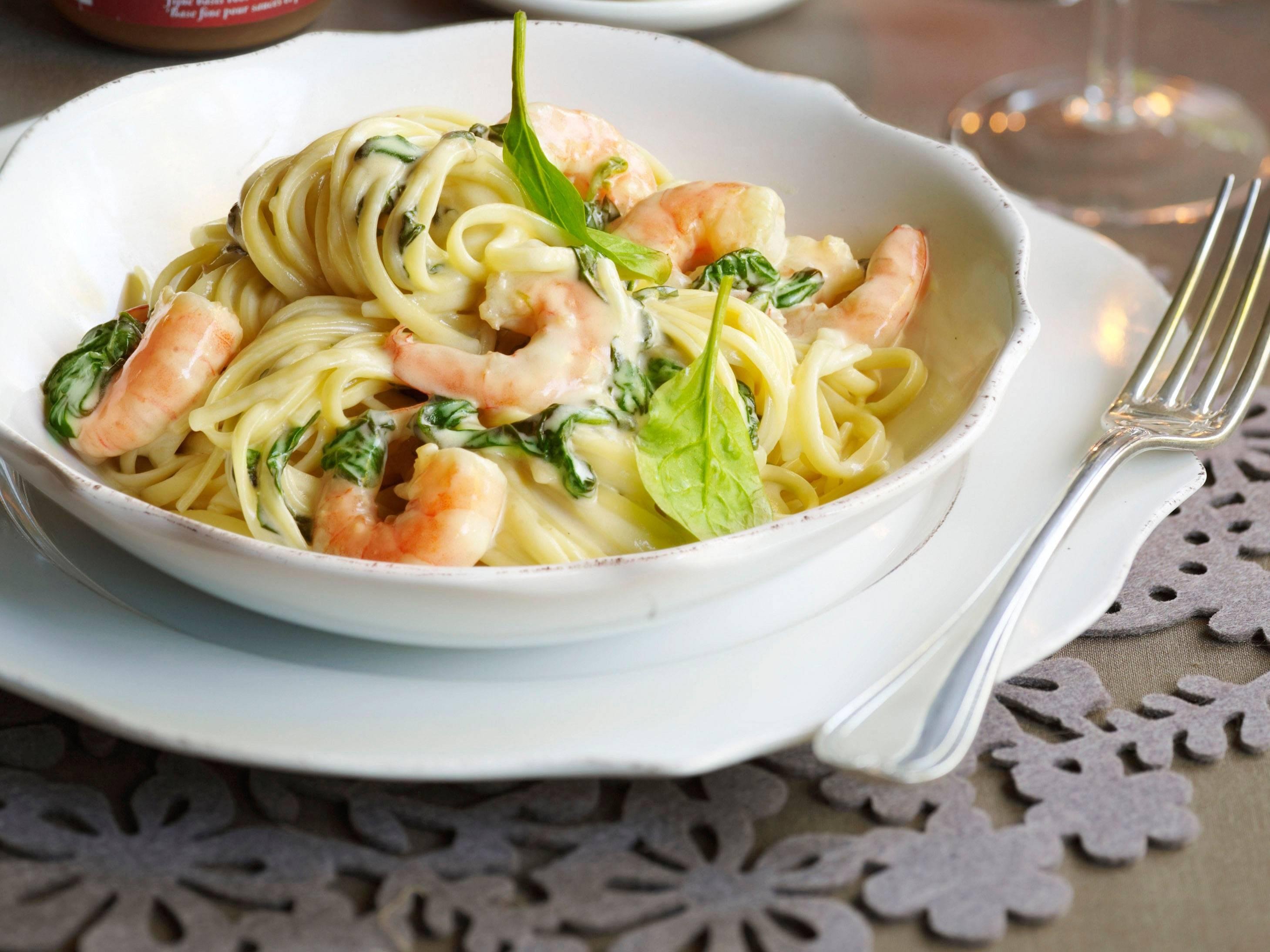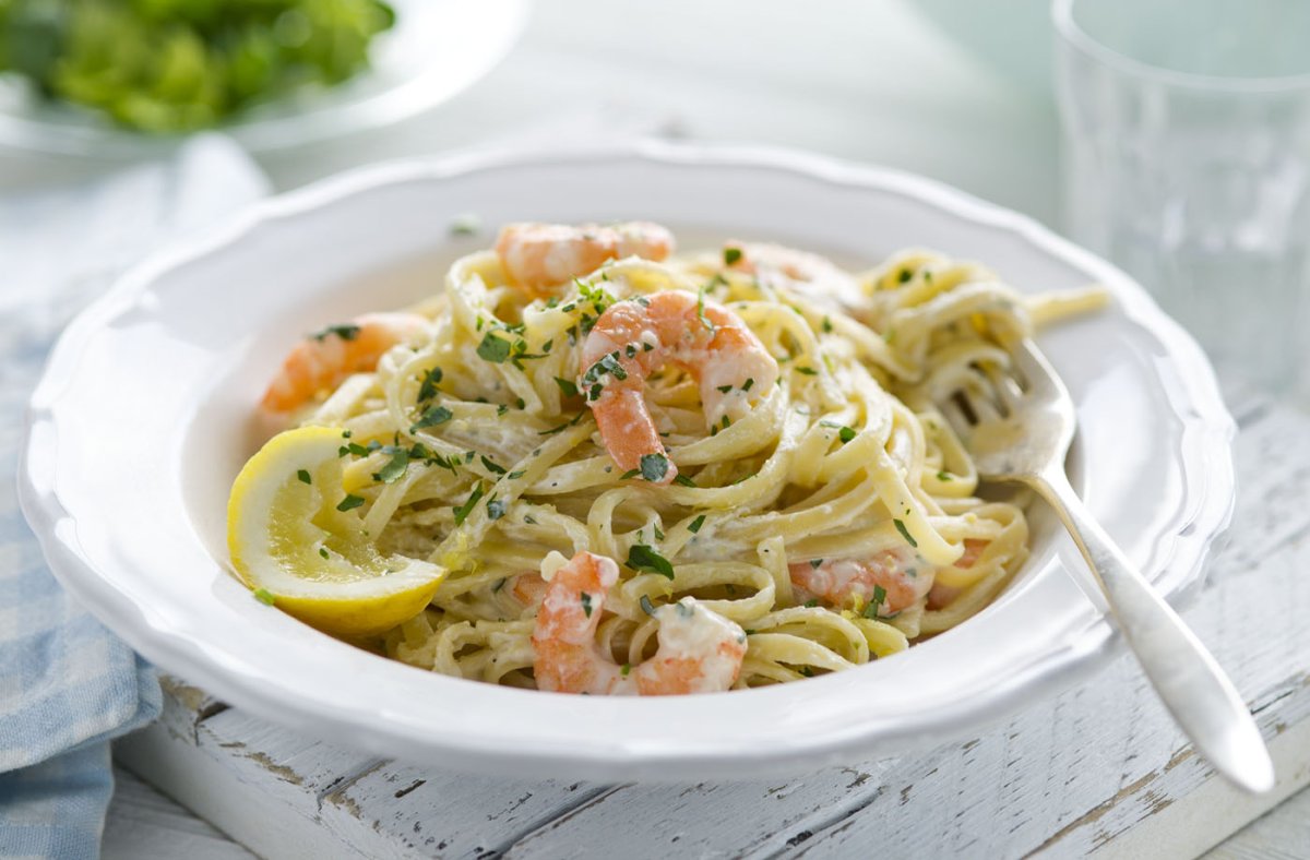 Паста с креветками в сливочном соусе